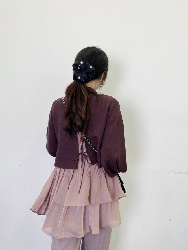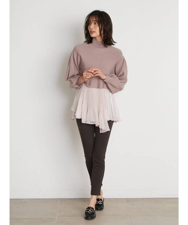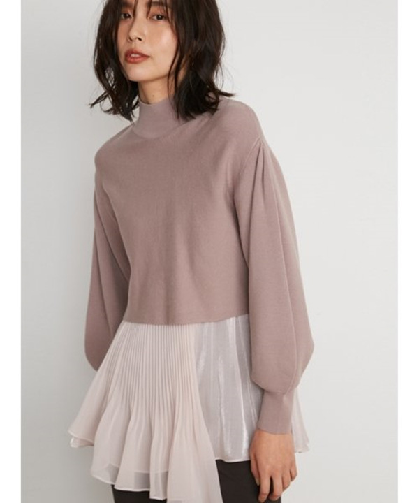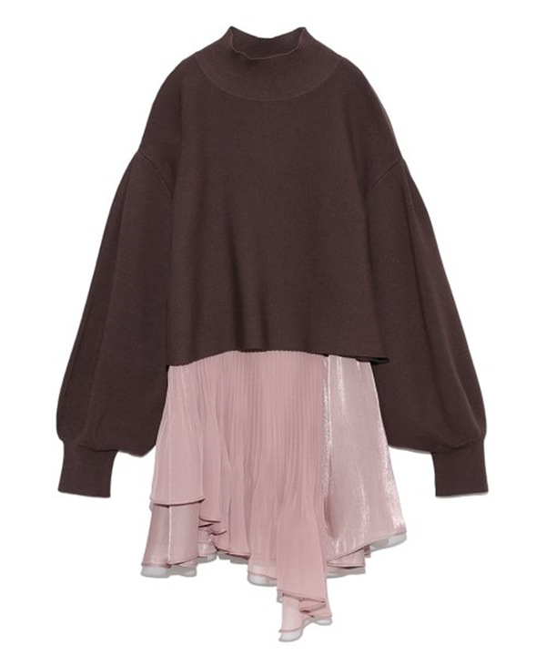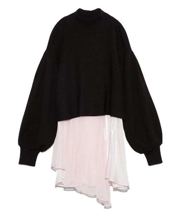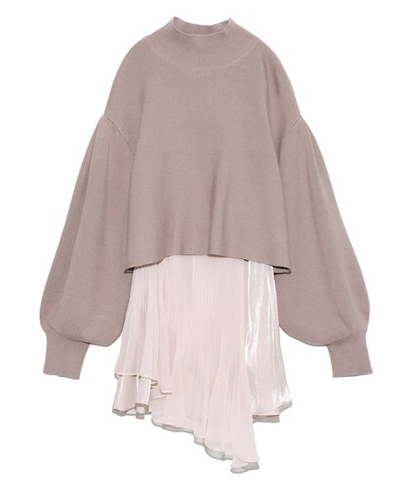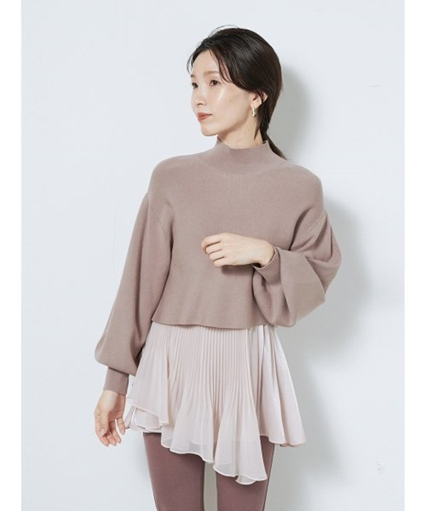 【ショートニットとプリーツキャミの女性らしいボリュームバランスにこだわったニットドッキングプルオーバー】