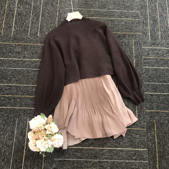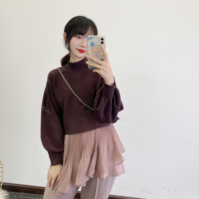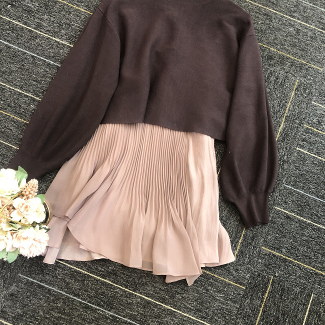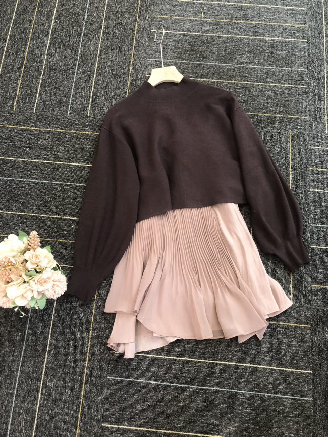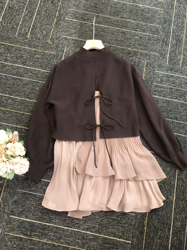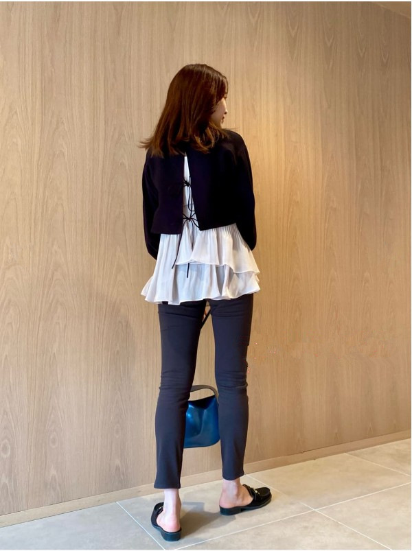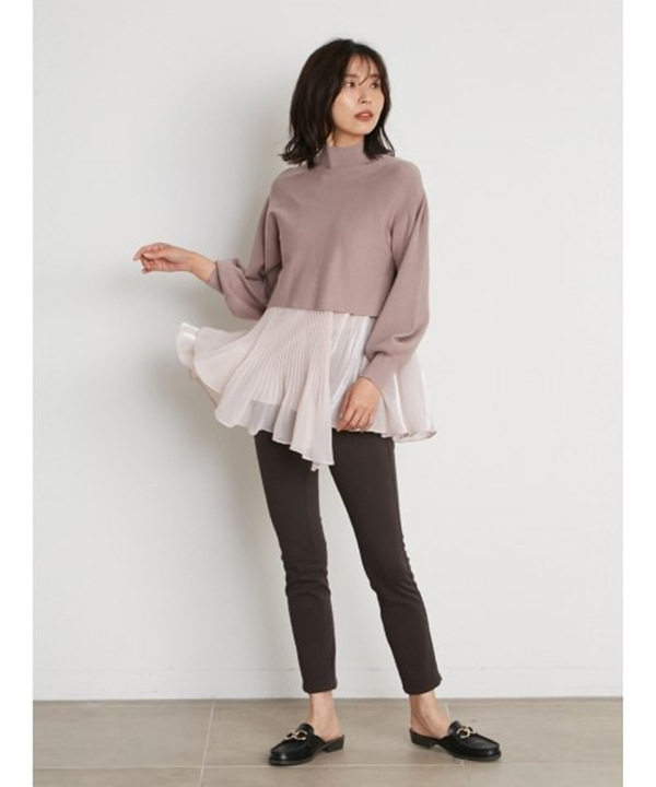 【ショートニットとプリーツキャミの女性らしいボリュームバランスにこだわったニットドッキングプルオーバー】