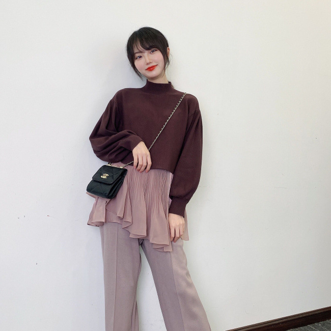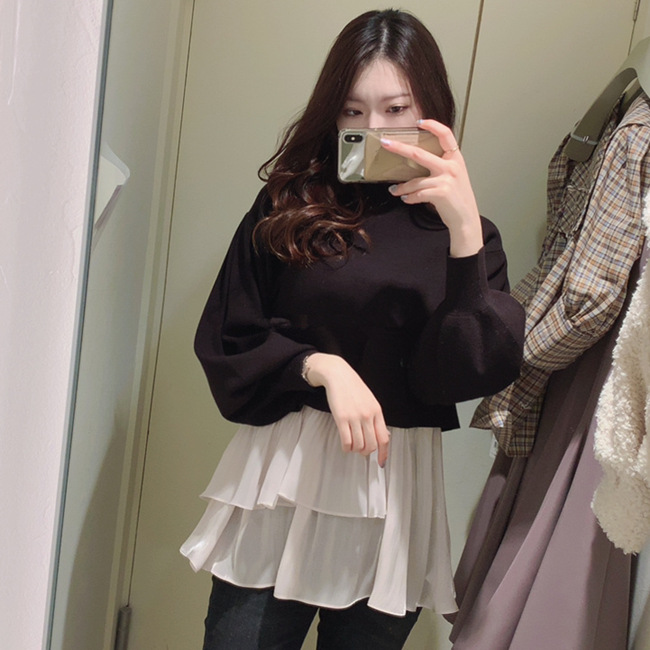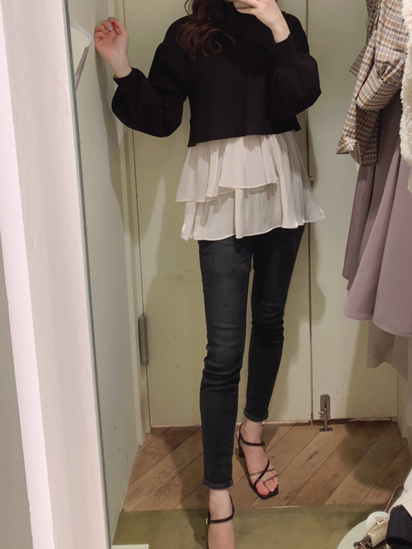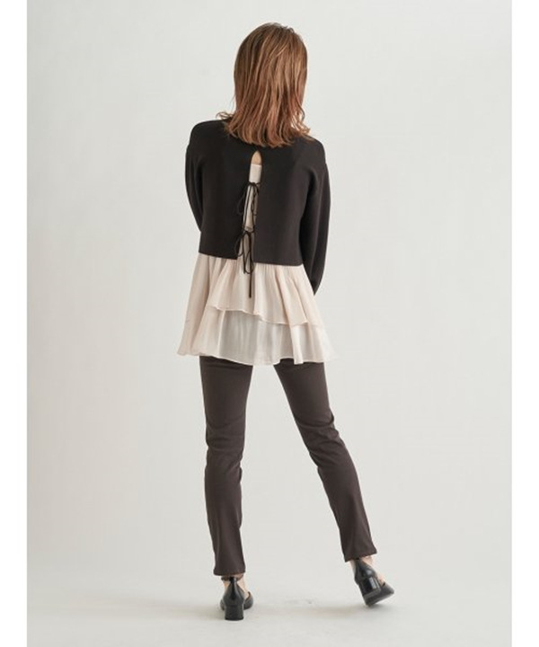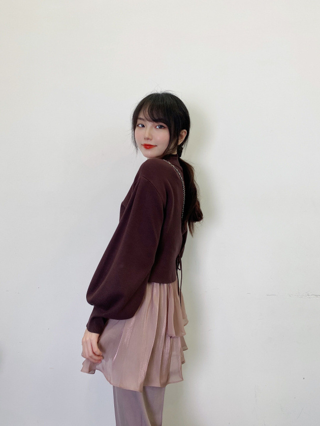 「SNIDEL」人気のレイヤードニットプルオーバーからこの秋の最新作が登場。ニットはトレンドのショート丈で仕上げ、表情豊かな割線素材でどこか奥行きのあるシックな印象に。スタンドカラーやボリュームスリーブでトレンド感を意識し、レイヤードがより一層楽しめるようバックスタイルはレースアップでデザインしました。インナーの布帛は、柔らかなシフォン生地にかけたたっぷりのプリーツがドラマティックな印象。アシンメトリーなティアードフリルで、ニットとバランスの良い大人の甘さで仕上げました。