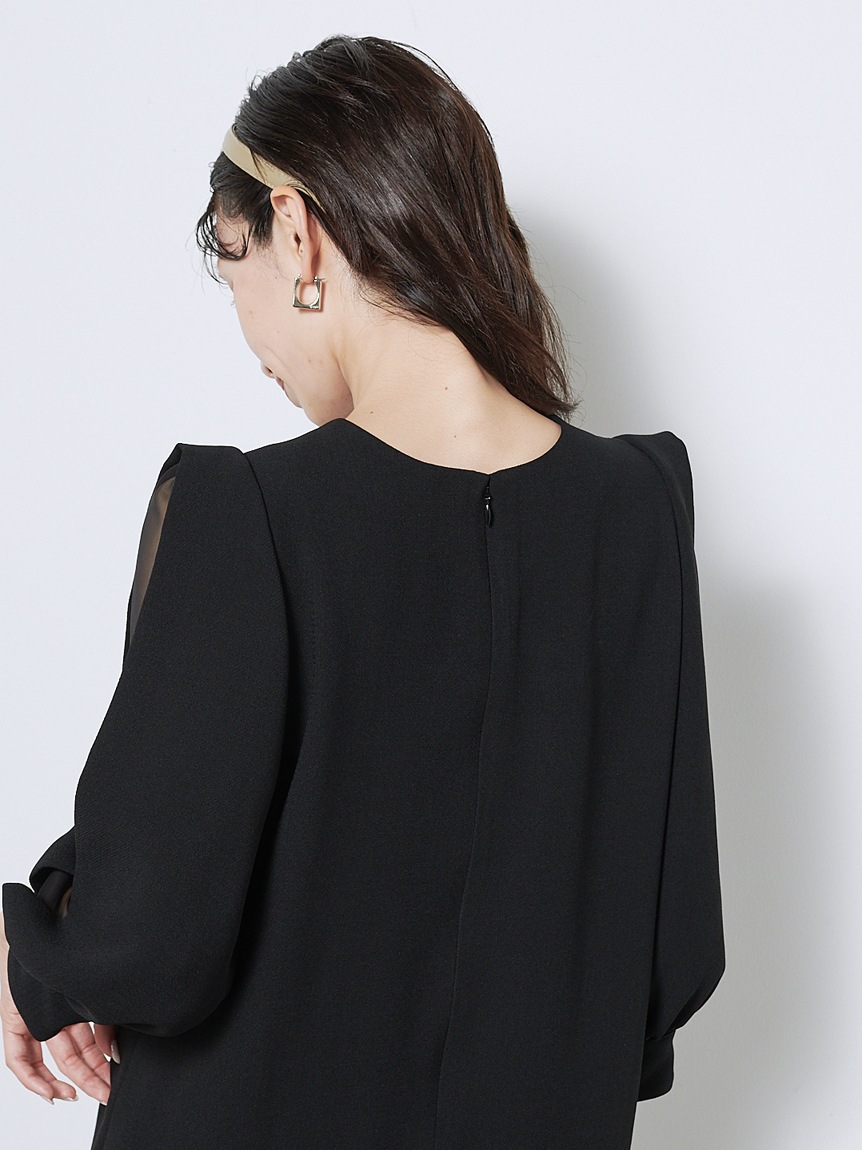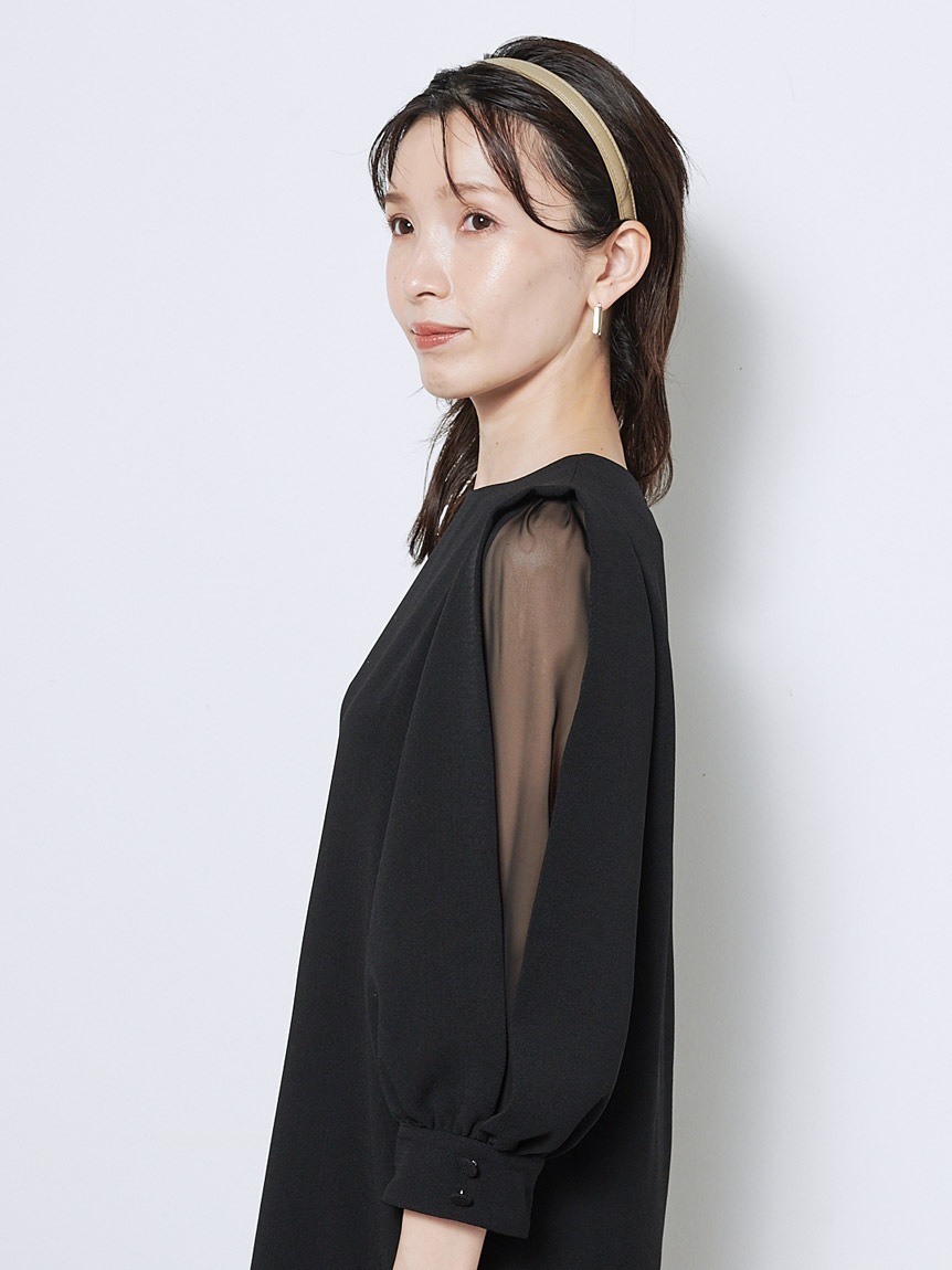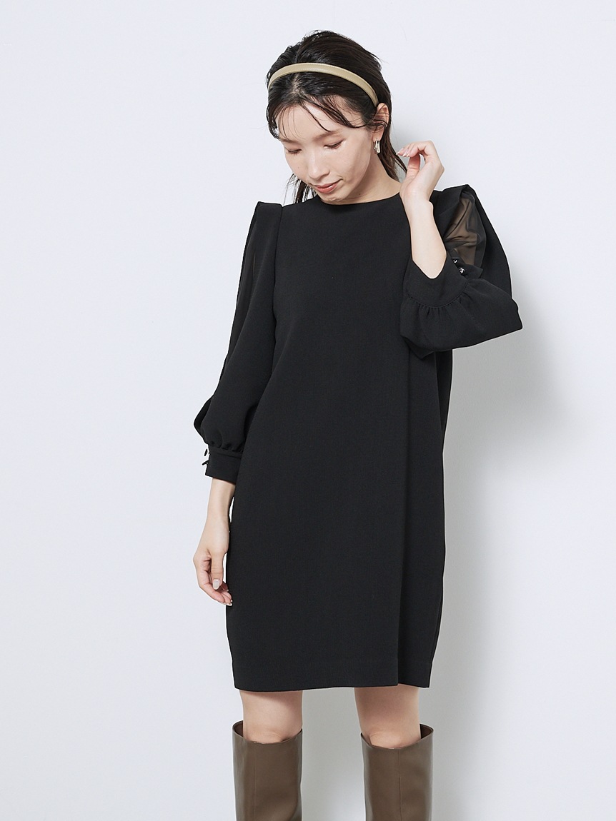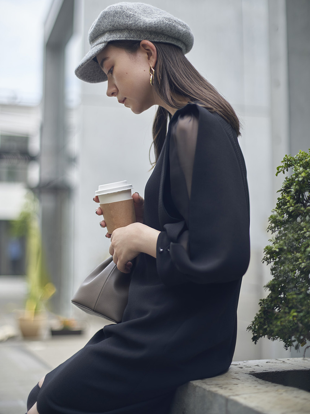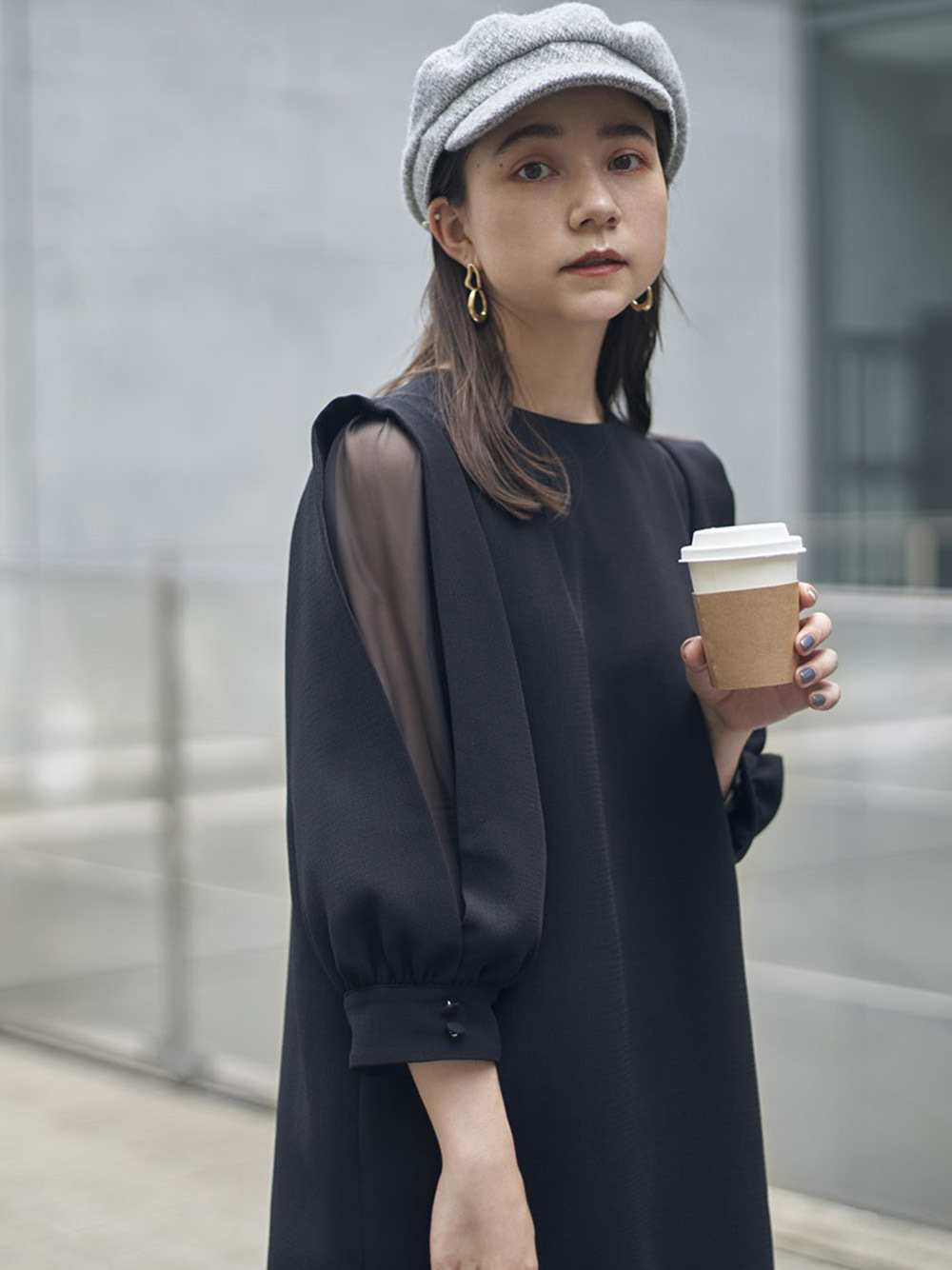 シフォン切替スリーブで程よく透け感があり上品な1枚です。ふんわりとしたコクーンシルエットで体型を気にせず着れるのも嬉しいポイント。王道の着こなしはもちろん、キャスケットやローファーを合わせた今っぽいスタイリングもおススメです。