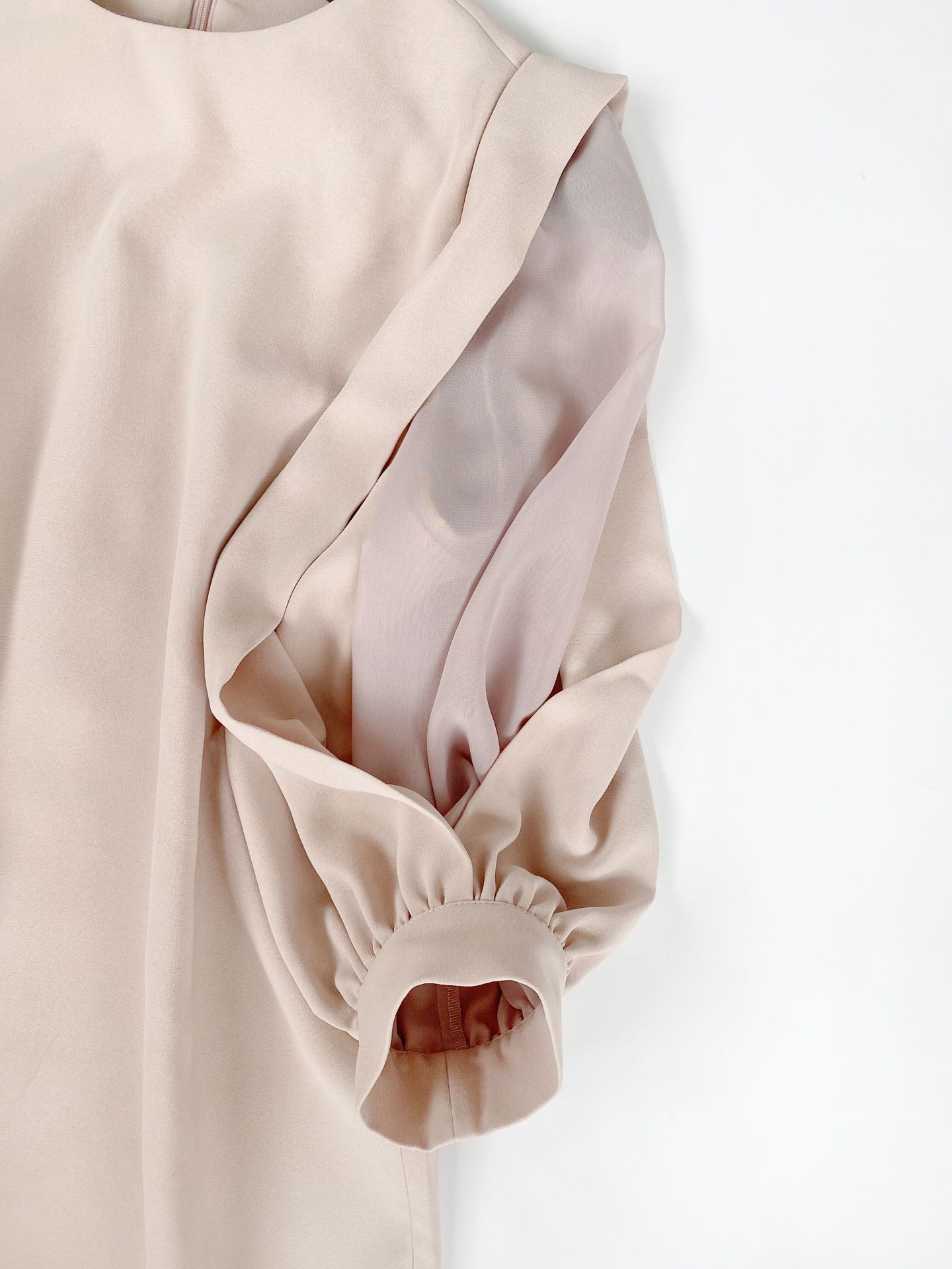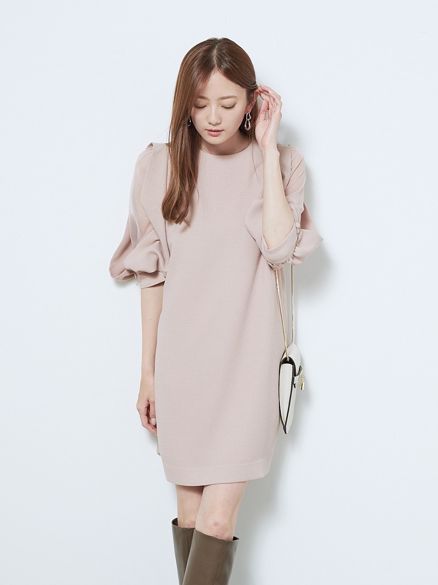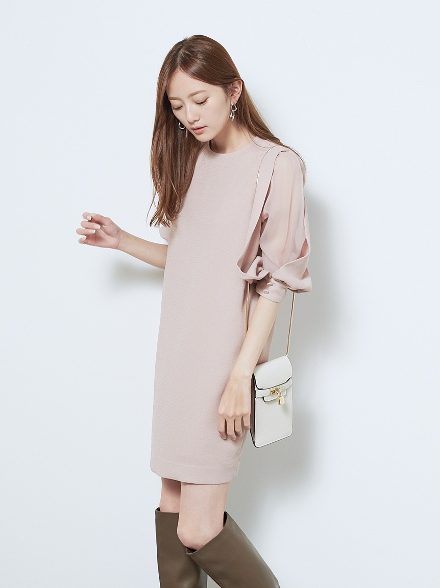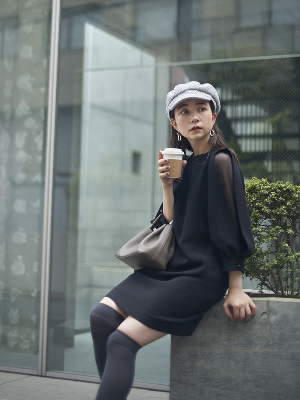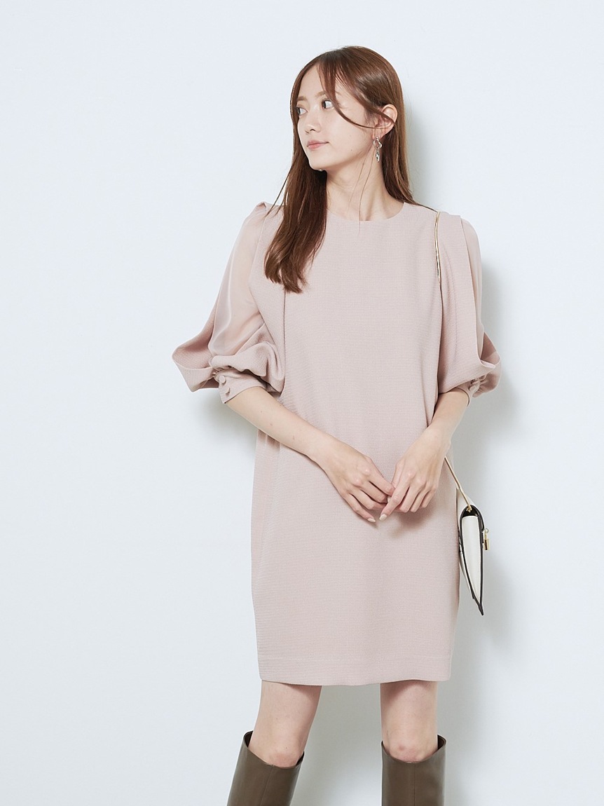 シフォン切替スリーブで程よく透け感があり上品な1枚です。ふんわりとしたコクーンシルエットで体型を気にせず着れるのも嬉しいポイント。王道の着こなしはもちろん、キャスケットやローファーを合わせた今っぽいスタイリングもおススメです。