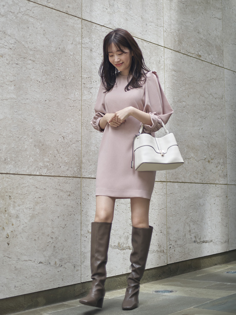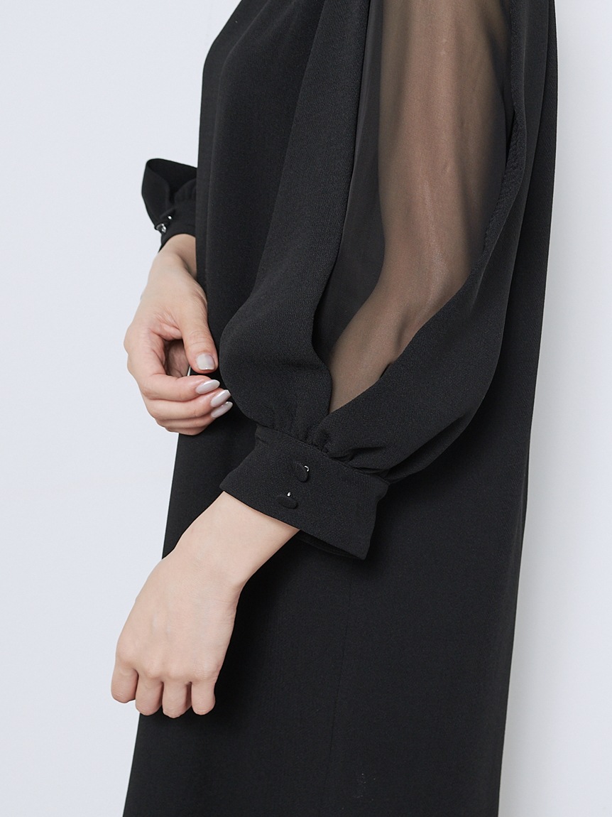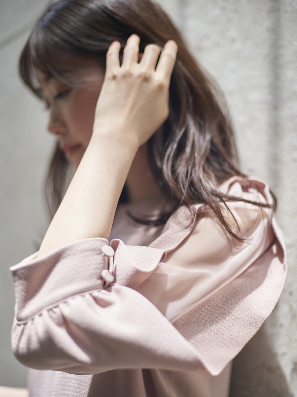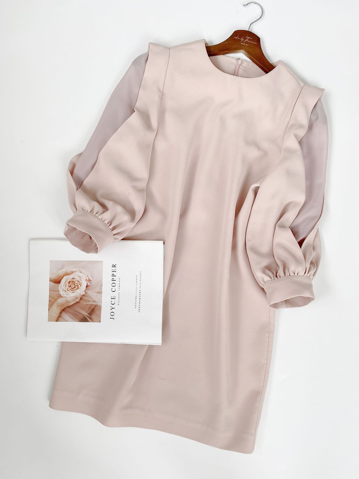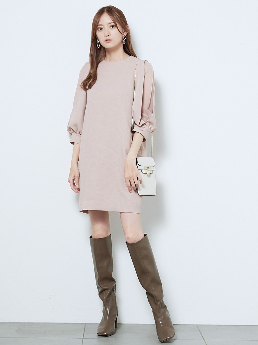 シフォン切替スリーブで程よく透け感があり上品な1枚です。ふんわりとしたコクーンシルエットで体型を気にせず着れるのも嬉しいポイント。王道の着こなしはもちろん、キャスケットやローファーを合わせた今っぽいスタイリングもおススメです。