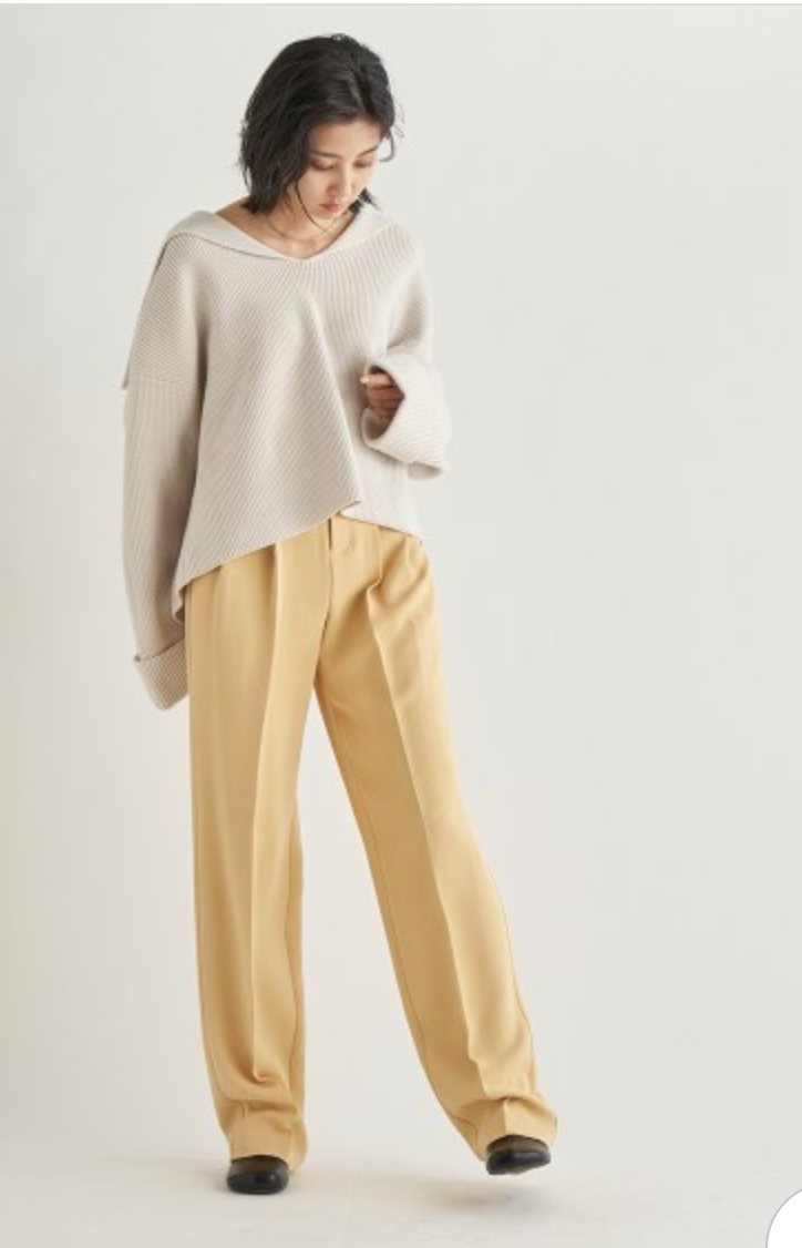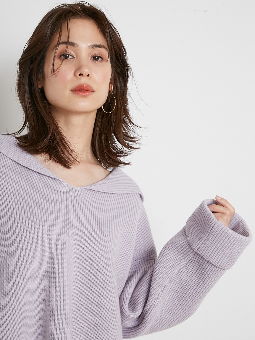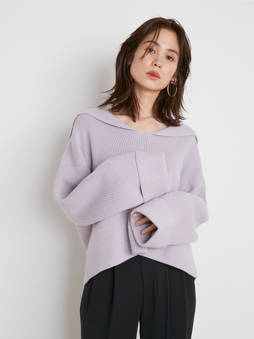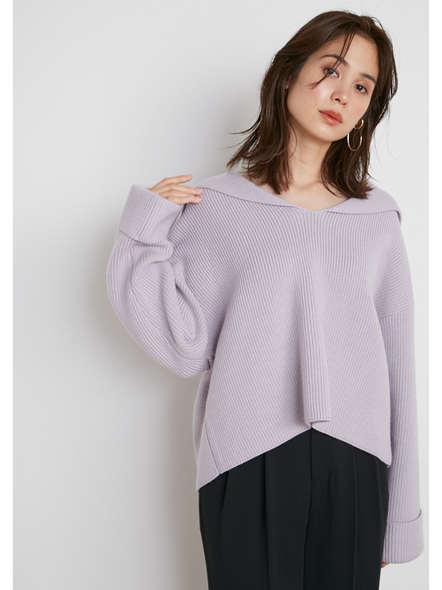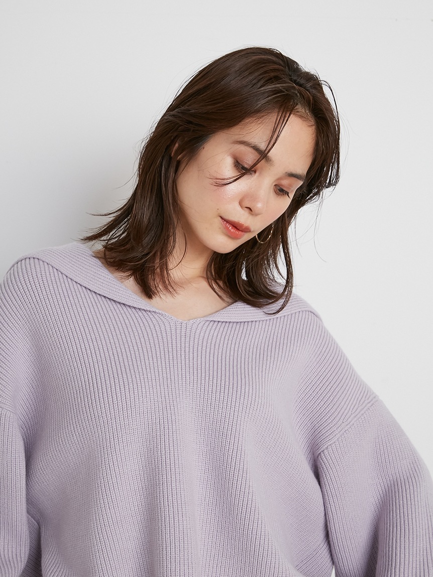 大人が着たいガーリーを表現した、トレンドのセーラーカラーデザインの長袖ニット。愛らしいバックスタイルにポイントを置きつつも、鎖骨が見えるネックラインや品の良い片畔編みなど、ビターな甘さへと落とし込んだ大人なルックスが「SNIDEL」ならではの1着です。オーバーサイズの身幅やワイドスリーブがこなれ感を纏い、さらっと着るだけで洗練された印象に。ワイドパンツを合わせた、引き算のハンサムルックが一押しです。