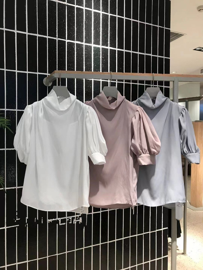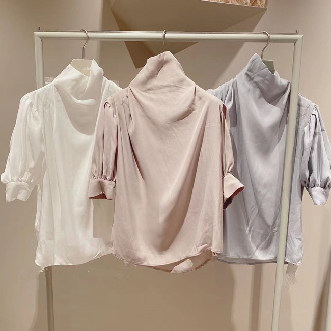 程良い光沢感が特徴の生地を使用しました。ホワイト、ピンクベージュ、サックスの3色展開。ホワイトのみ透け防止のインナーキャミソールが付いています。