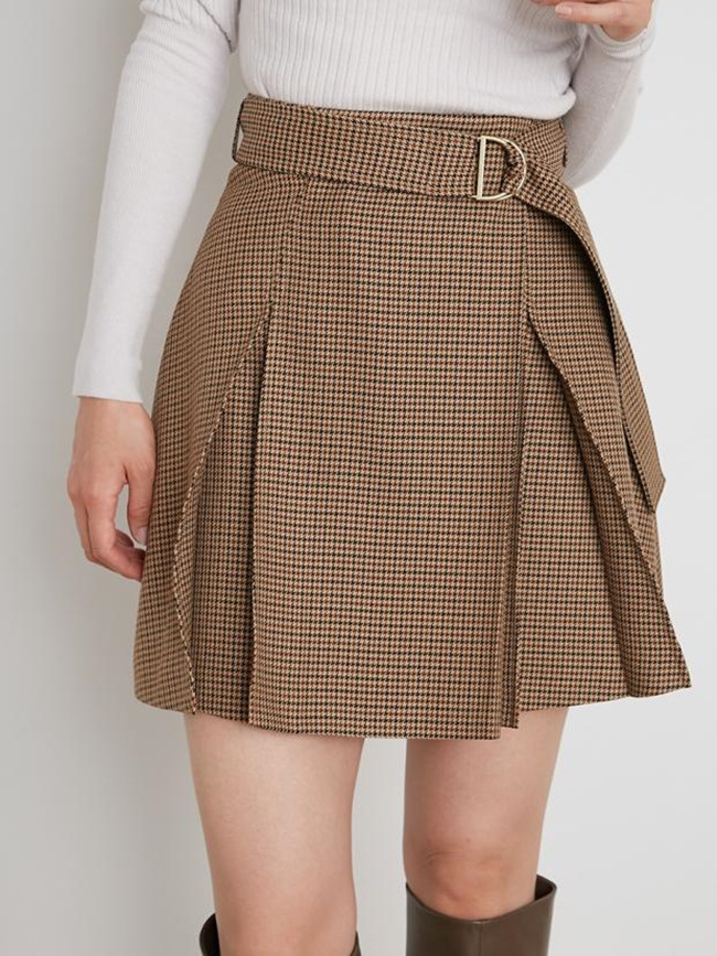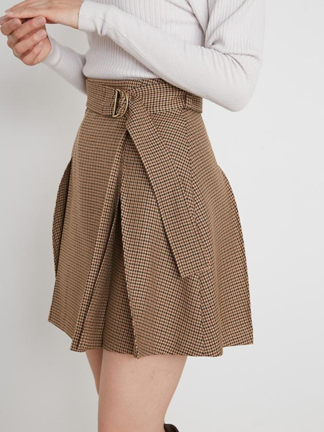 大人の女性にも取り入れて欲しい、今シーズントレンドのミニスカート。深めのタックとラップ調のディティールはクラス感があり、きれいに広がる台形シルエットにもこだわりました。シックに纏えるようシンプルなデザインにしつつ、アンティーク調のアクセントベルトで「SNIDEL」らしさをプラス。脚が細く長く見える絶妙な丈感にもこだわり、スタイルアップ効果も抜群です。