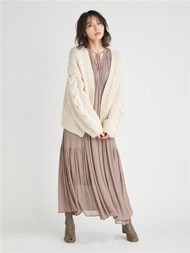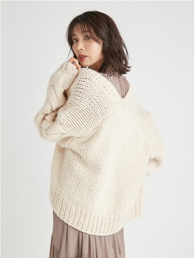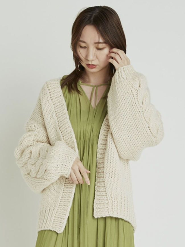 【ローゲージ特有のざっくり感とゆるっとしたシルエットが魅力的なハンドニットカーディガン】
