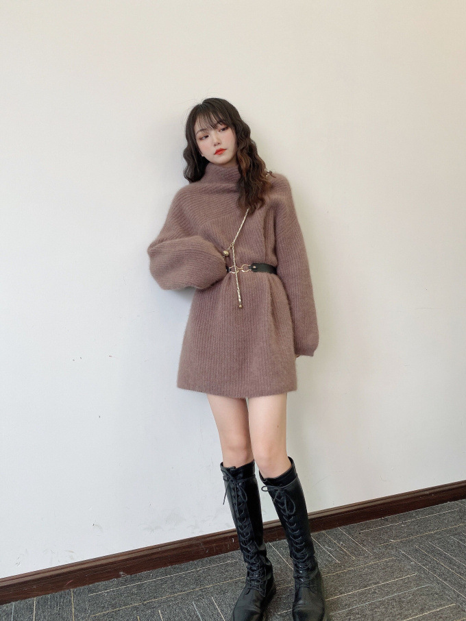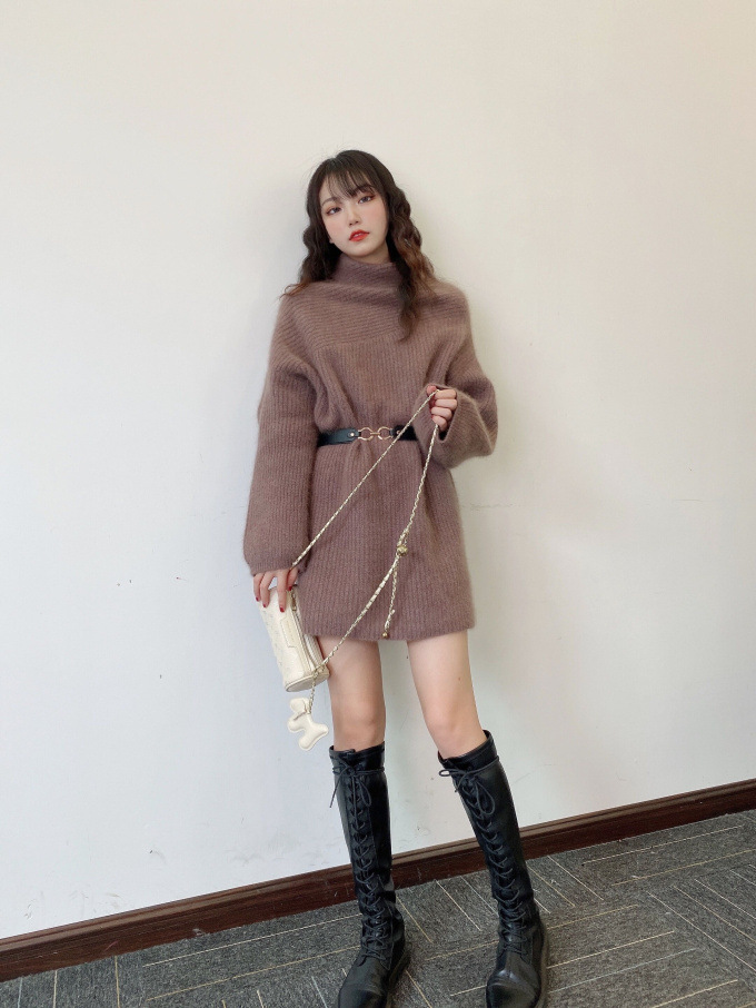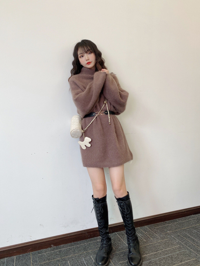 女性らしいシルエットを活かしたニットワンピースは、スカートにもパンツにも合わせられます。