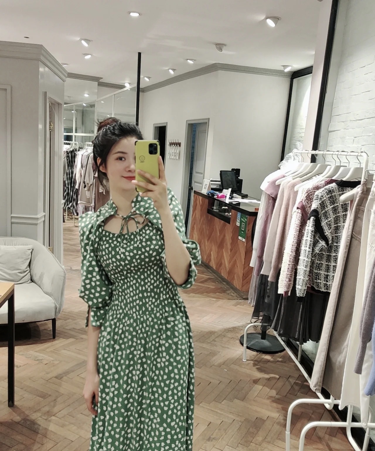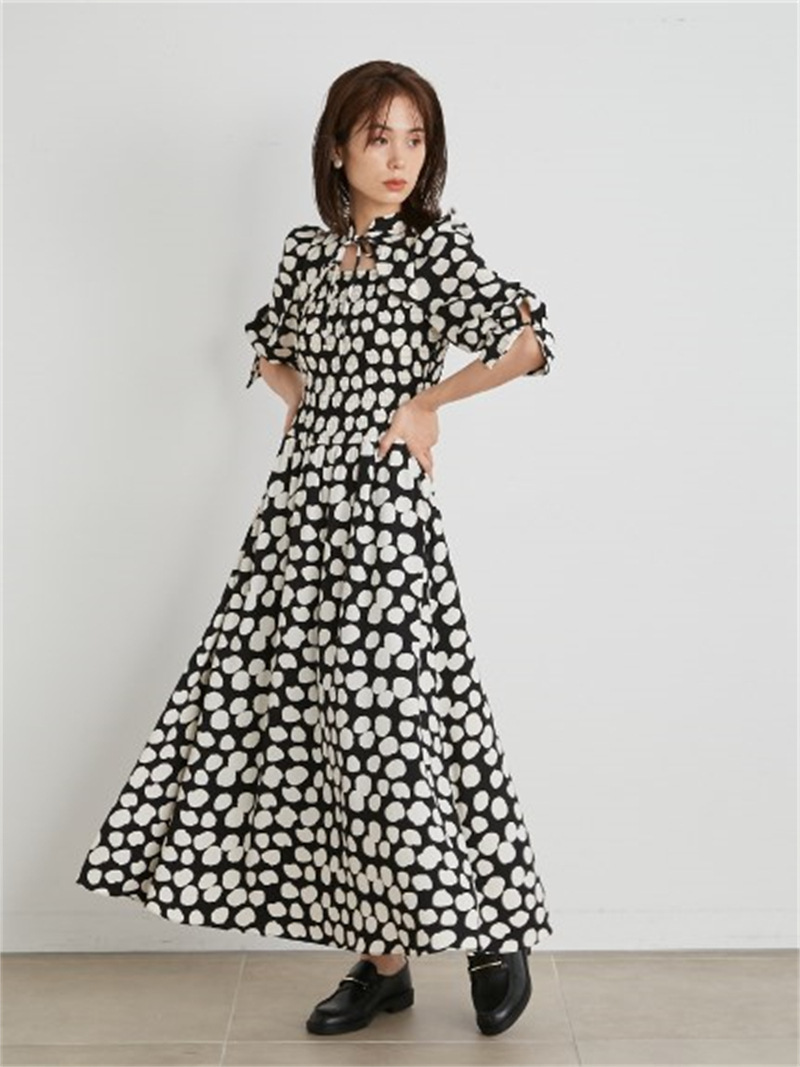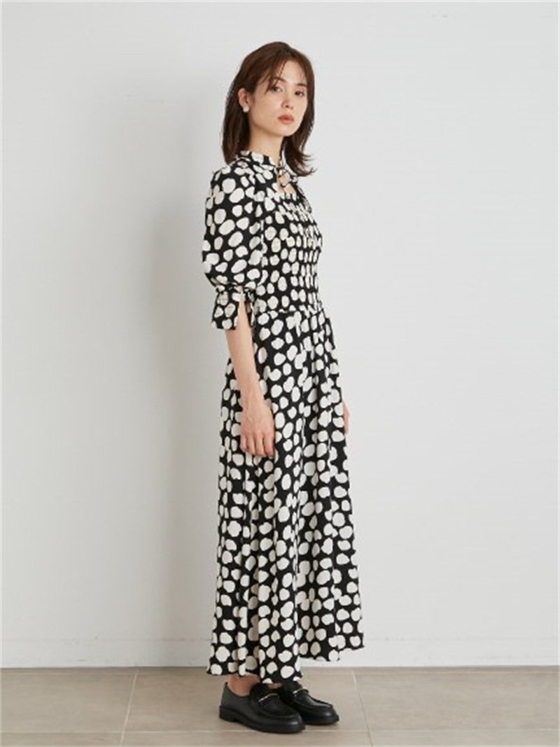 デコルテオープンドットプリントワンピース 単品購入で約5営業日内に発送します。