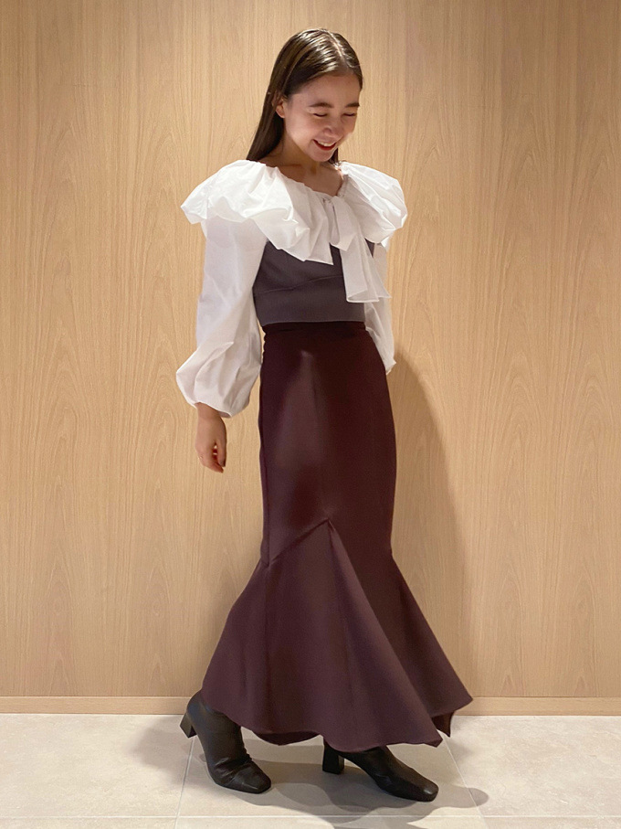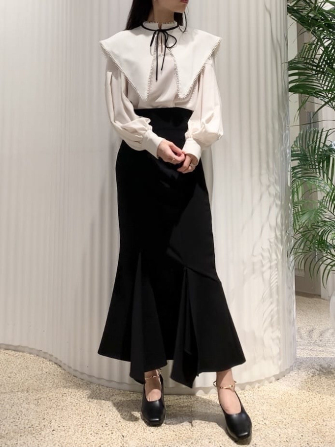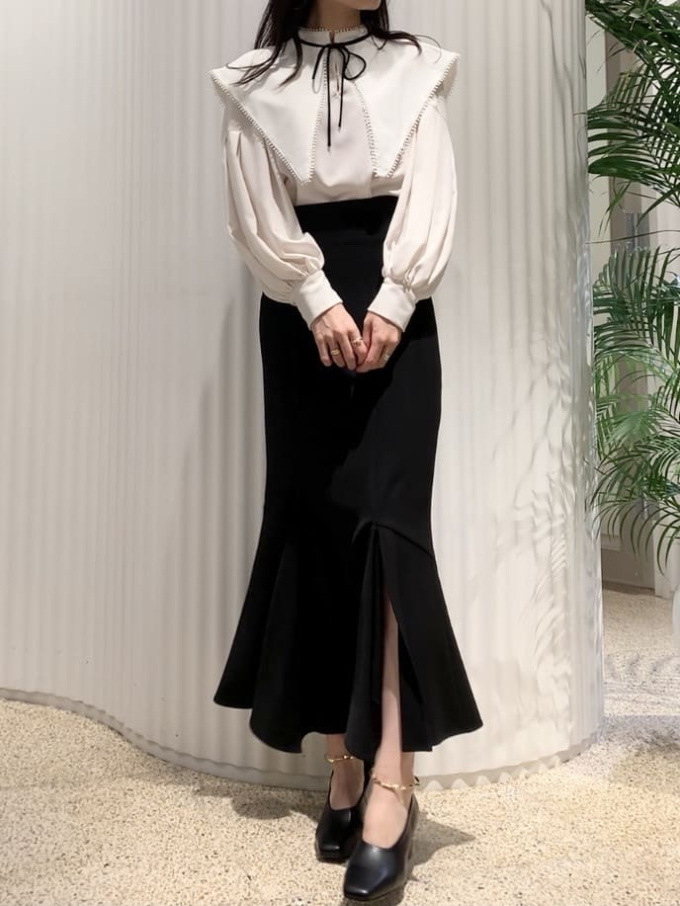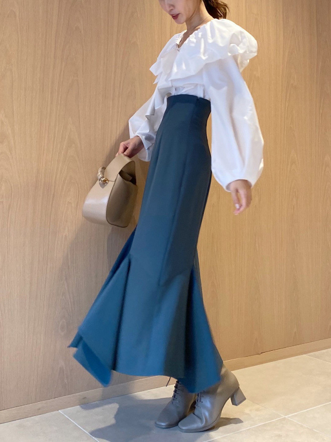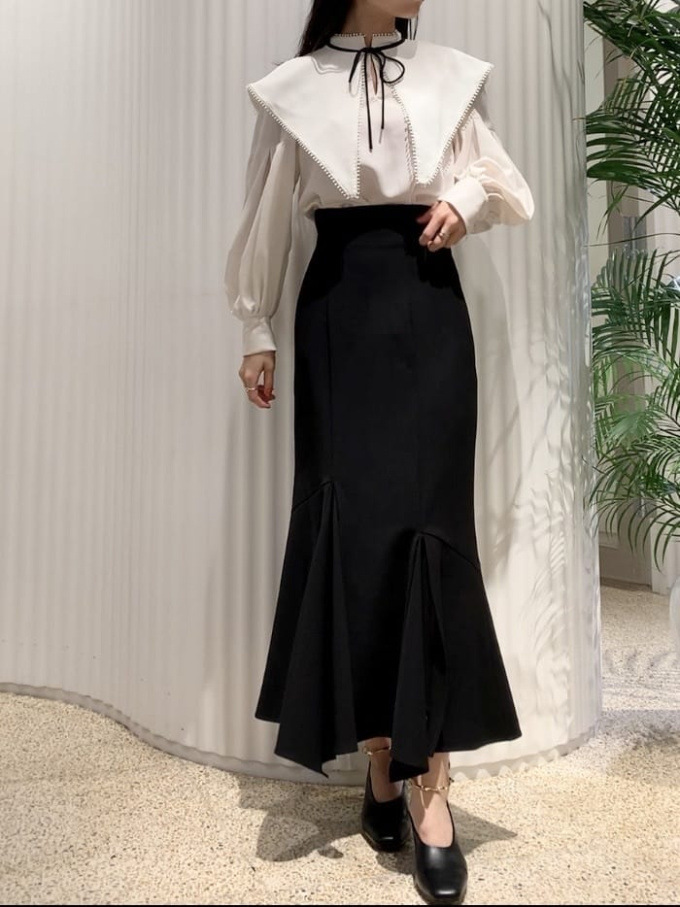 【裾のディティールでモードな印象を加算したマーメイドスカート】