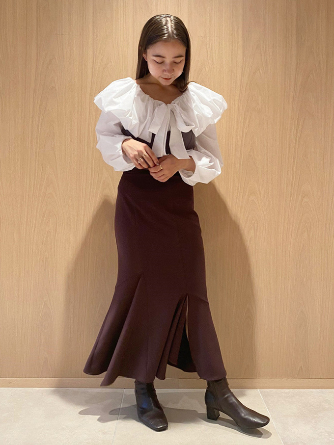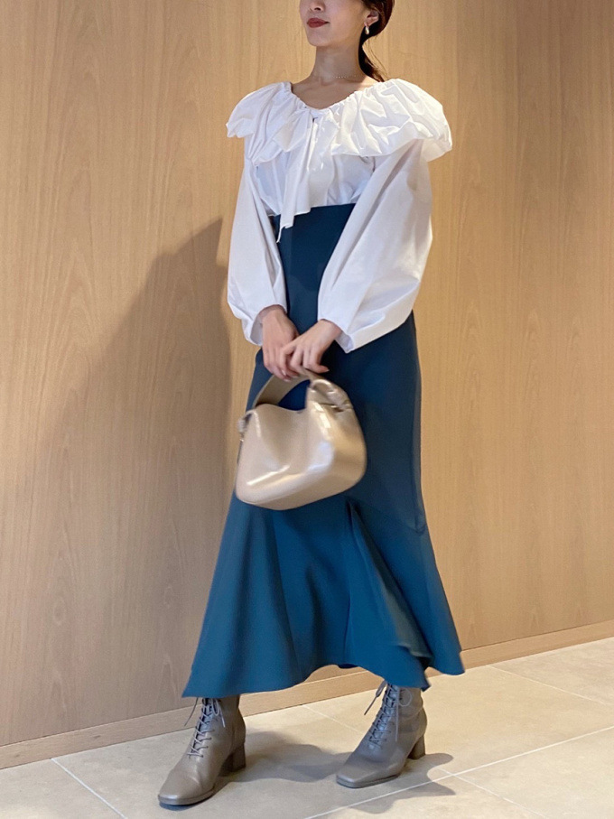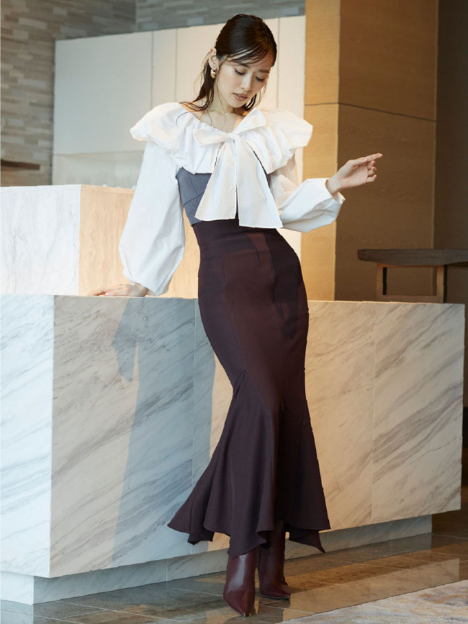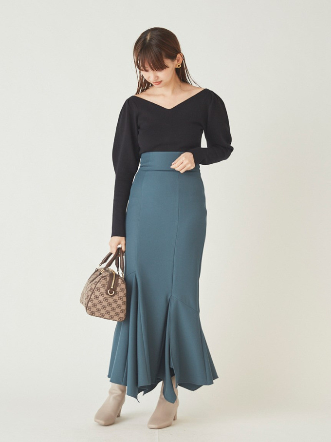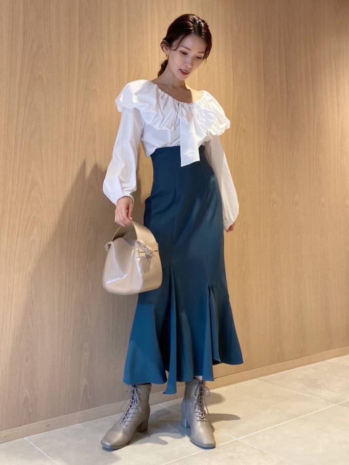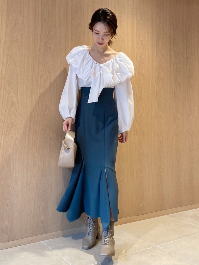 【裾のディティールでモードな印象を加算したマーメイドスカート】