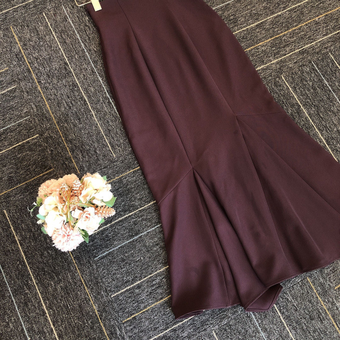 マーメイドラインがきれいに出る、やや厚手の生地を使用しました。鮮やかなピンクとグリーン、落ち着きあるブラウンとブラックの4色展開です。