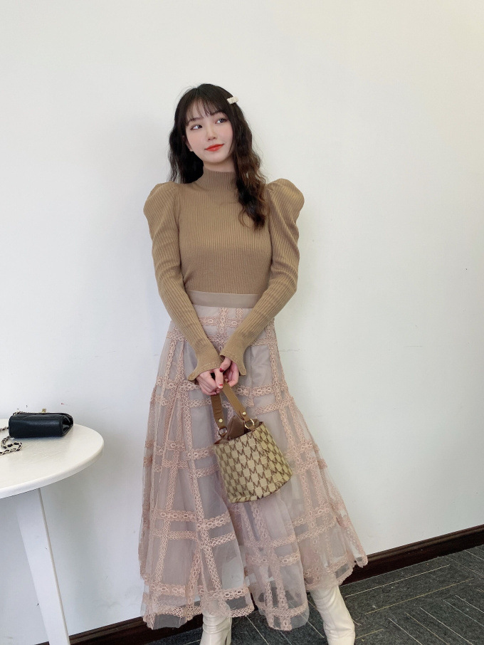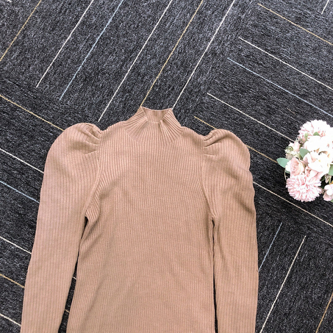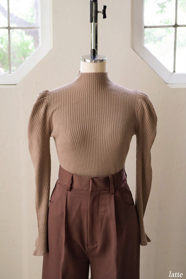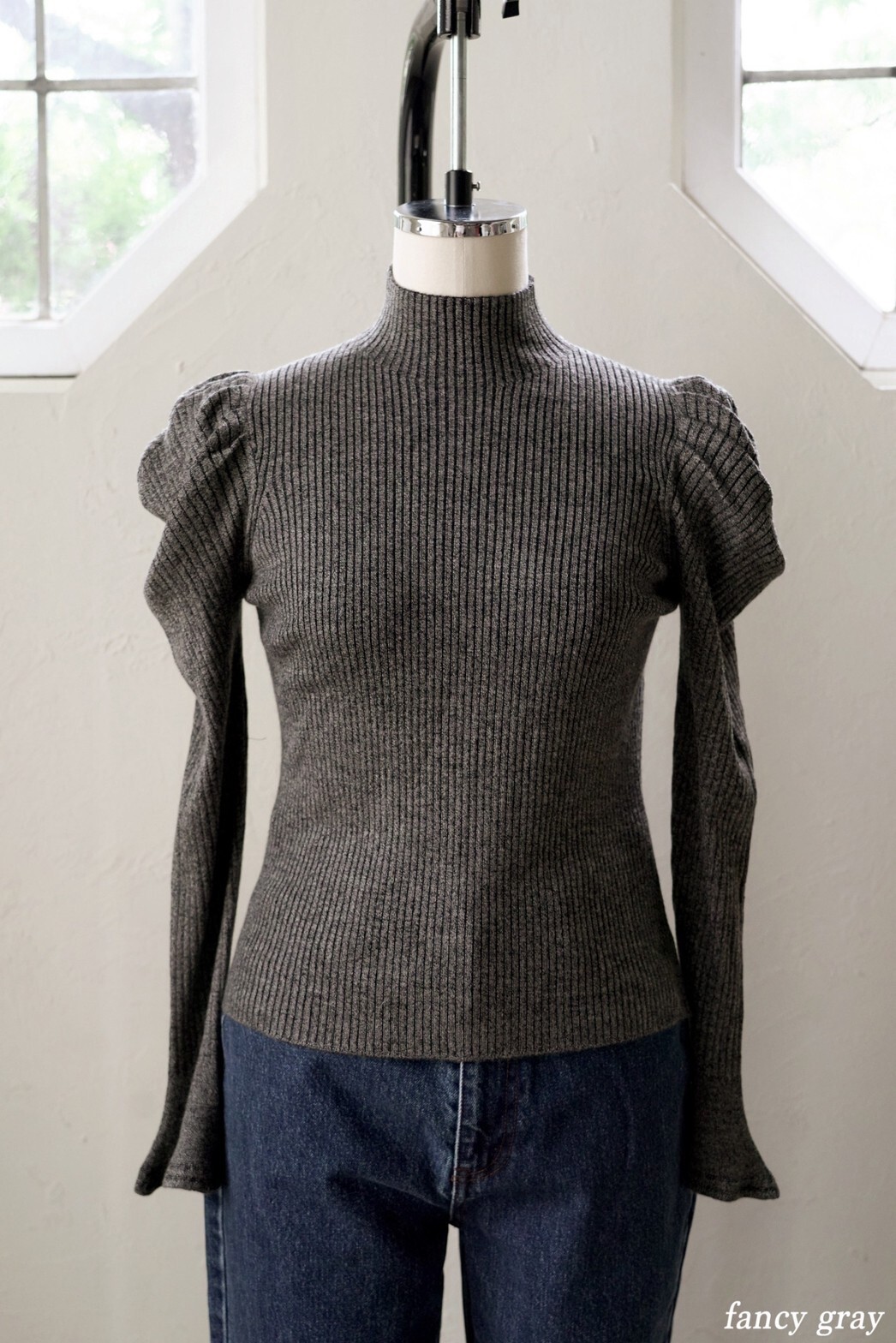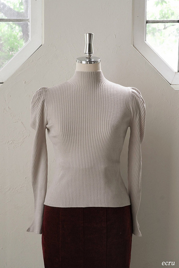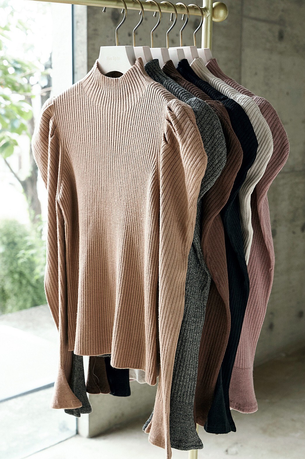 肩から袖に施したパフスリーブには程よいボリュームが出るようタックを施していながら、柔らかなニット素材でアウターに響かずお召しいただけます。