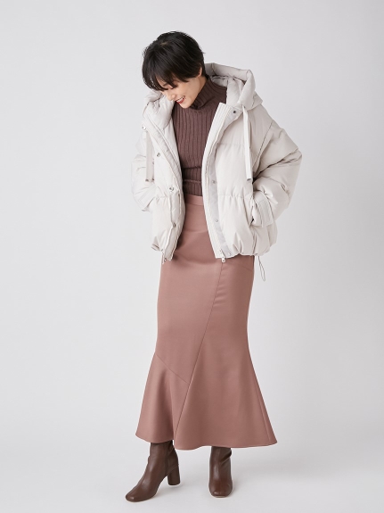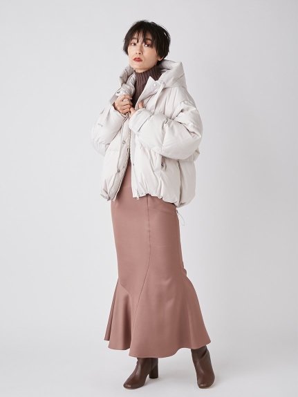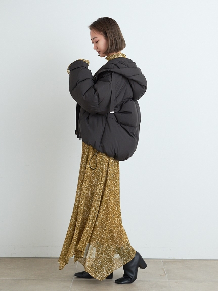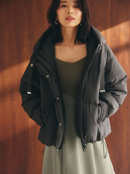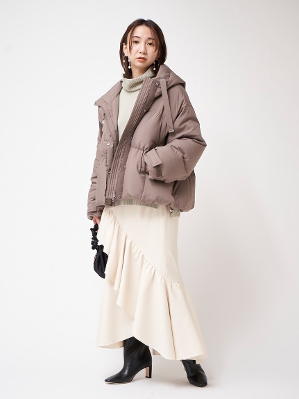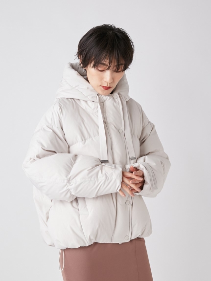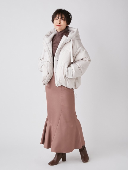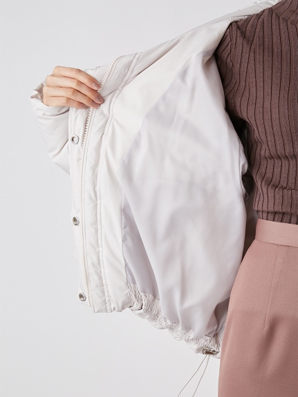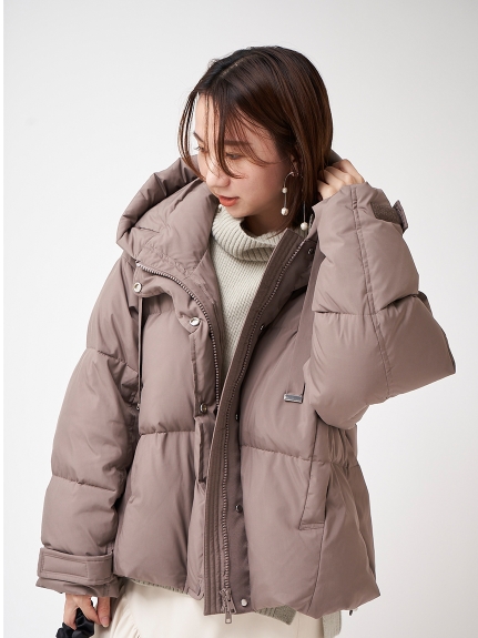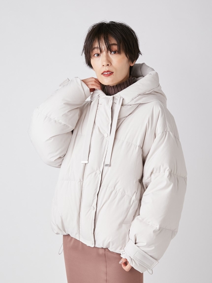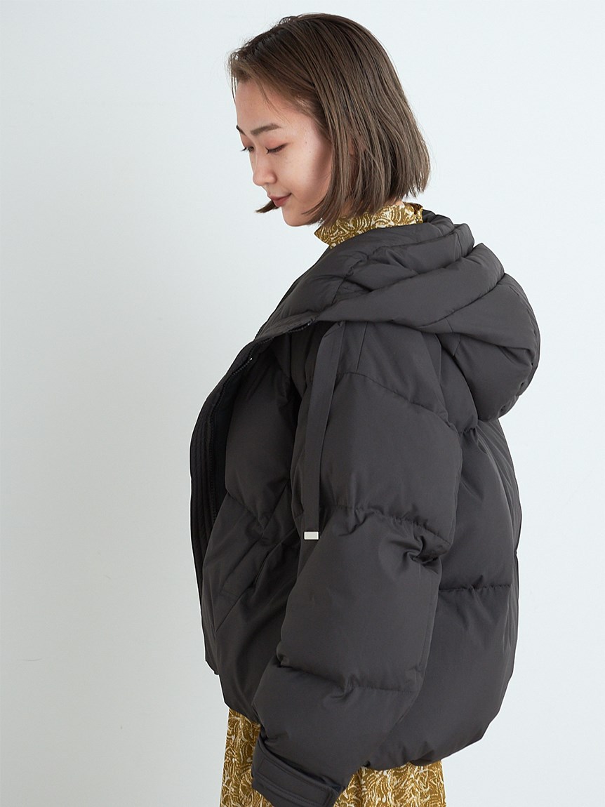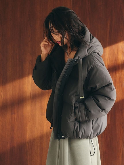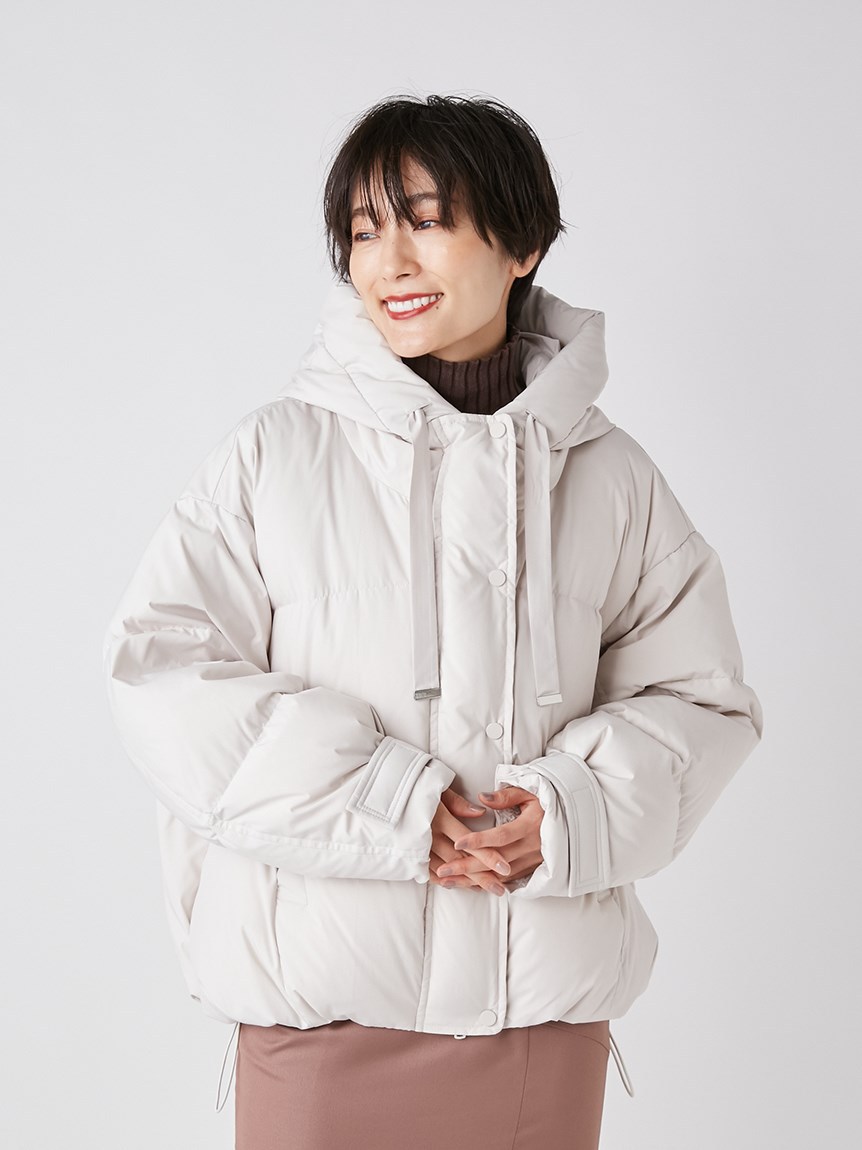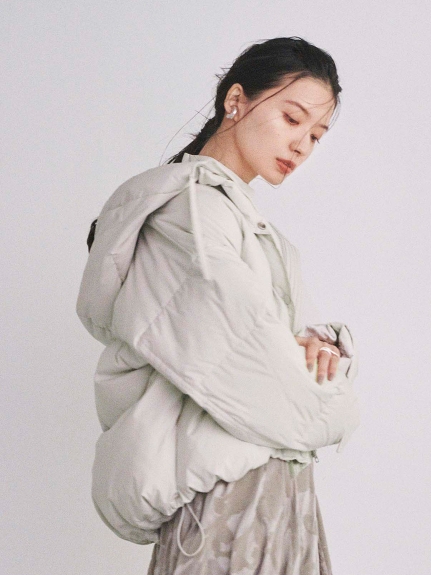 女性らしく着こなせるフード付ショートダウンジャケットは、身頃で斜めにあしらったステッチやフードのリボンをポイントにしたFRAY I.Dらしいデザインに仕上げています。