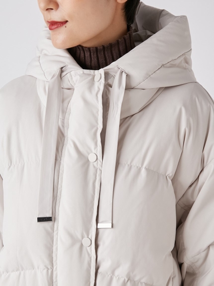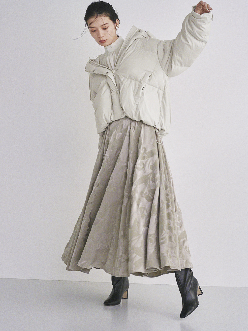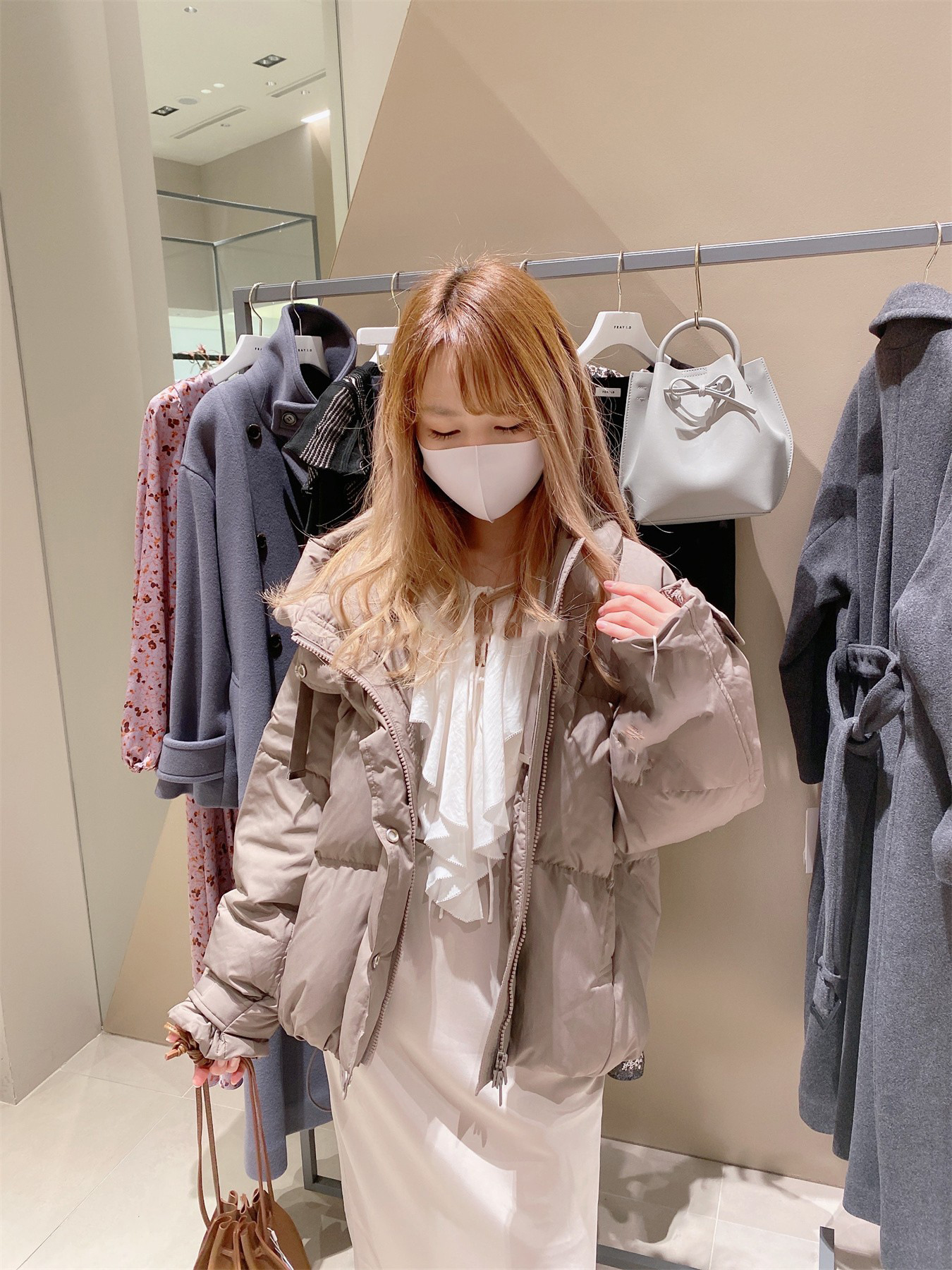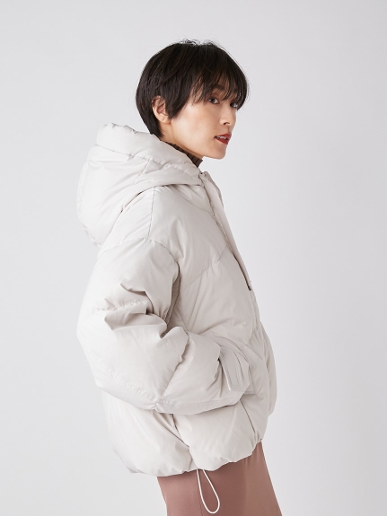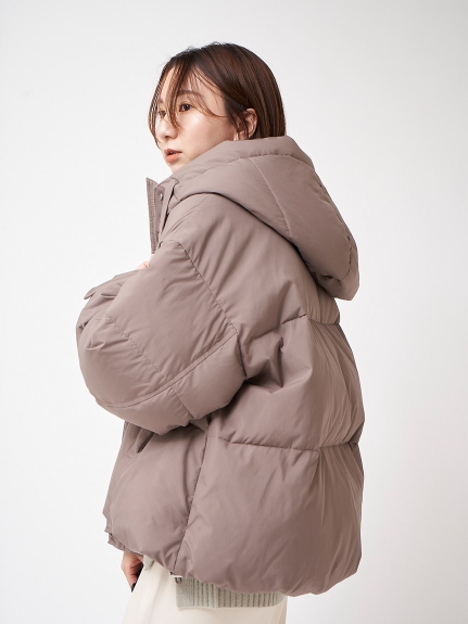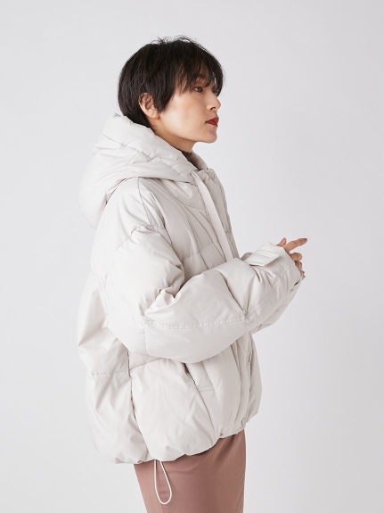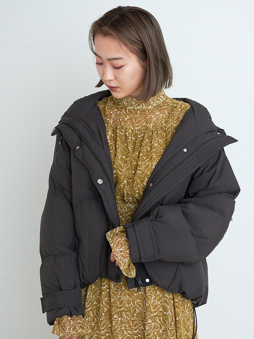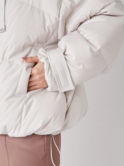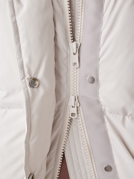 女性らしく着こなせるフード付ショートダウンジャケットは、身頃で斜めにあしらったステッチやフードのリボンをポイントにしたFRAY I.Dらしいデザインに仕上げています。