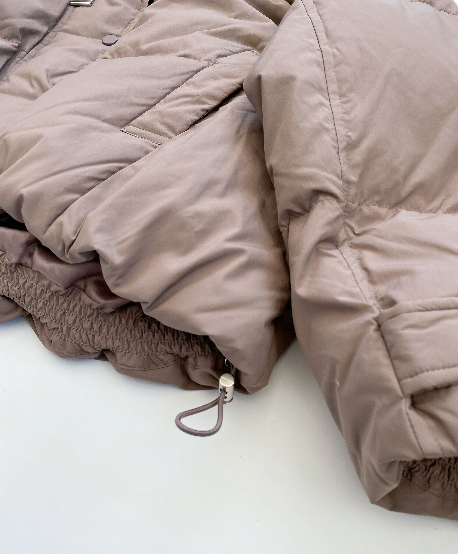 ポリエステル100%/詰物:ダウン90%、フェザー10%/裏地:ポリエステル100%