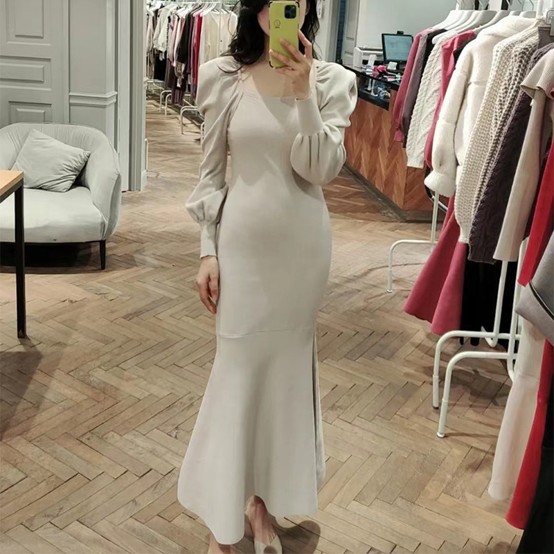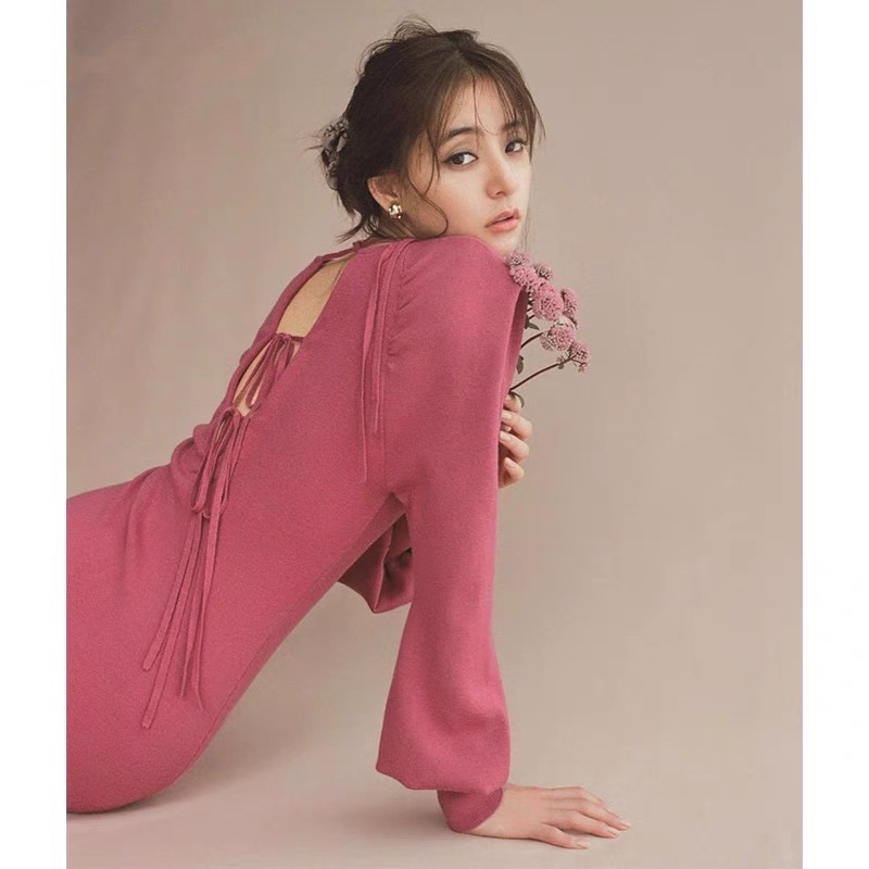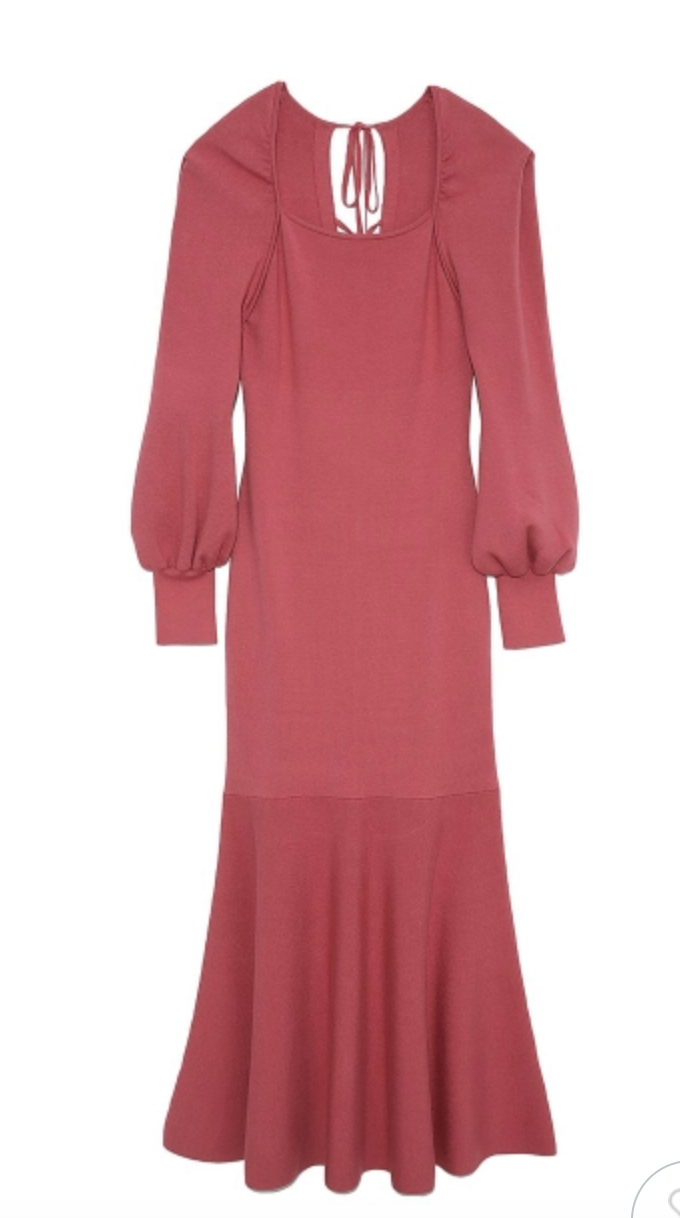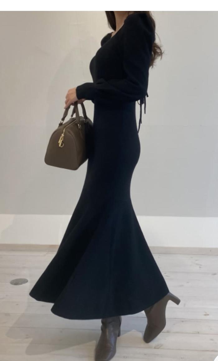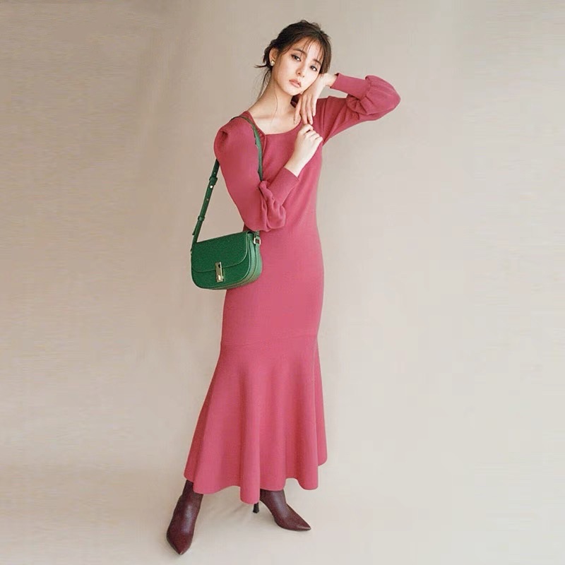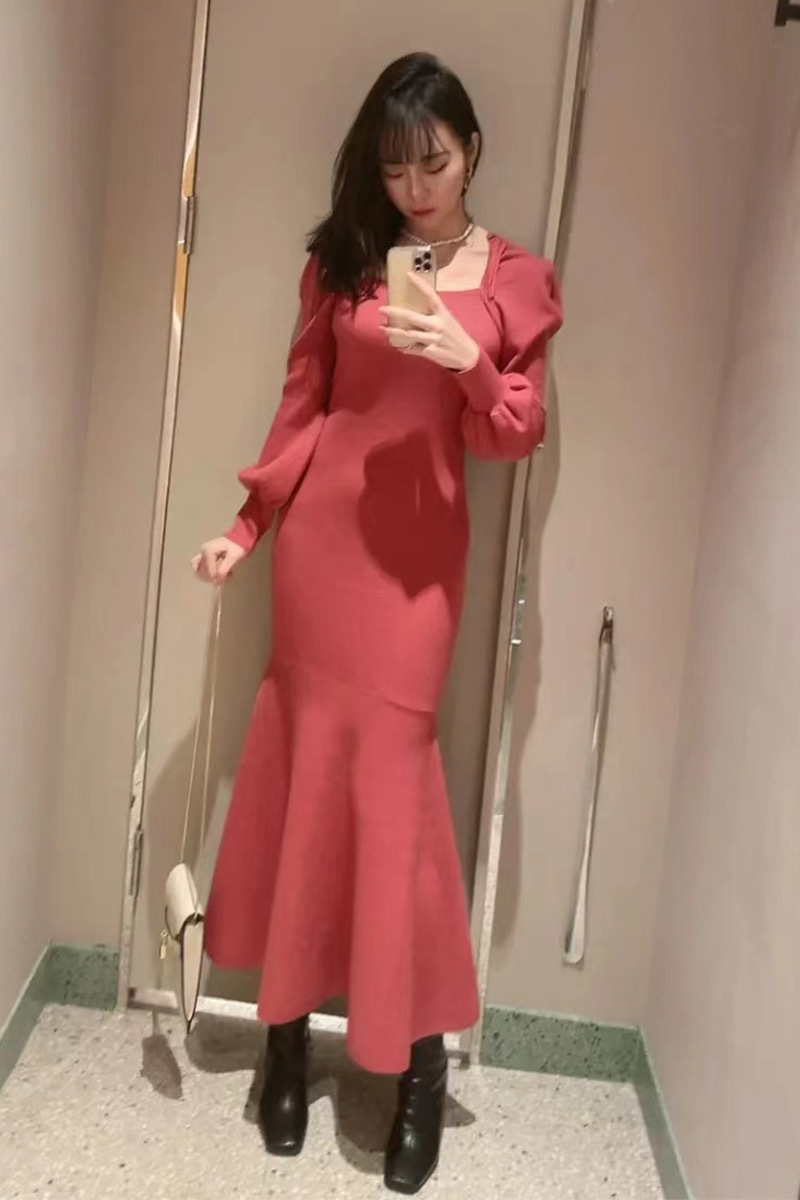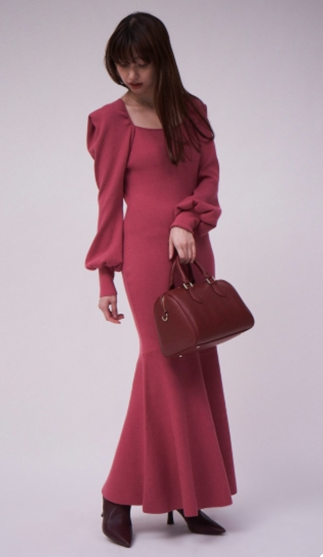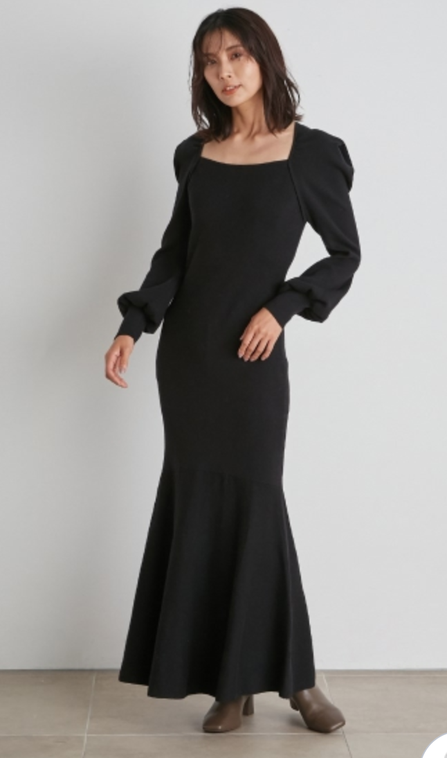 【パフスリーブとマーメイドの緩急が女性らしさを最大限に引き出すニットワンピース】