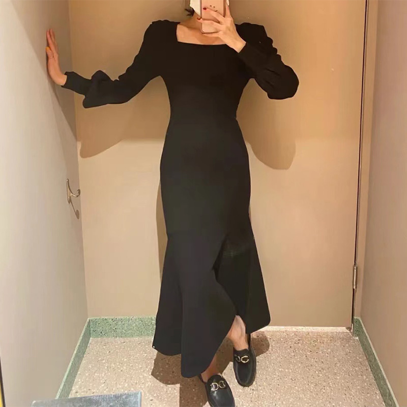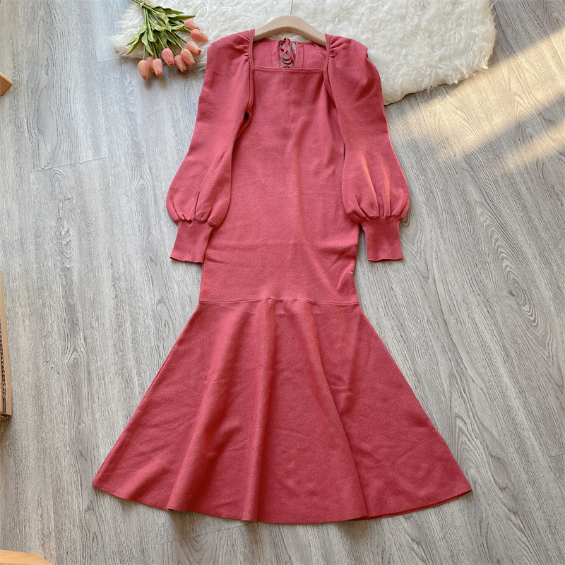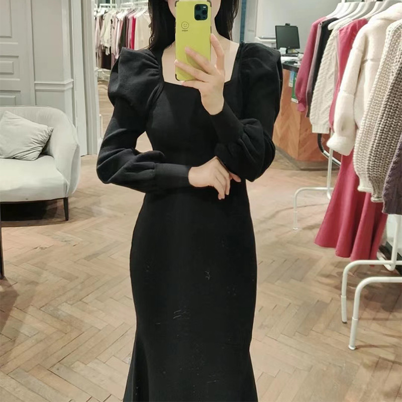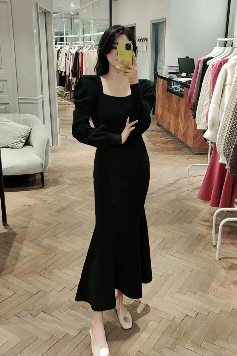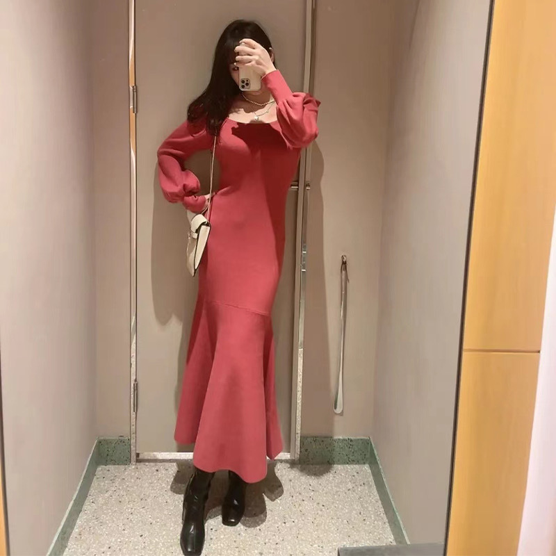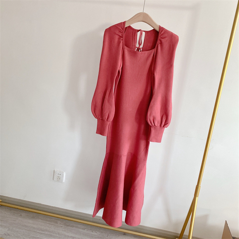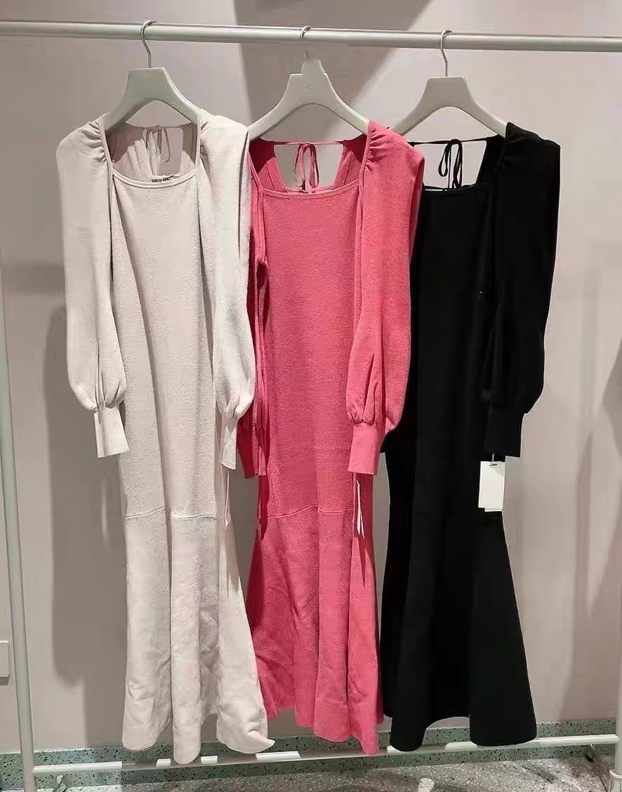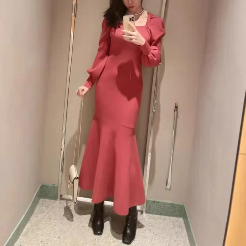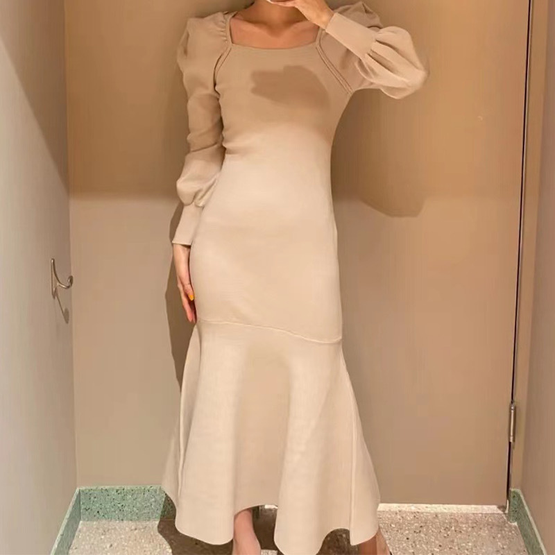 【パフスリーブとマーメイドの緩急が女性らしさを最大限に引き出すニットワンピース】