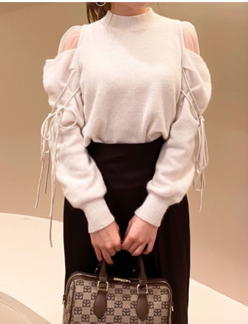 【人気のシースルーショルダーニットをアップデートしてお届け】