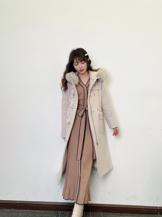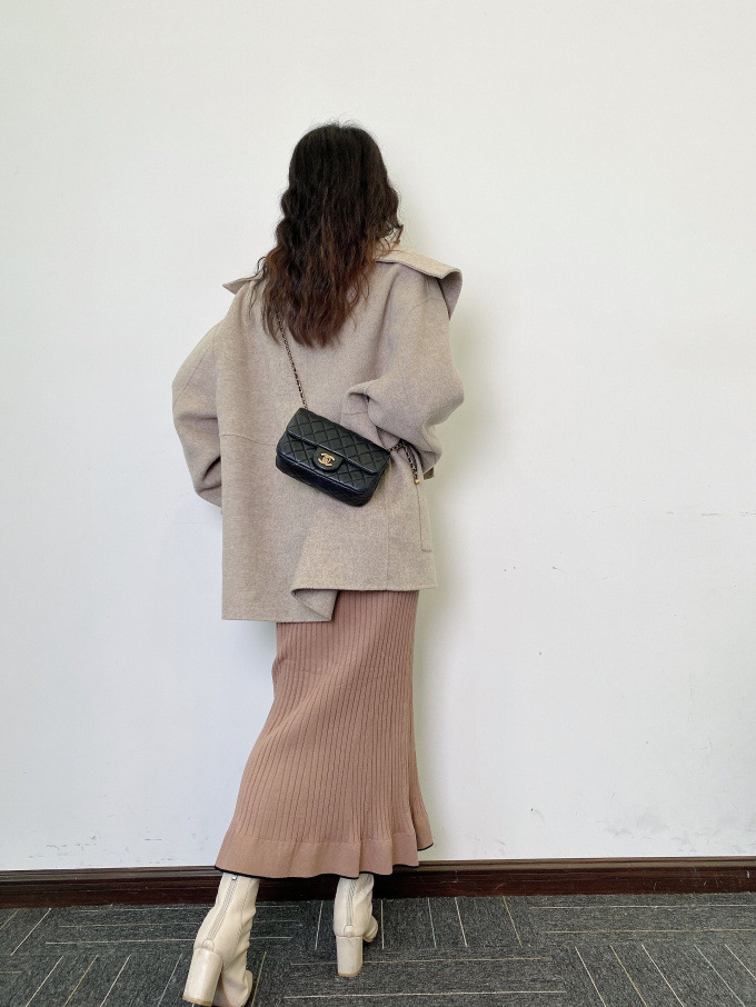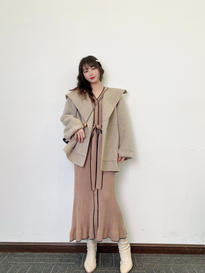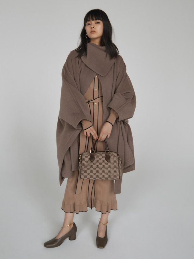 肌当たり滑らかでストレッチ性のあるニットを使用しました。配色パイピングを効かせたベージュとブラック、ワントーンのワインの3色展開です。