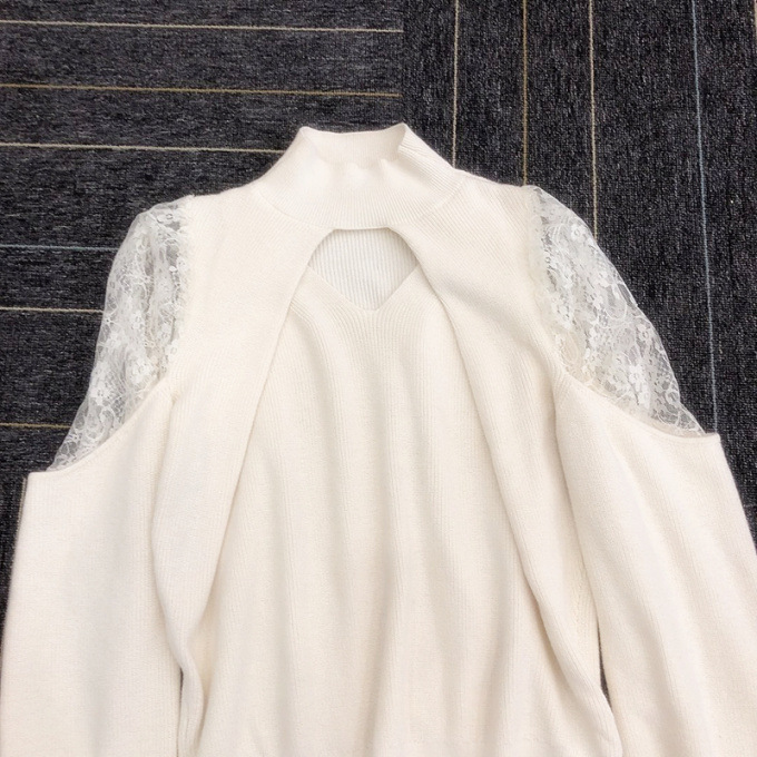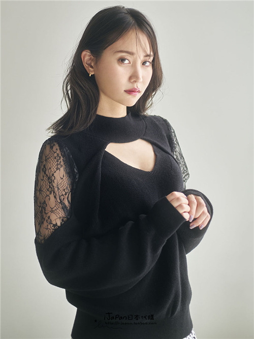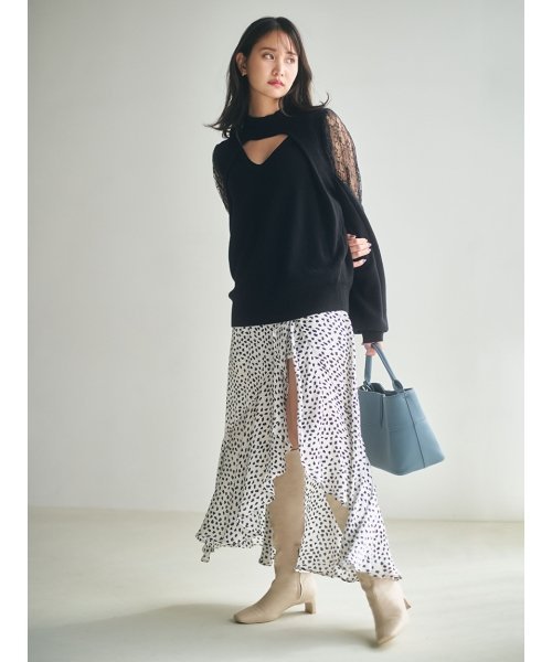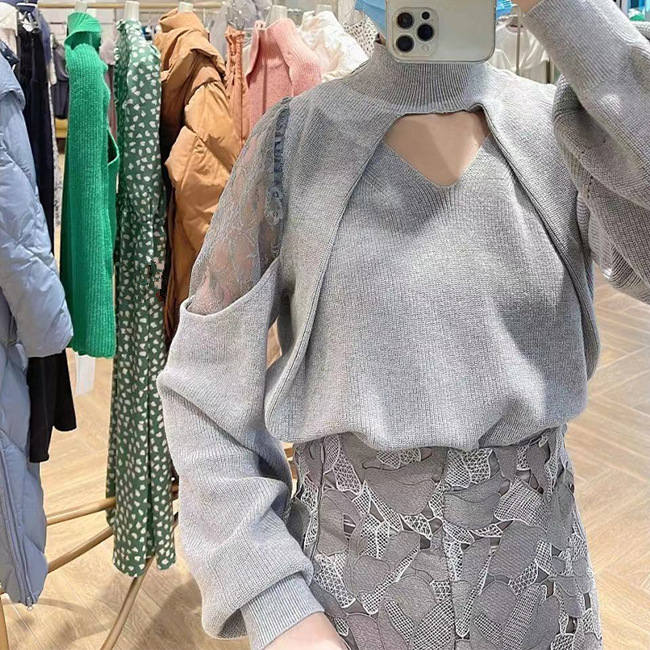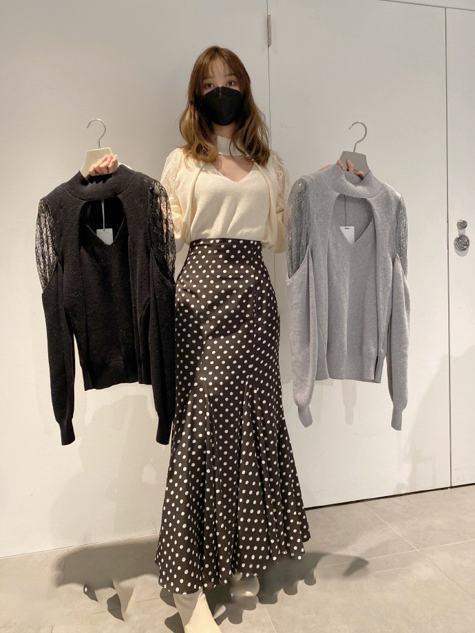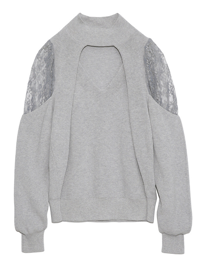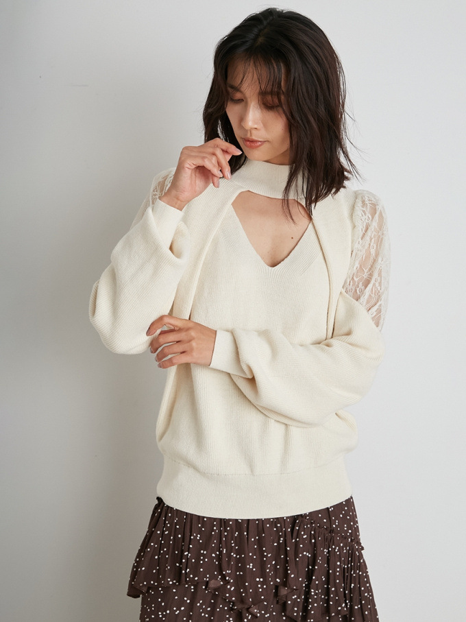 【肌見せやレースの透け感で女性らしい緩急をデザインしたレースドッキングニット】