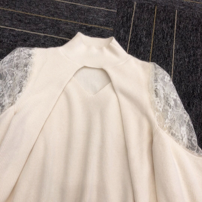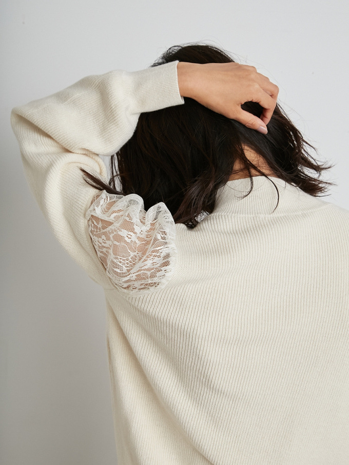 ニット部分:綿94%、カシミヤ6%/レース:ポリエステル100%