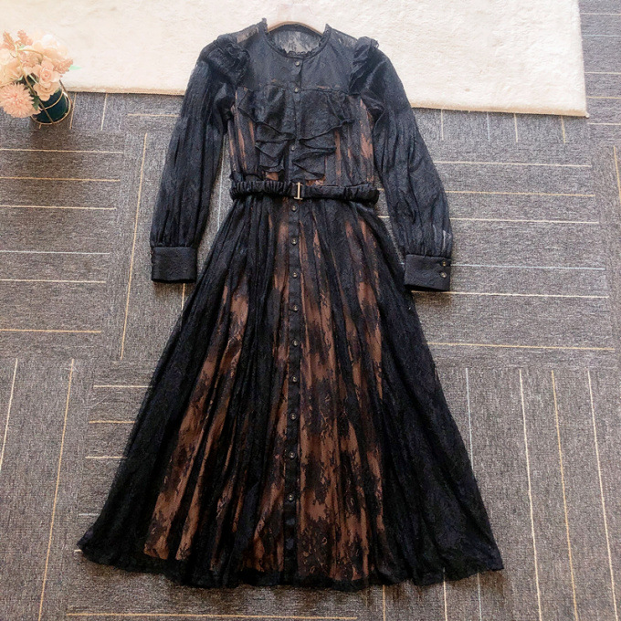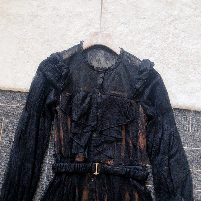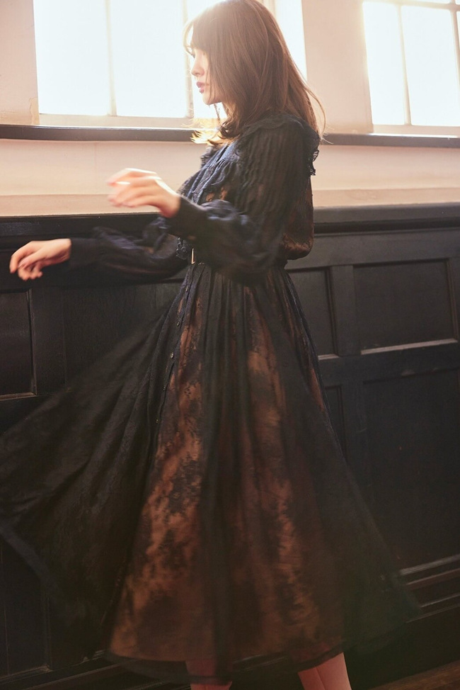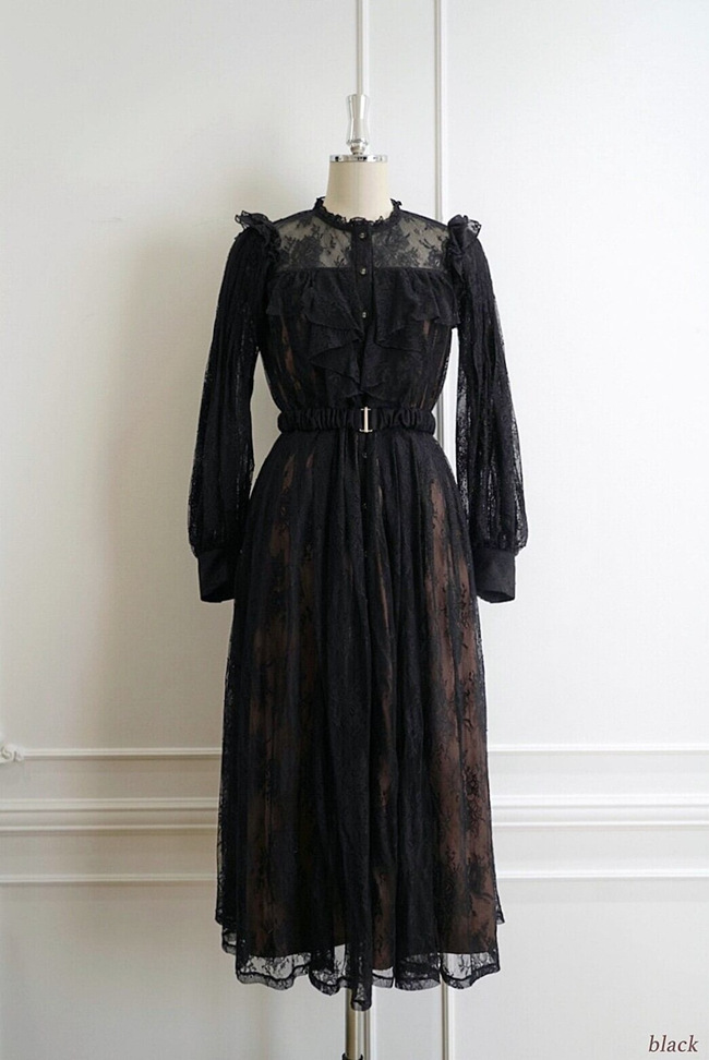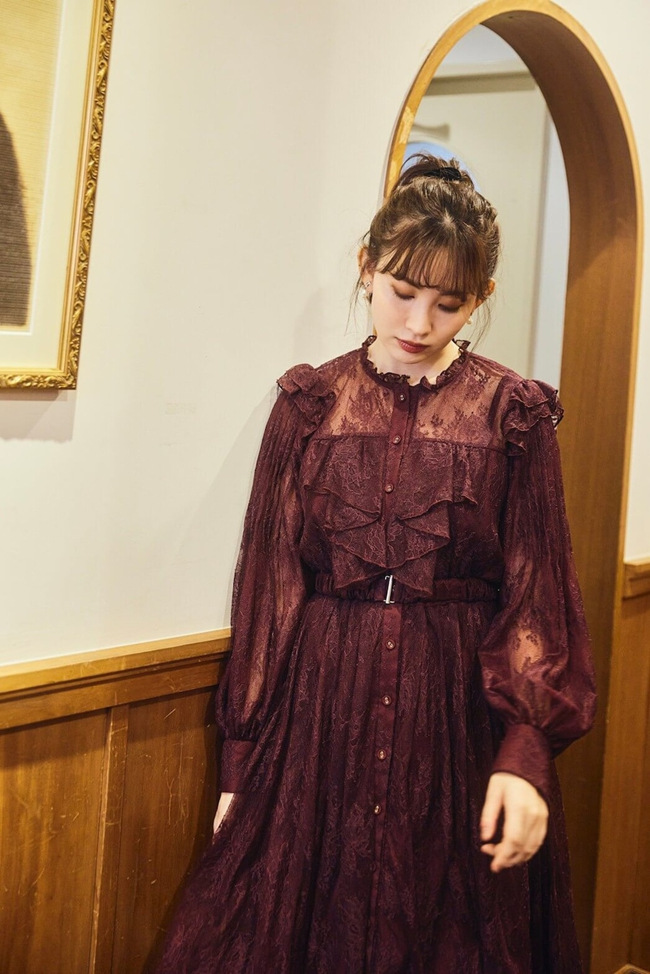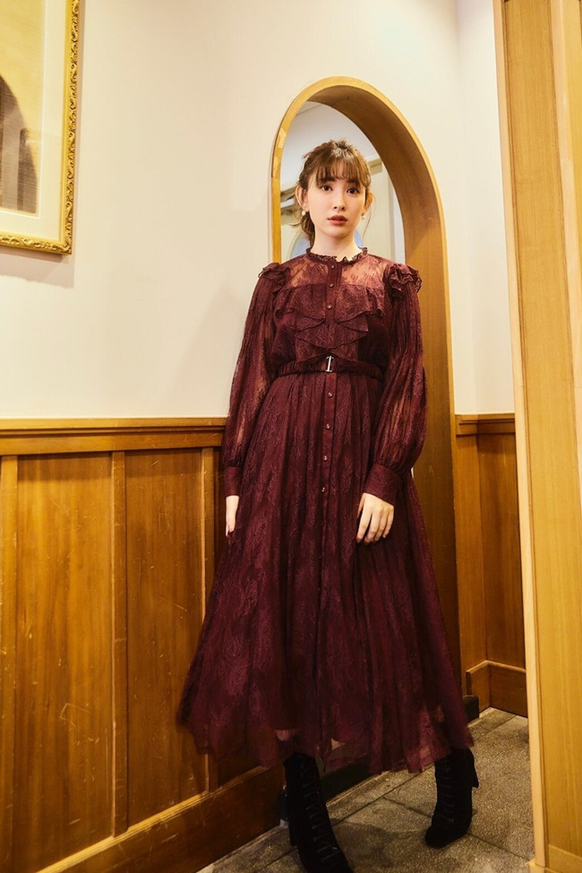ホリデーシーズンにぴったりな、贅沢にレースを使ったドレスです。