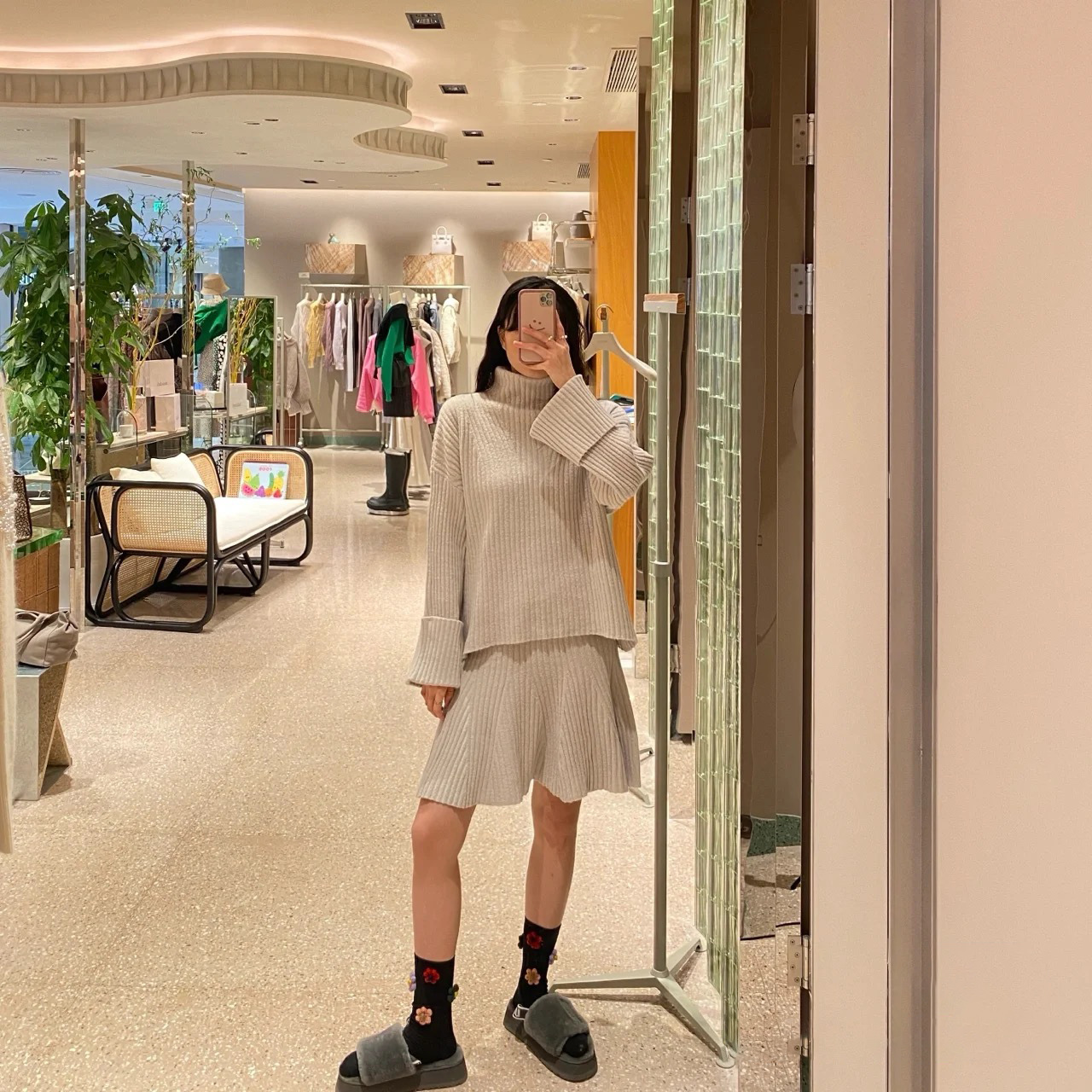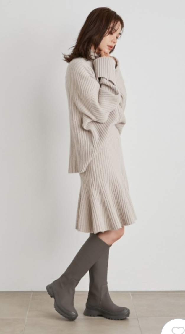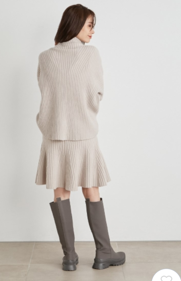 【ミニマルで愛らしいタートル×膝丈スカートのニットセットアップ】