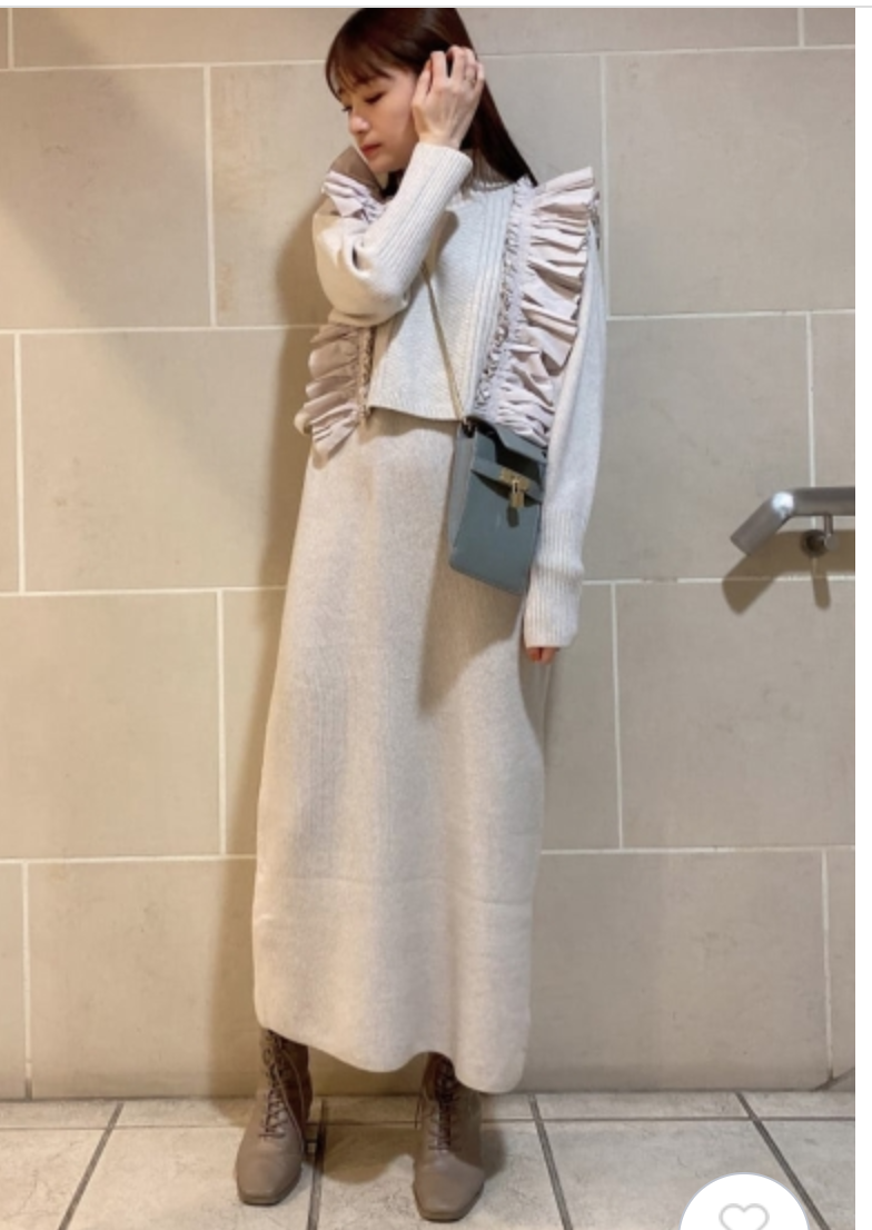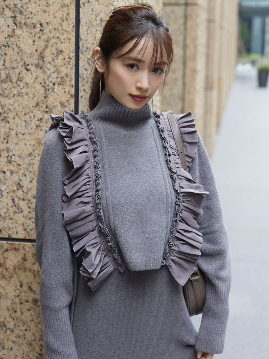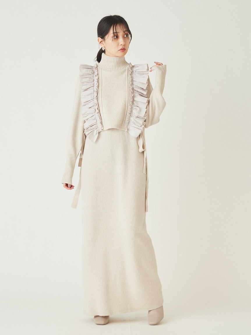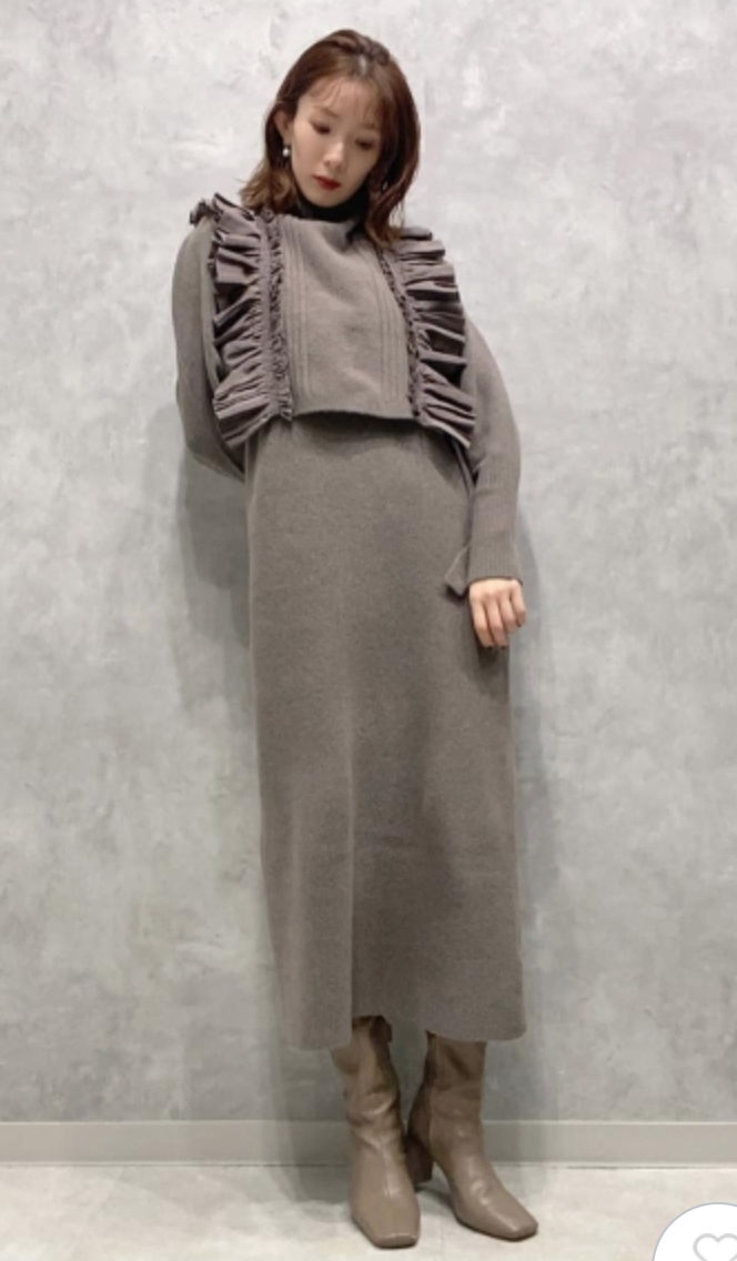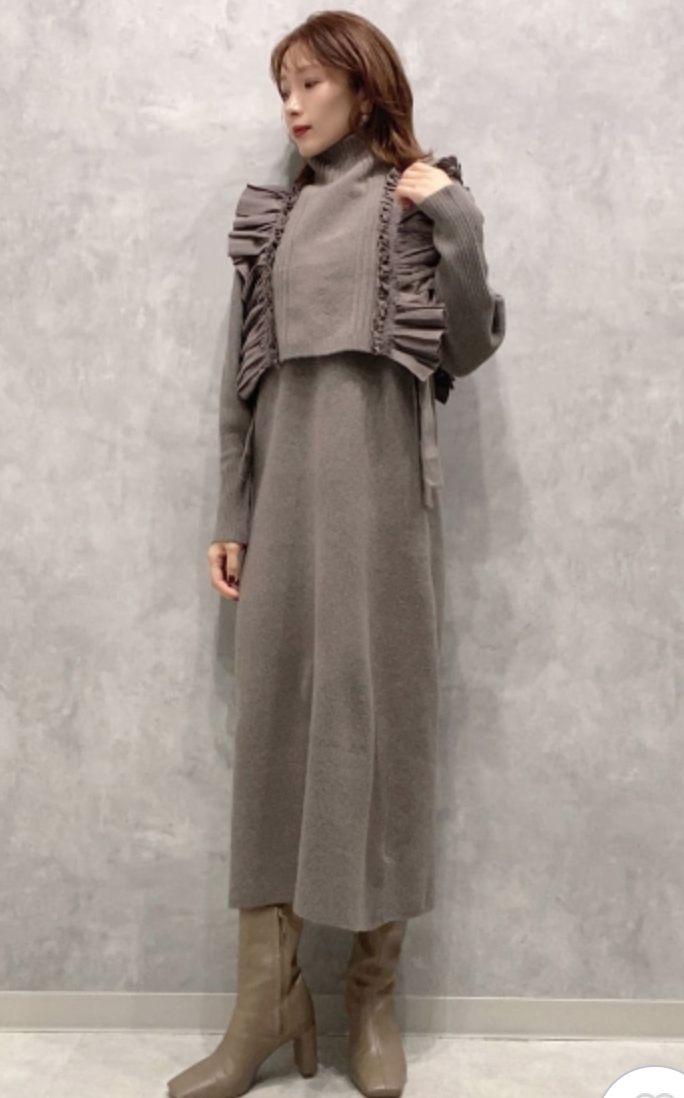 フリルベストレイヤードニットワンピース 入金確認後3-5営業日発送(土日祝日除く)