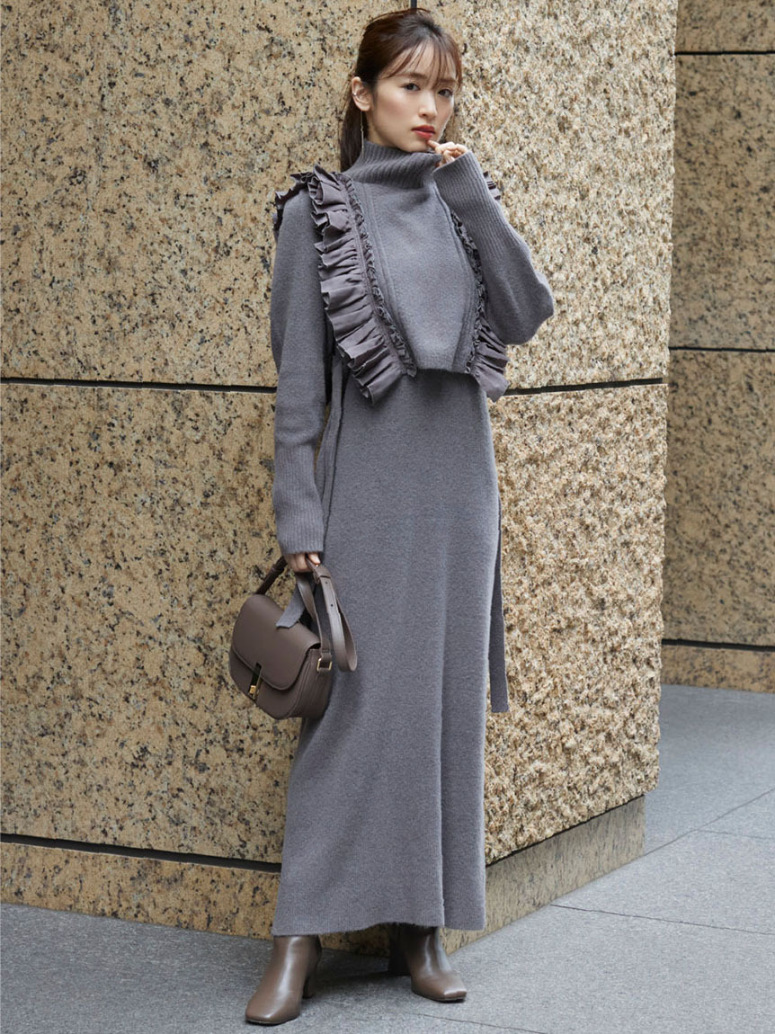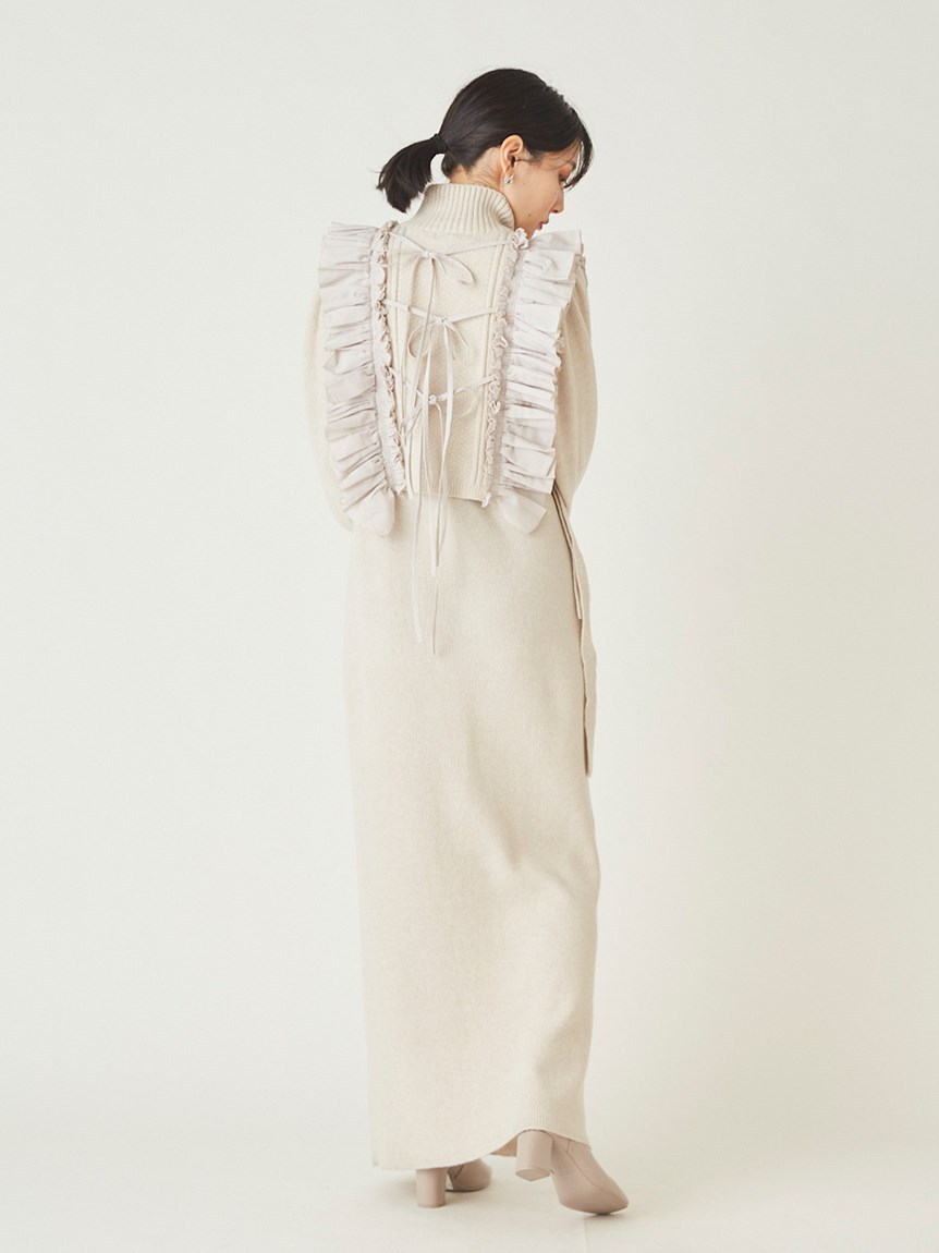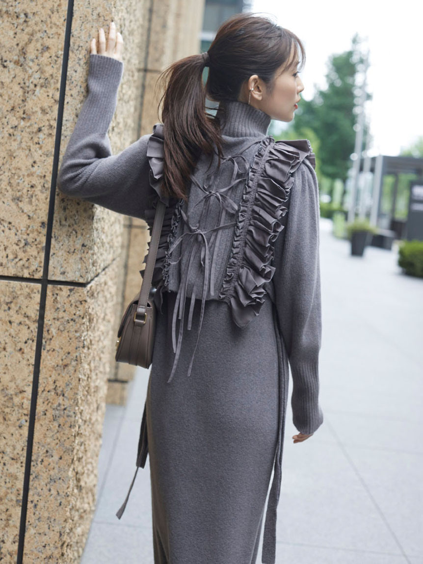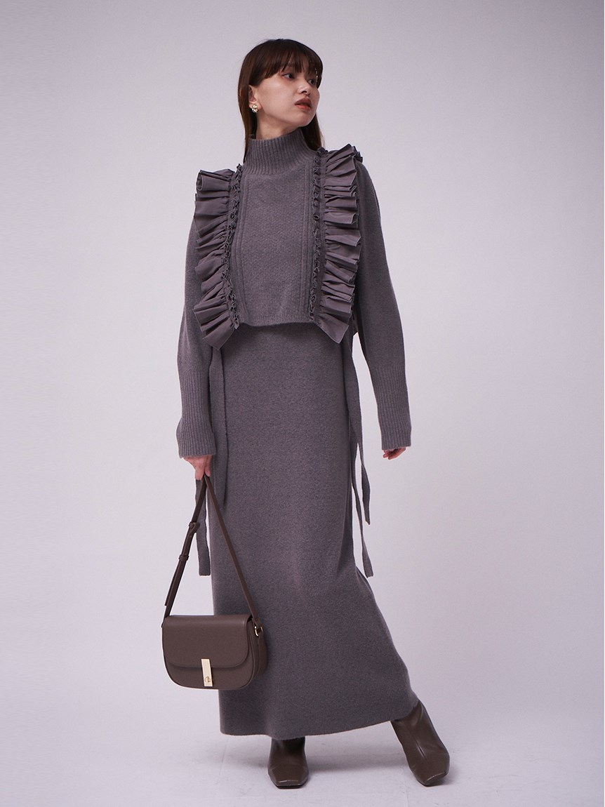 【大人のロマンティックを叶えるフリルベスト×ニットワンピースセット】