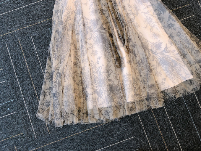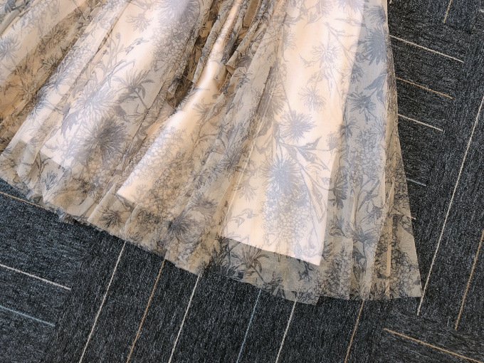 軽やかな布帛生地に、透け感のあるチュールを重ねました。無地のライトグレーとピンク、ヴィンテージな花柄の3色展開です。