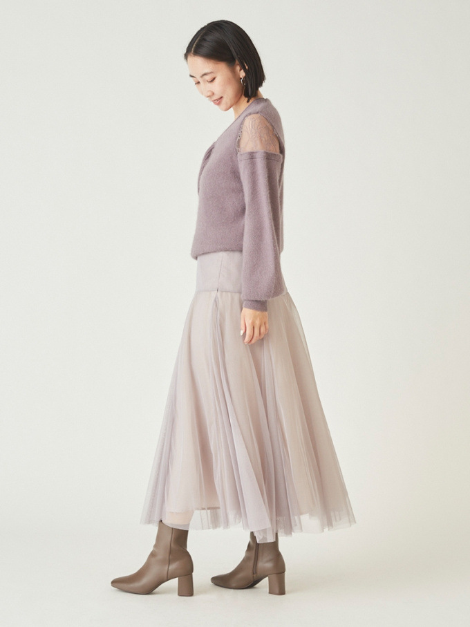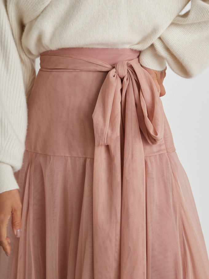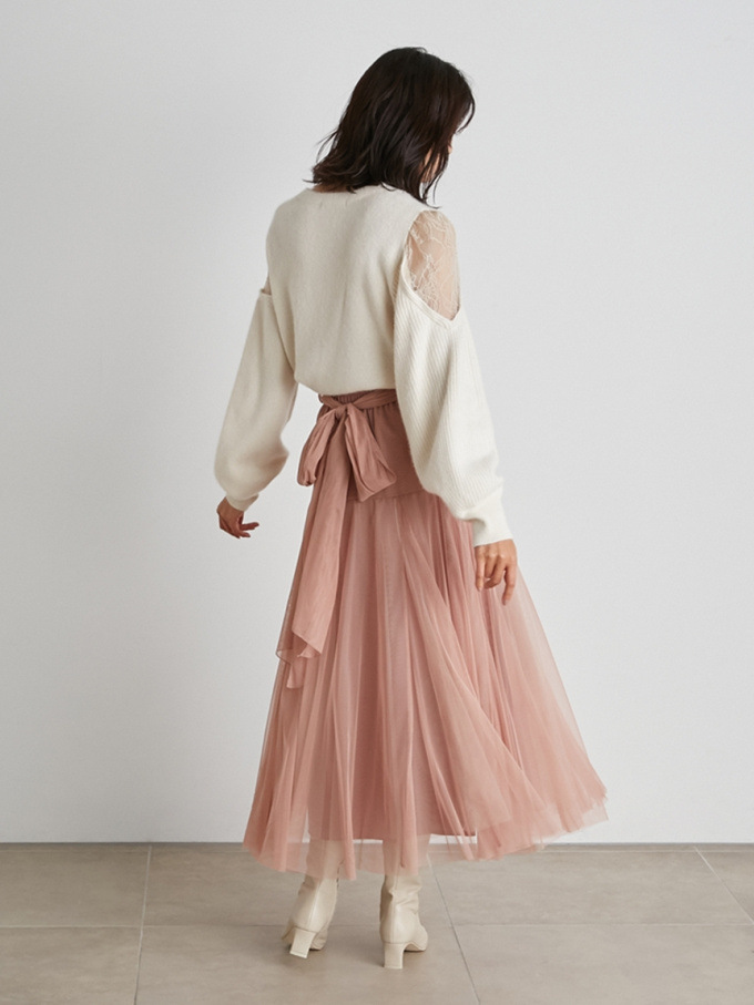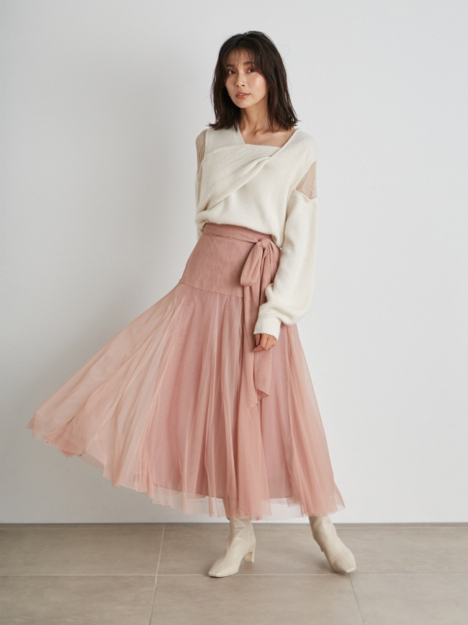 【スタイリングに華やかさをプラスするハイウエストチュールスカート】