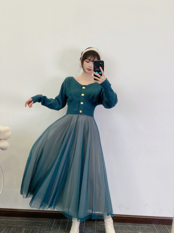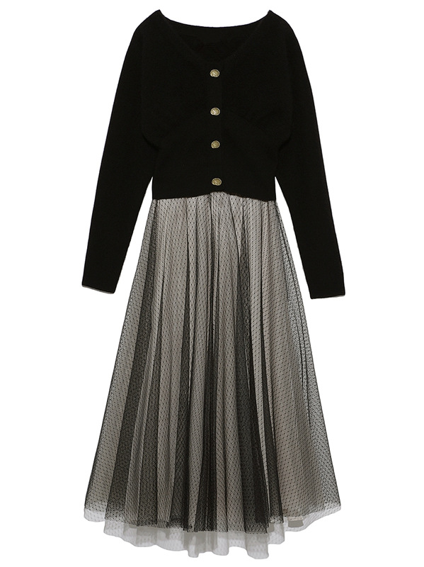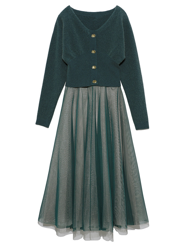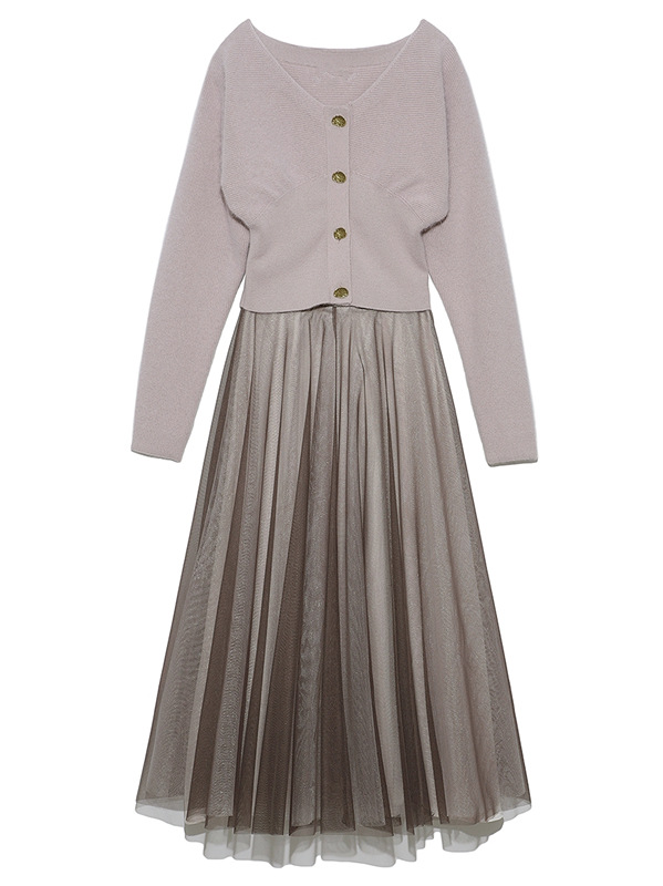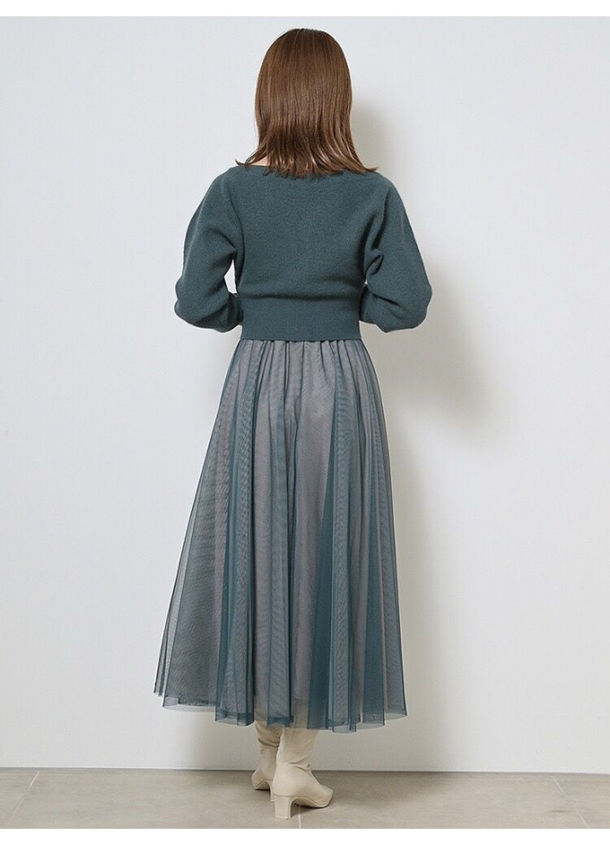 フレアチュールコンビニットワンピース