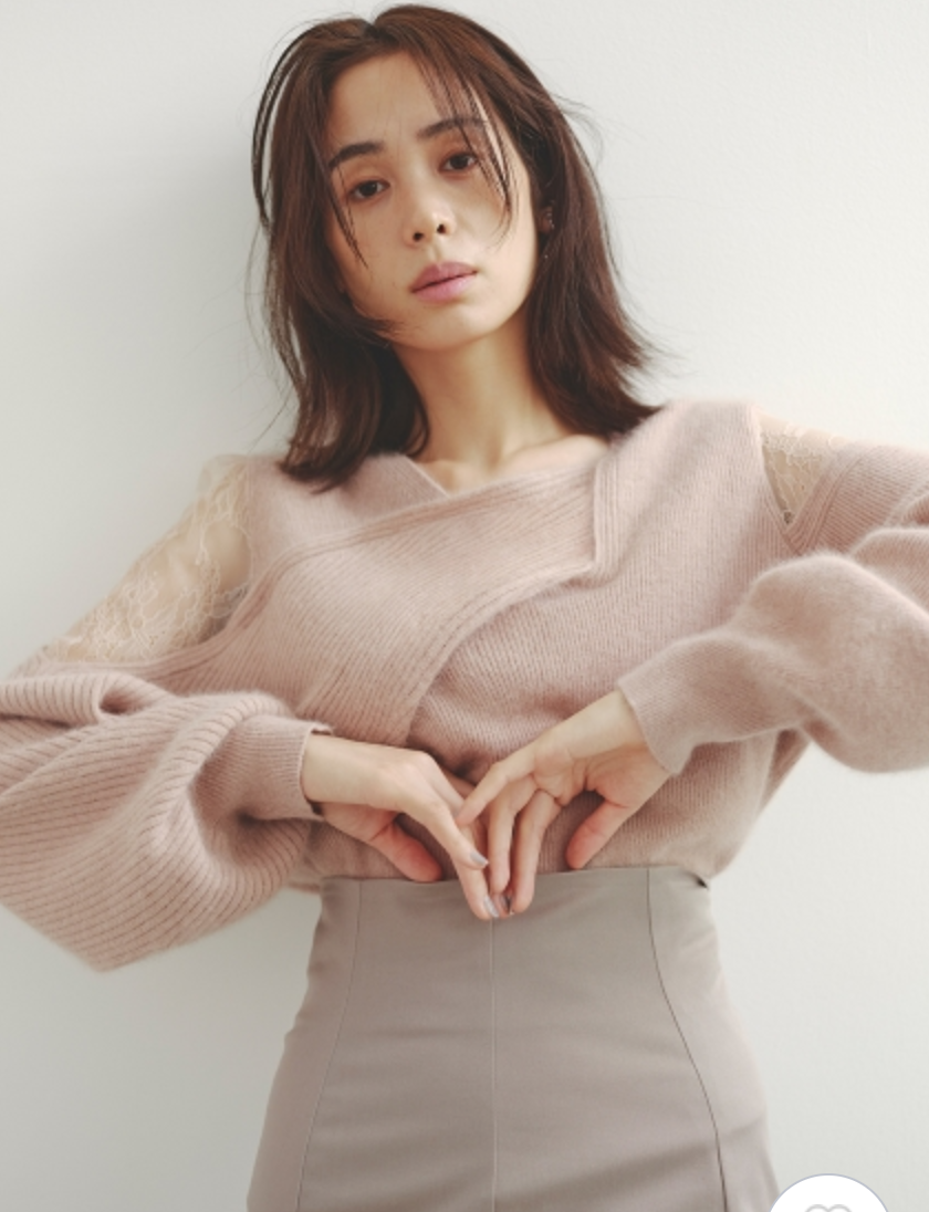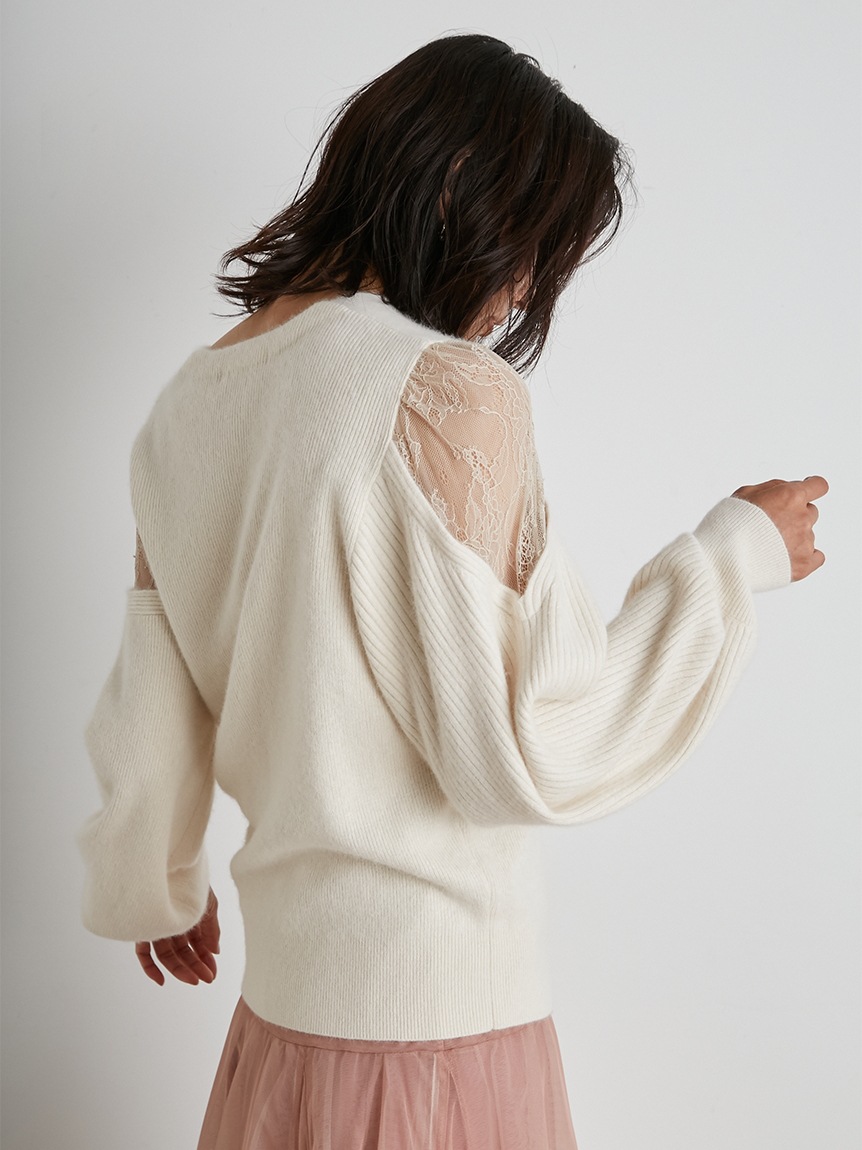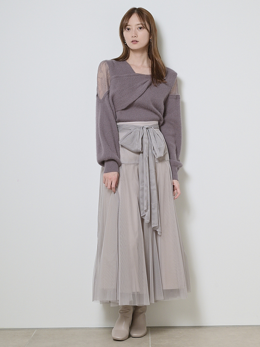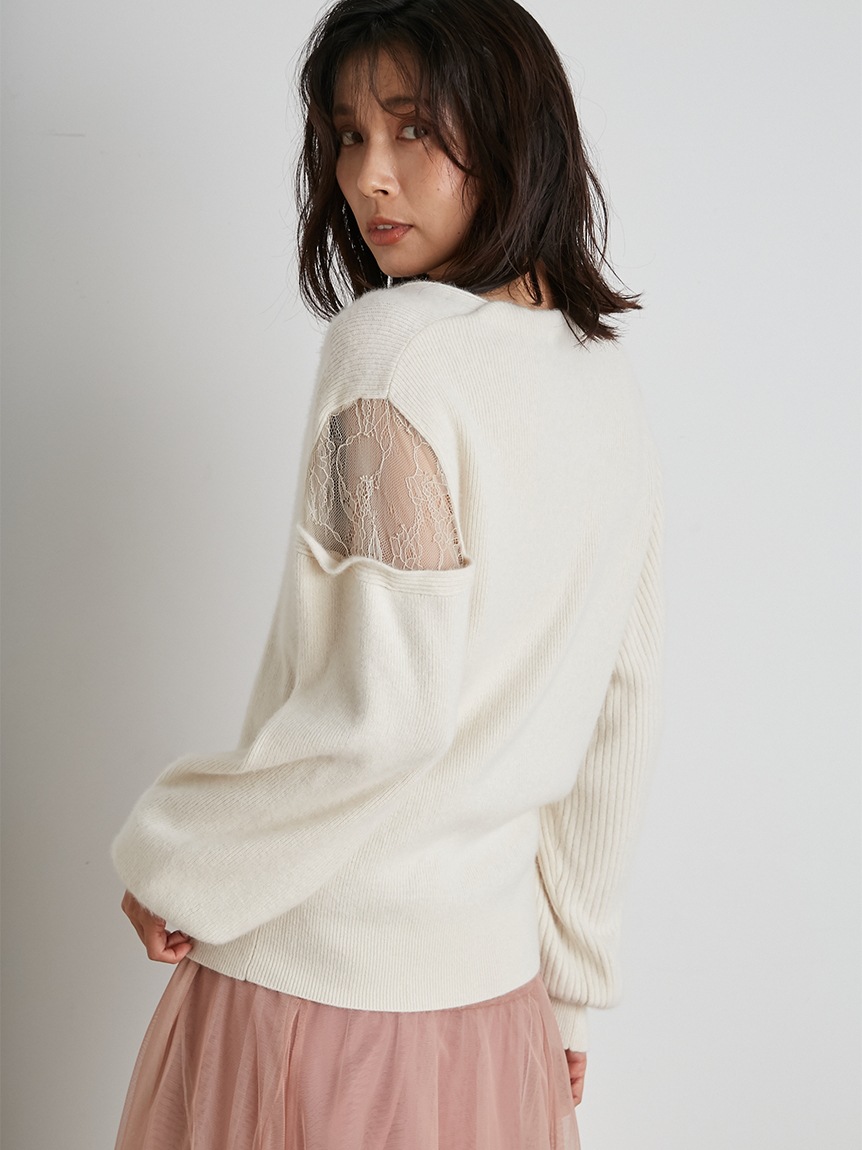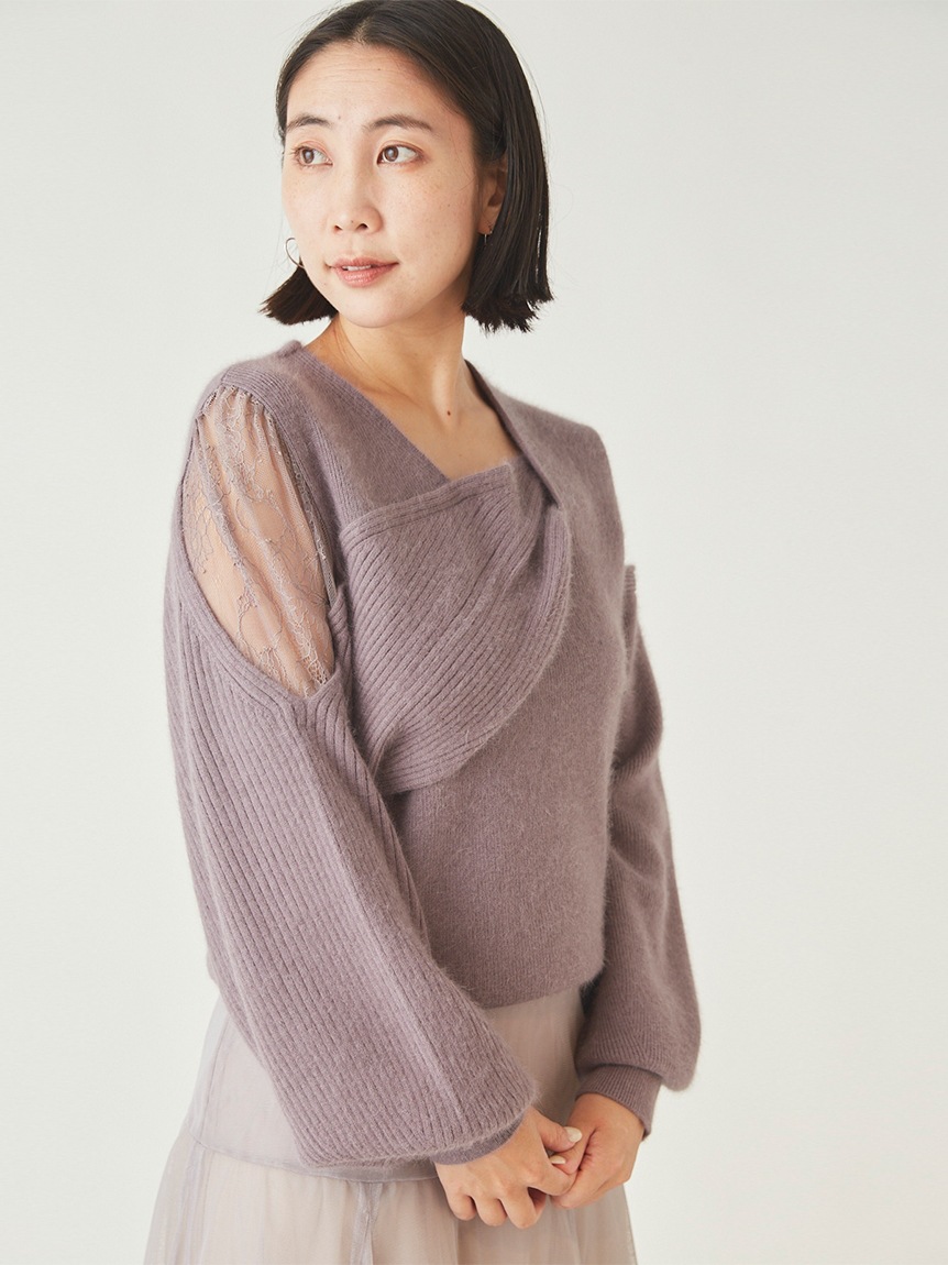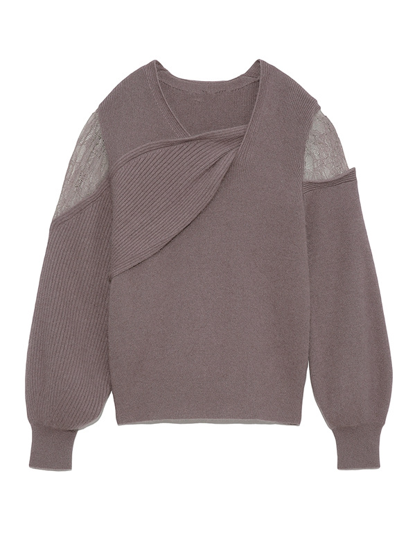 【程良い肌魅せとアシンメトリーでメリハリを効かせたレースドッキングデザインニット】