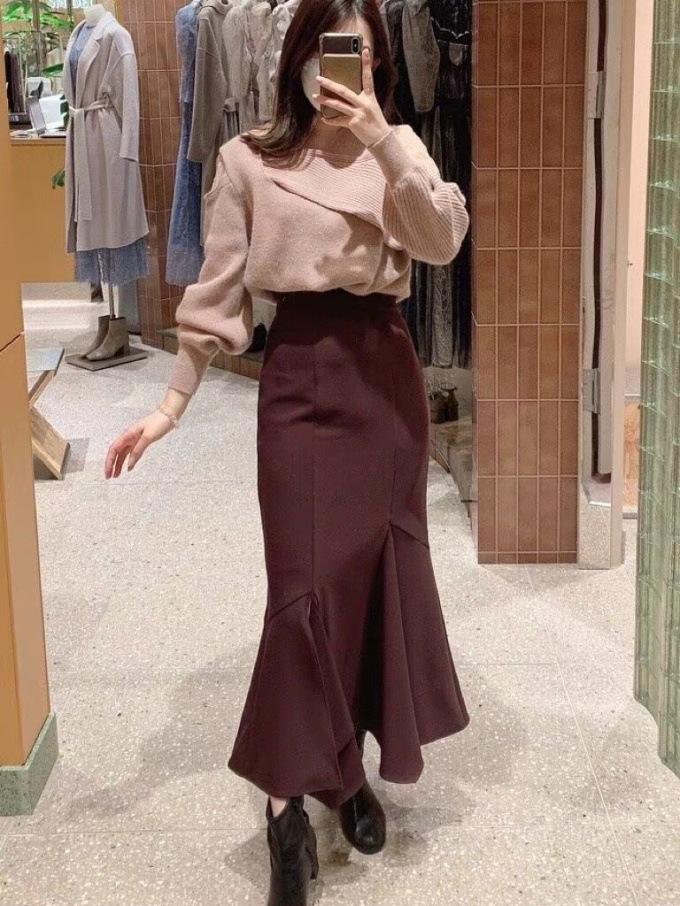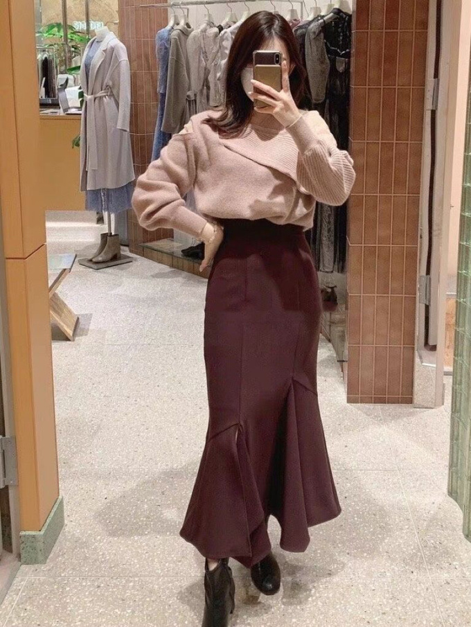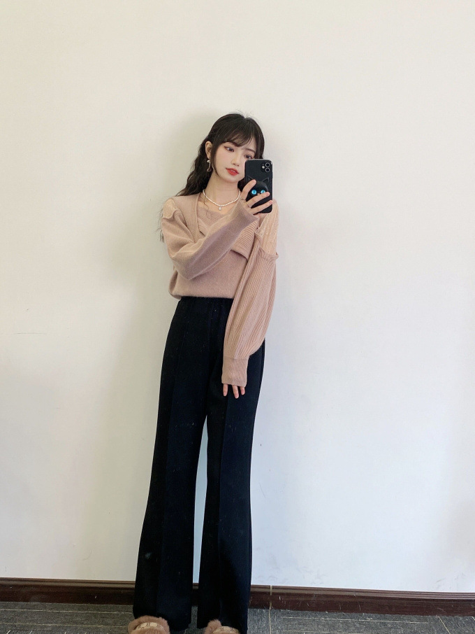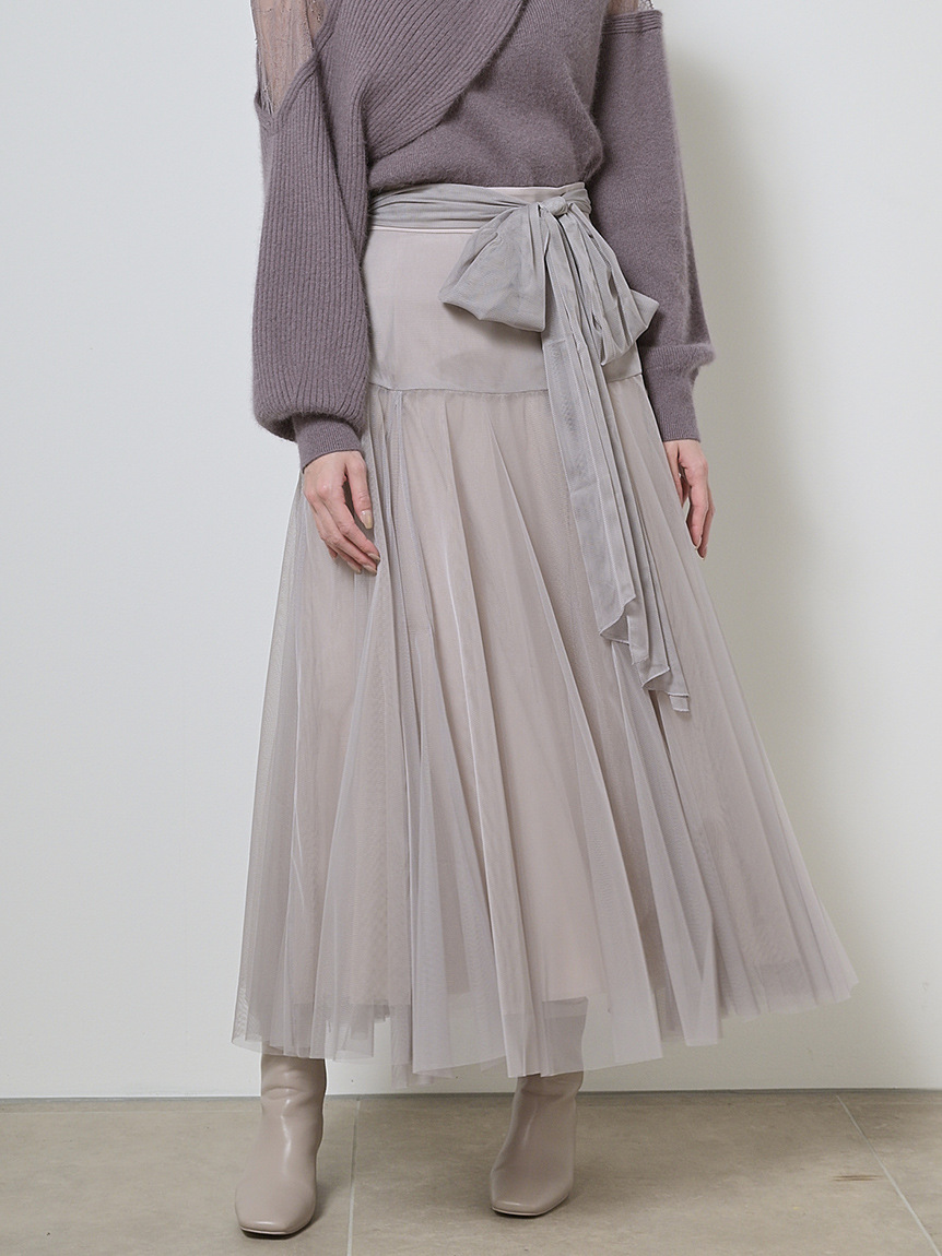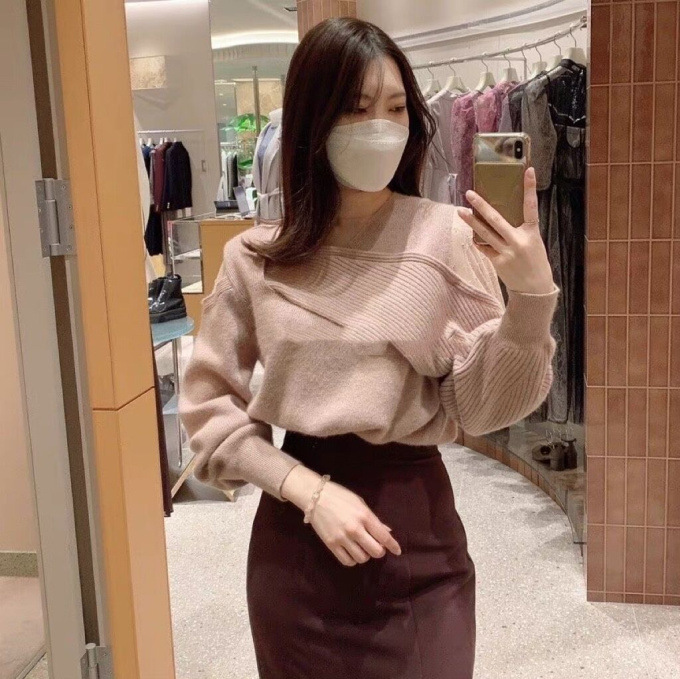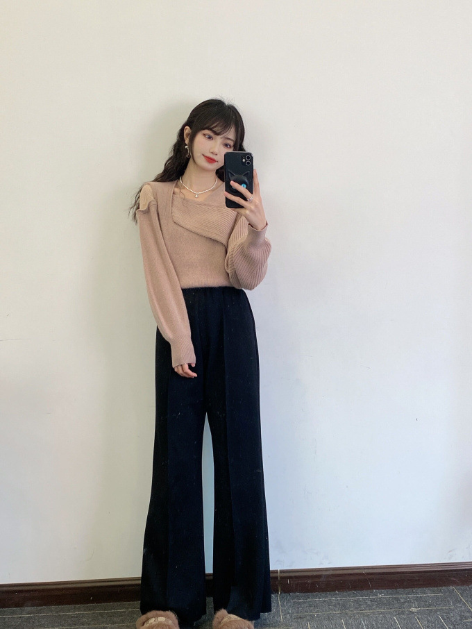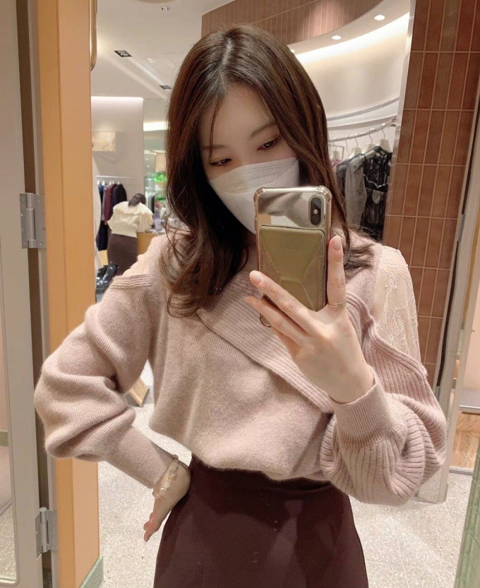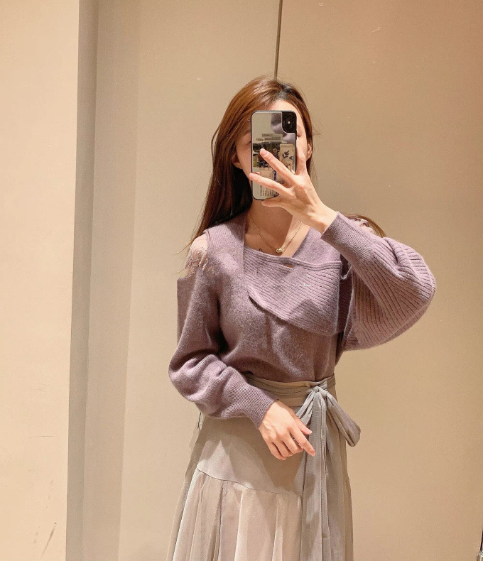 【程良い肌魅せとアシンメトリーでメリハリを効かせたレースドッキングデザインニット】