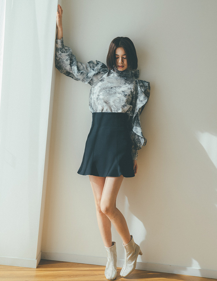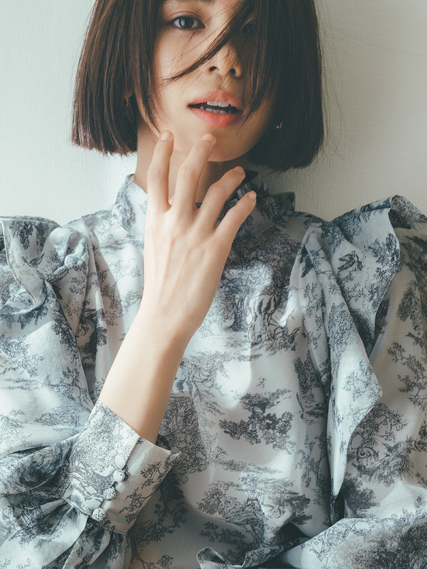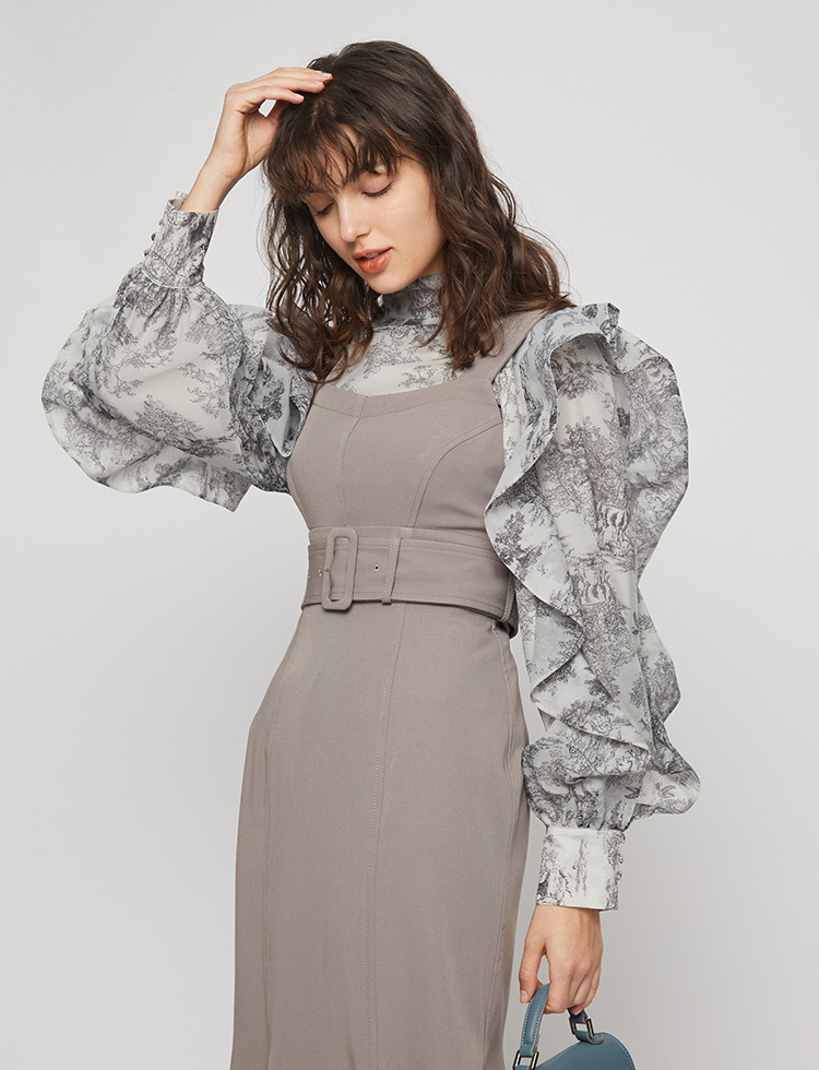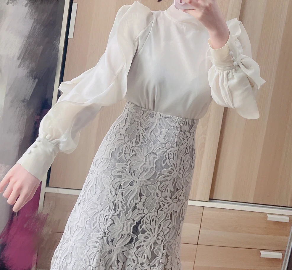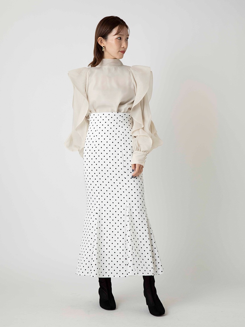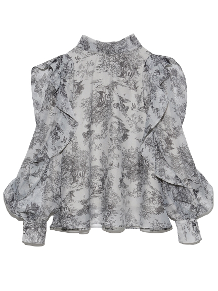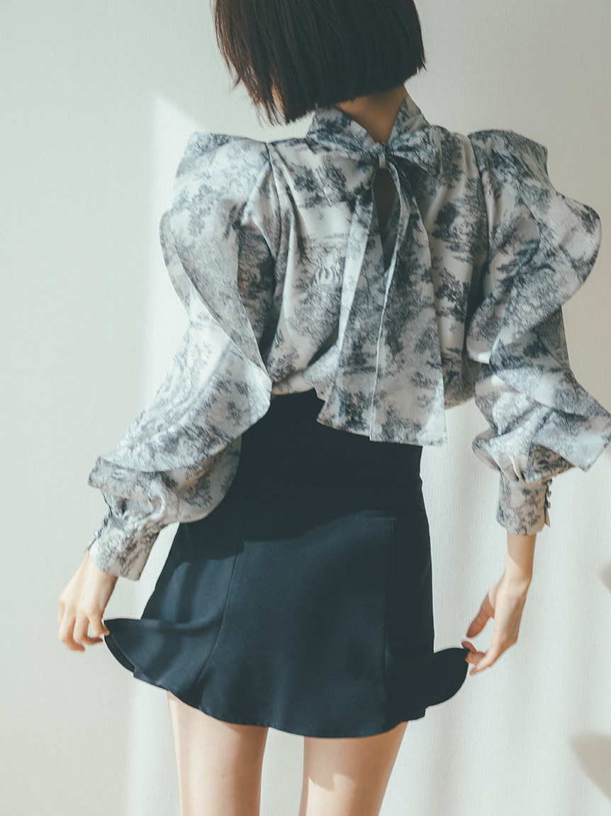 【立体感のあるボリュームフリルが印象的なシースルーブラウス】