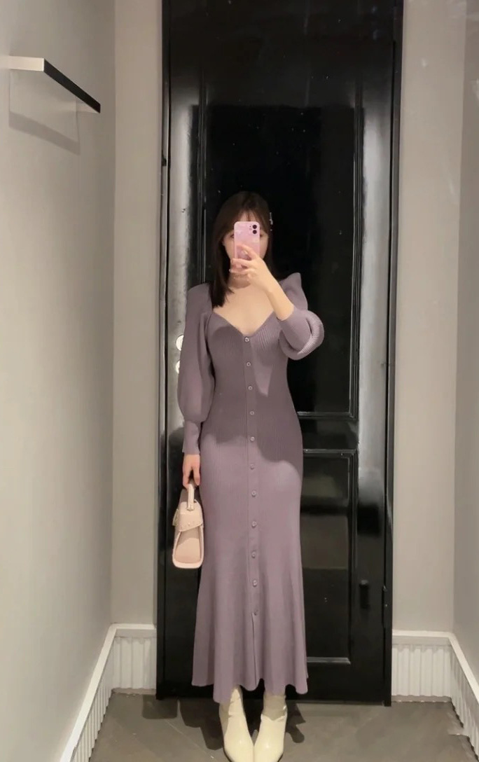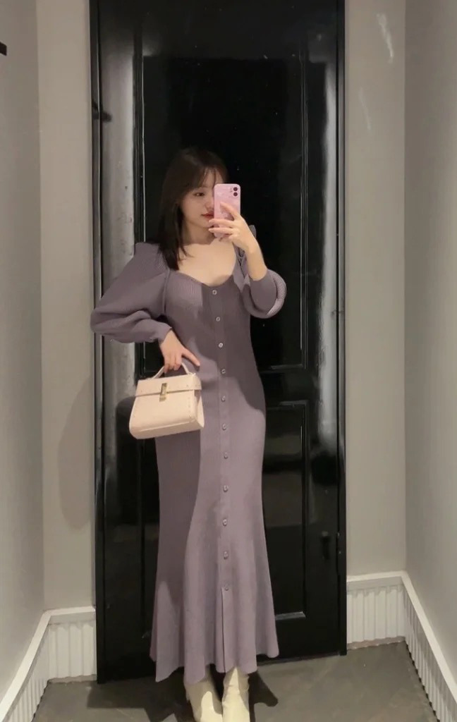 【女性らしいラインを綺麗に魅せる立体シルエットのニットワンピース】