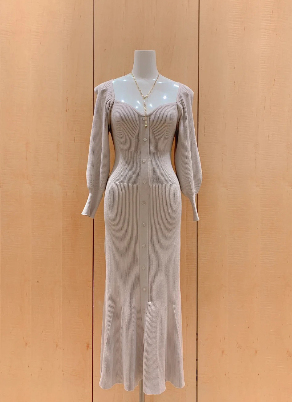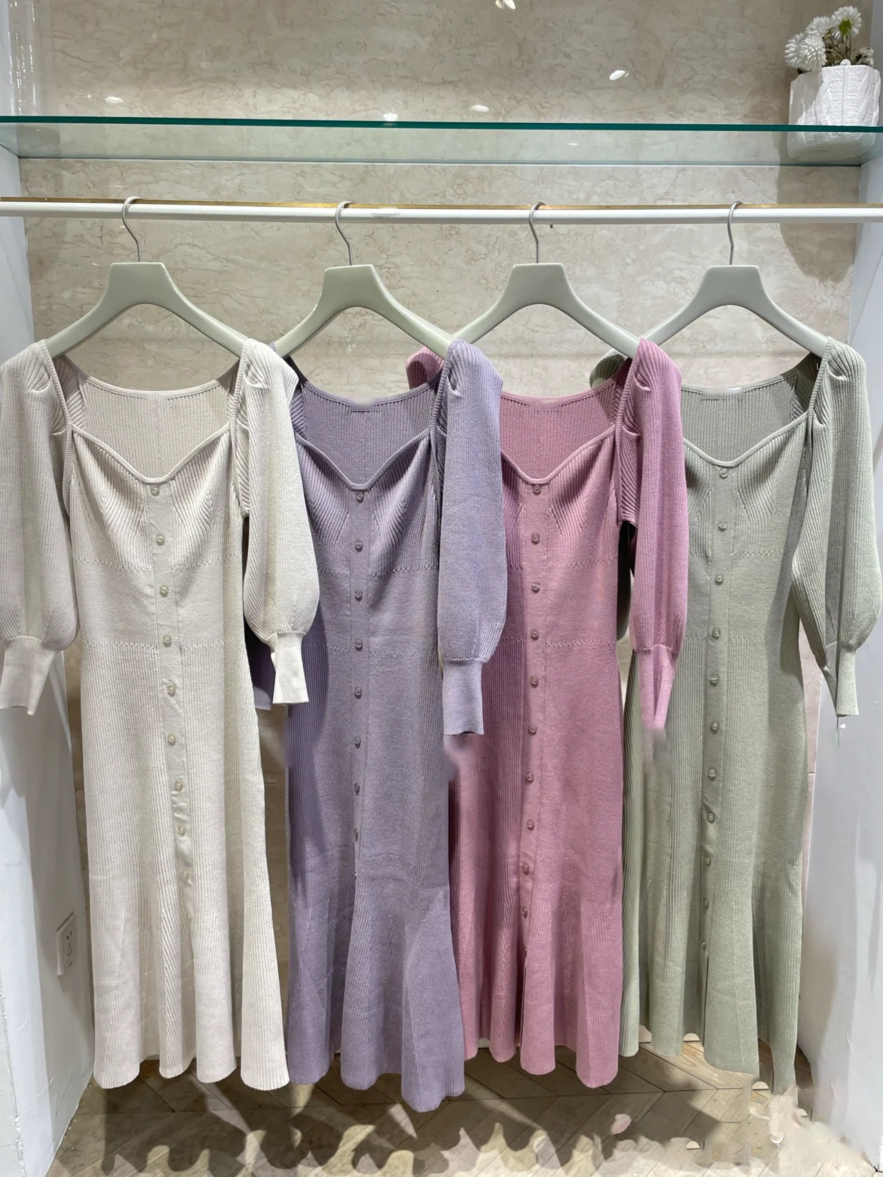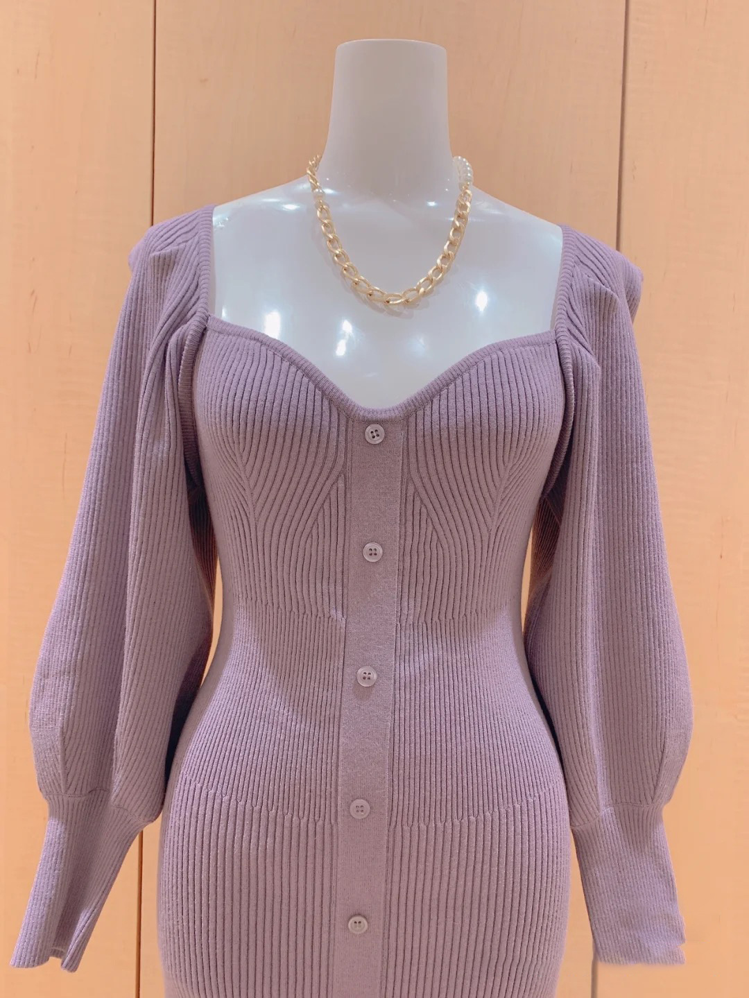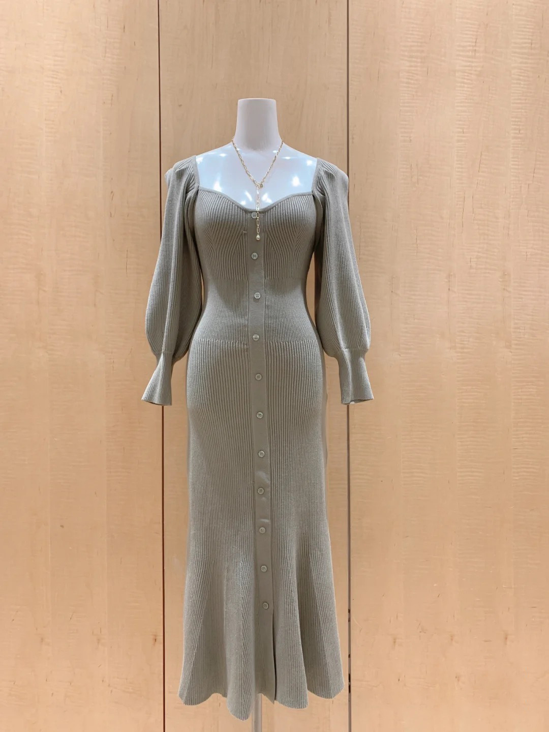Sustainableフロントボタンニットワンピース 単品購入で約5営業日内に発送します。