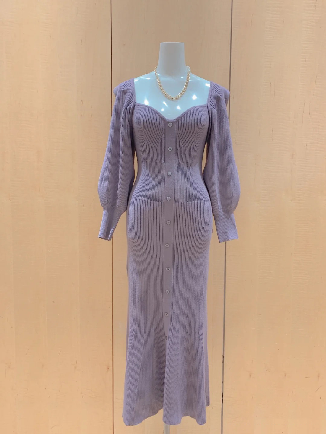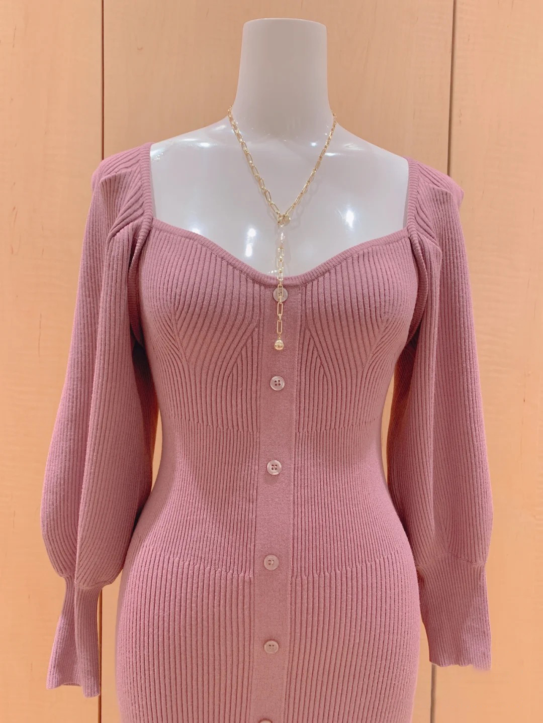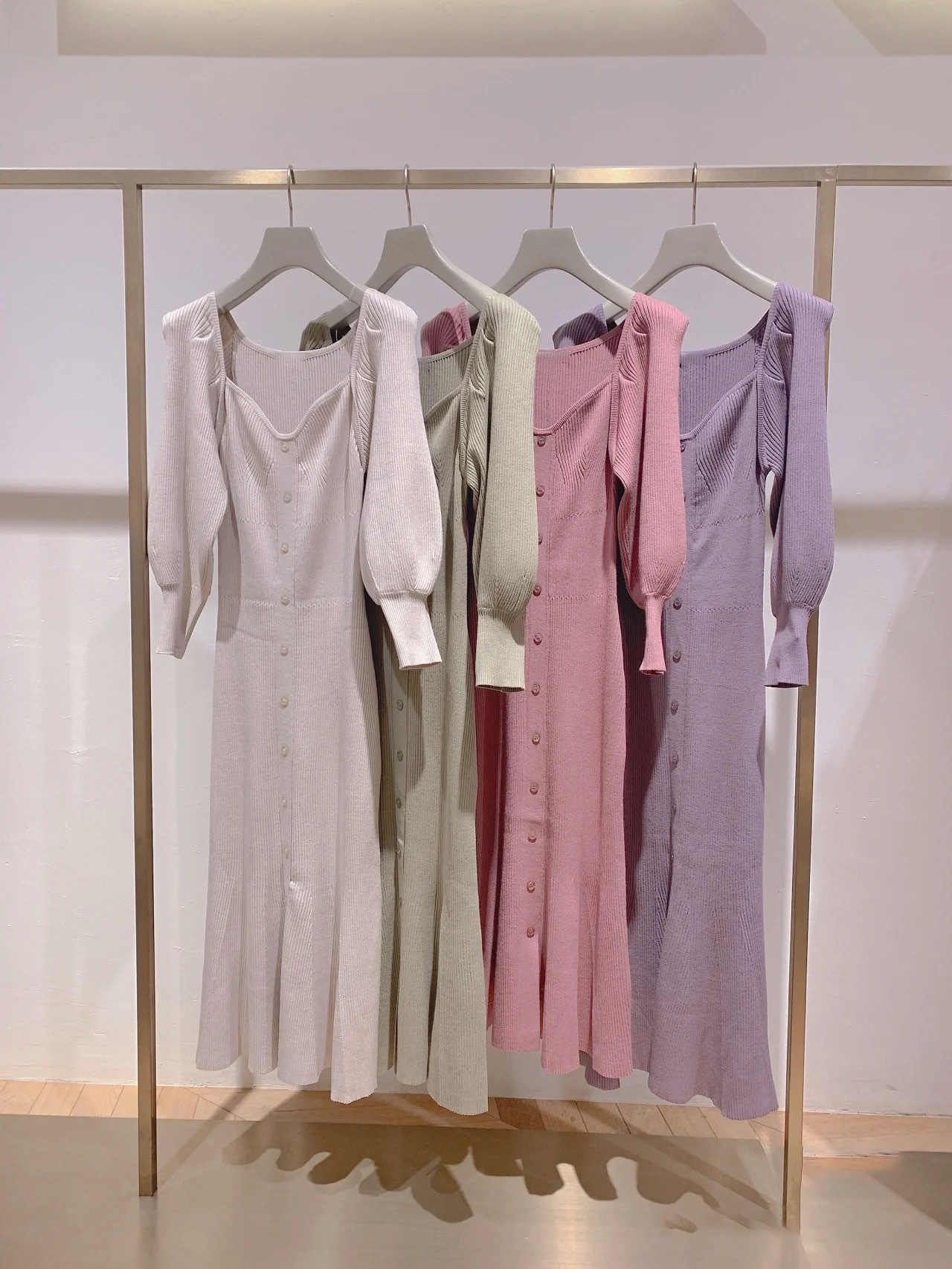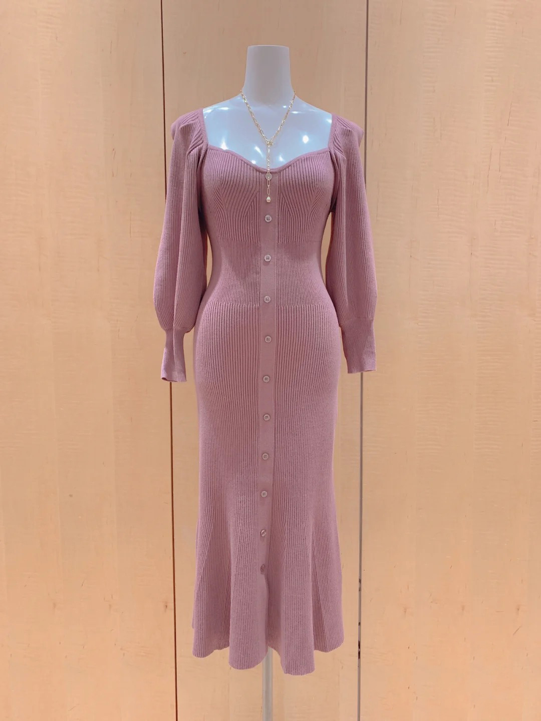 Sustainableフロントボタンニットワンピース 単品購入で約5営業日内に発送します。