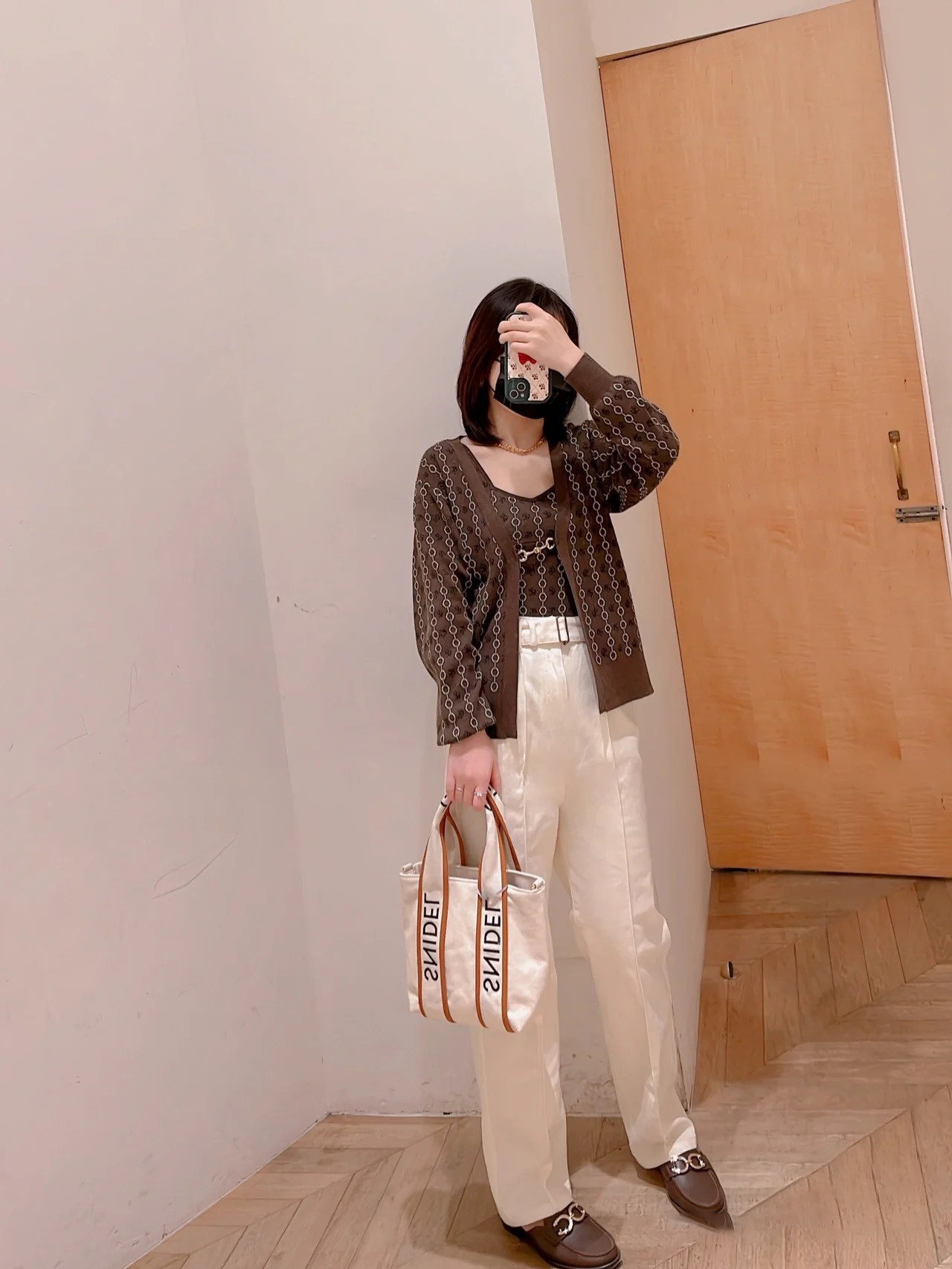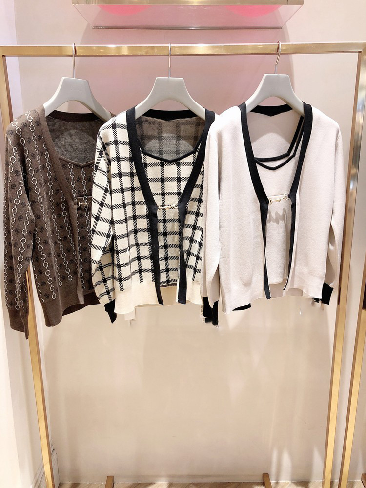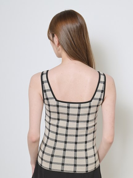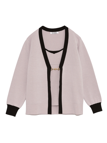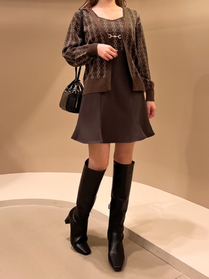 トレンドライクなロゴのインターシャを取り入れたニットアンサンブル。カーディガンのフロントにビットをあしらいクラシカルに仕上げました。インのタンクトップはフィット感のあるシルエット&広めに開いたスクエアネックで、女性らしさを演出。セットではもちろん、それぞれ単品でも活躍してくれるので、これだけでコーディネートの幅は一気に広がります。