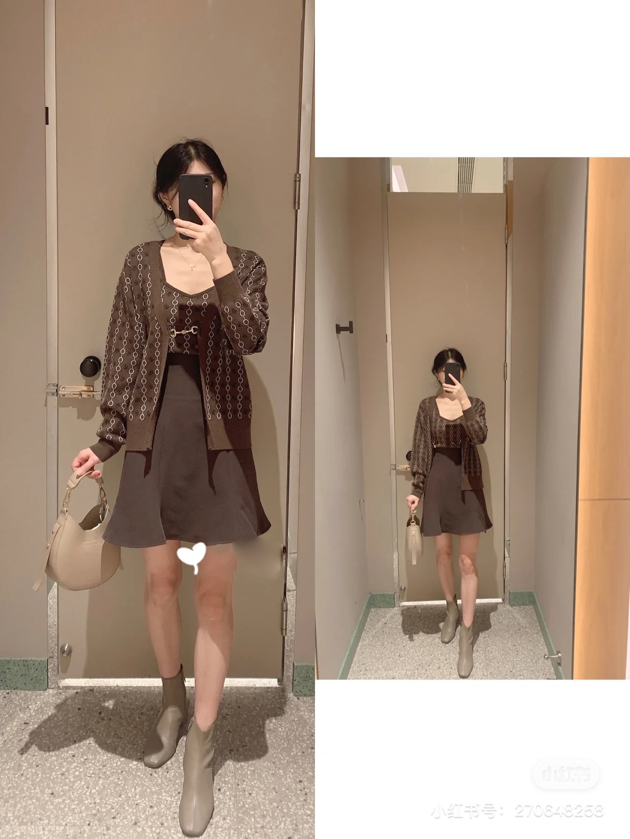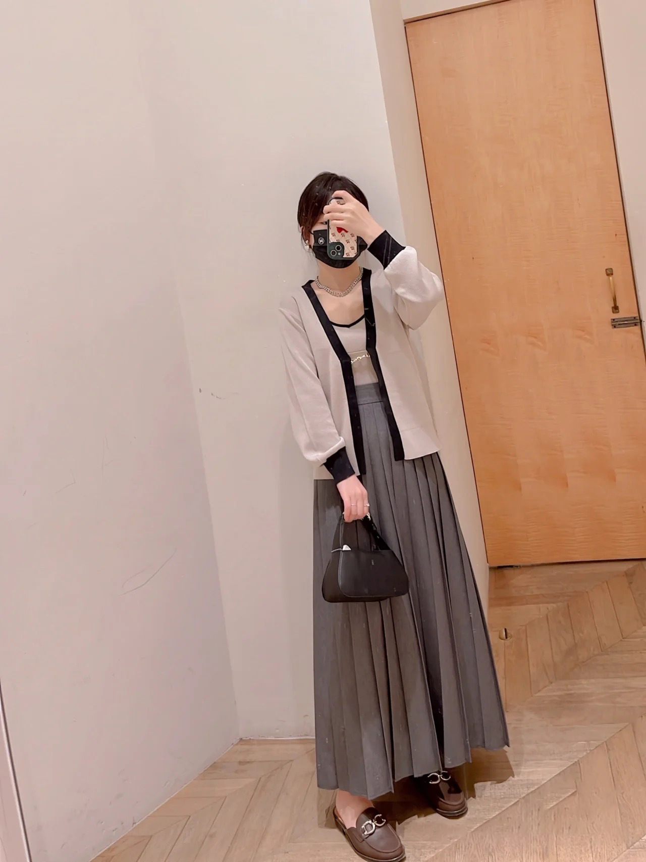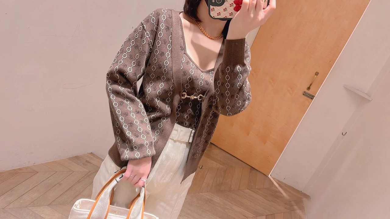 【王道クラシカルなムードでスタイリングを上品に映し出すニットアンサンブル】