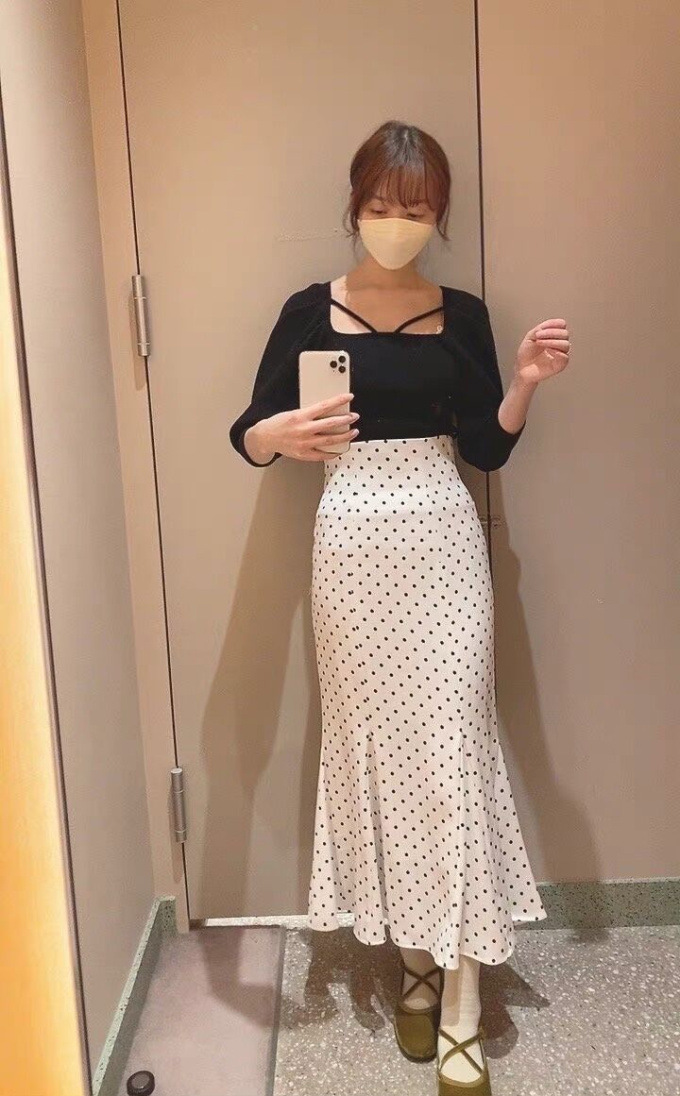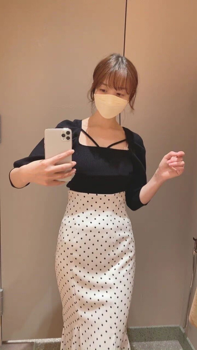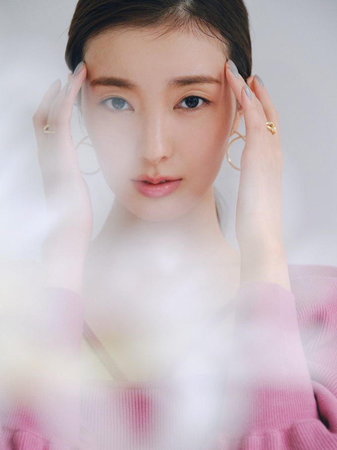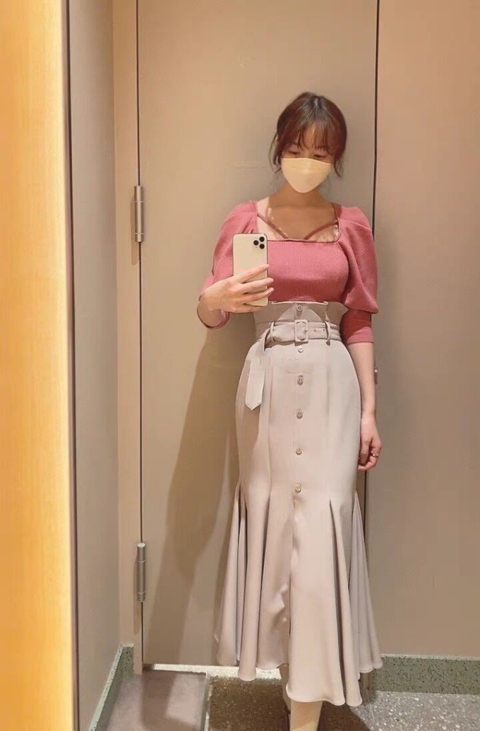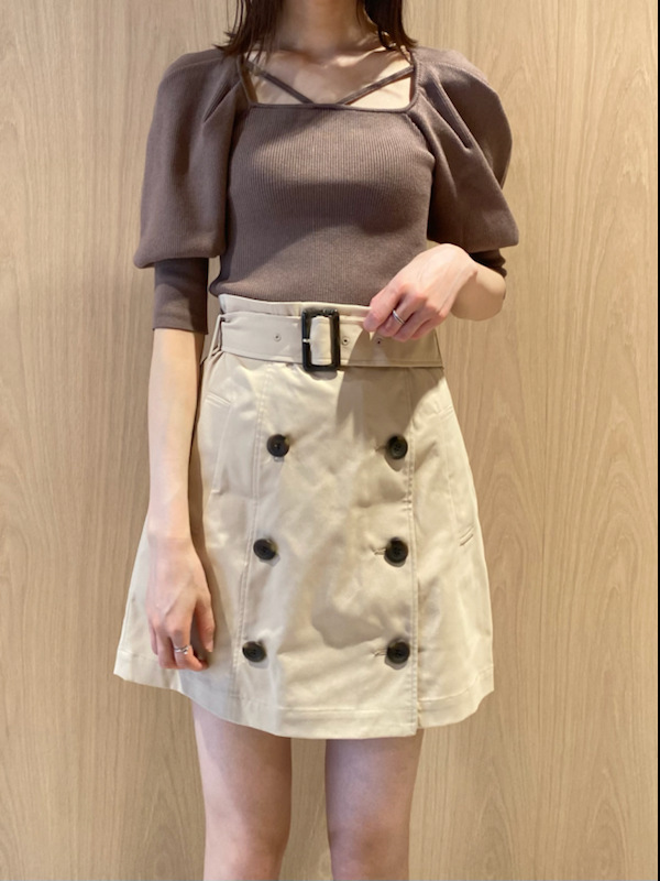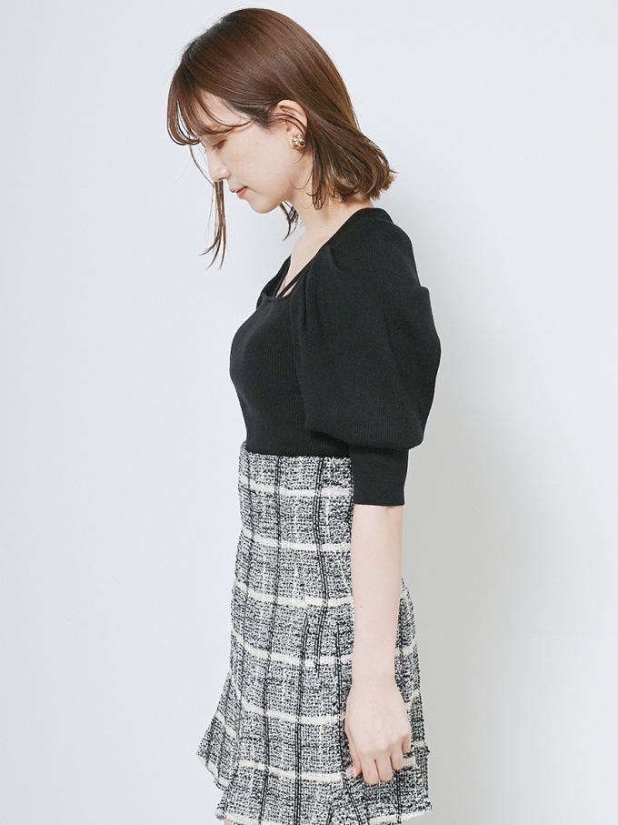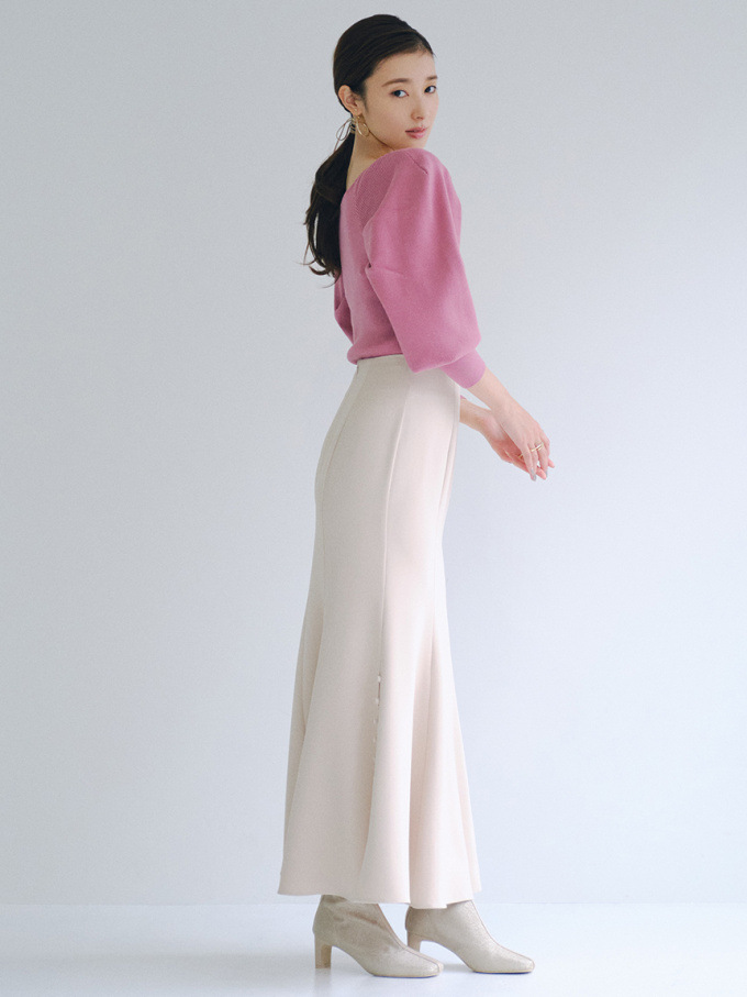 ストレッチ入りの柔らかなリブニットを使用。配色デザインが効いたアイボリー、大人っぽいブラック、着まわしやすいブラウン、トレンドライクなピンクの4色展開です。