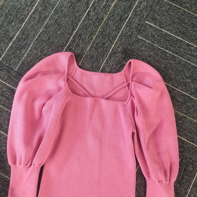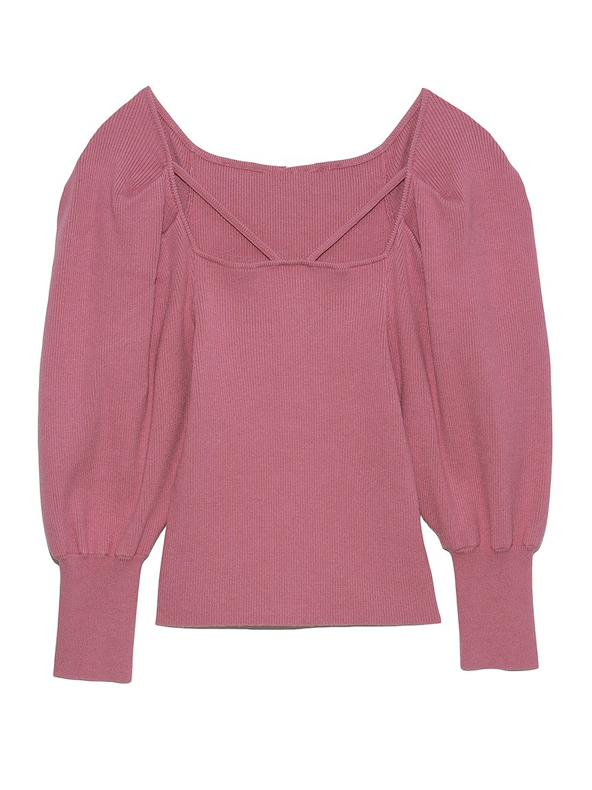 たっぷりとタックを効かせ丸みを持たせたボリュームスリーブが印象的な、レディムード溢れるニットプルオーバー。デコルテにあしらわれたセンシュアルなストラップでトレンド感をプラス。身頃部分はすっきりとしたラインに仕上げ、スタイルアップを狙えるメリハリシルエットをメイクしています。パンツともスカートともバランス良く決まり、着まわしやすいのも嬉しい。