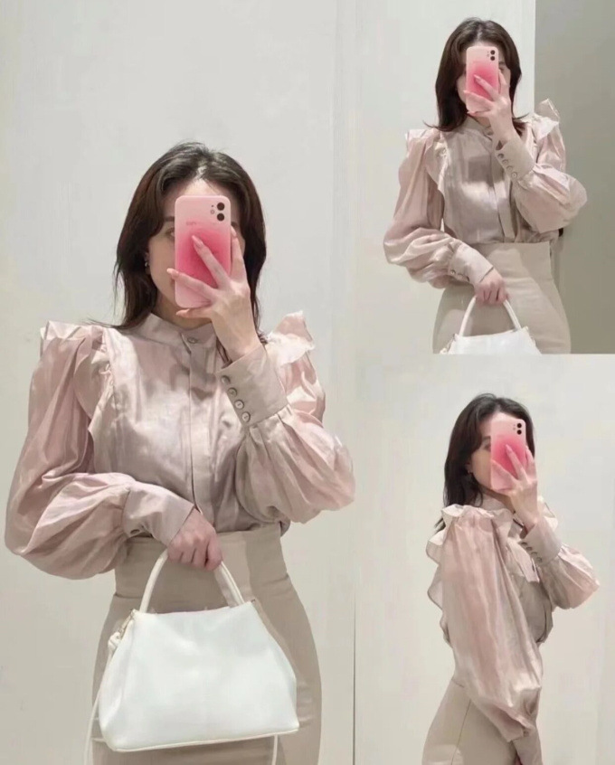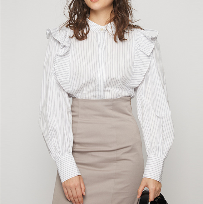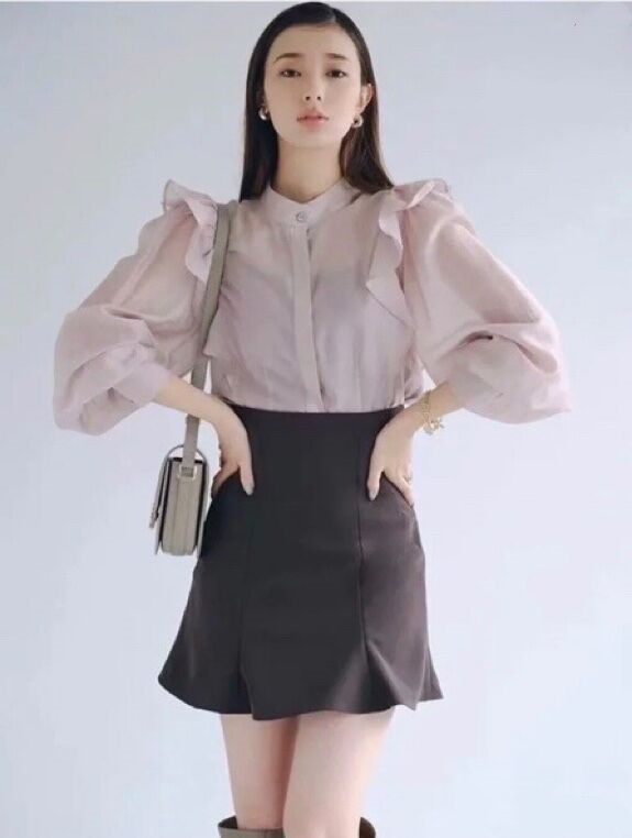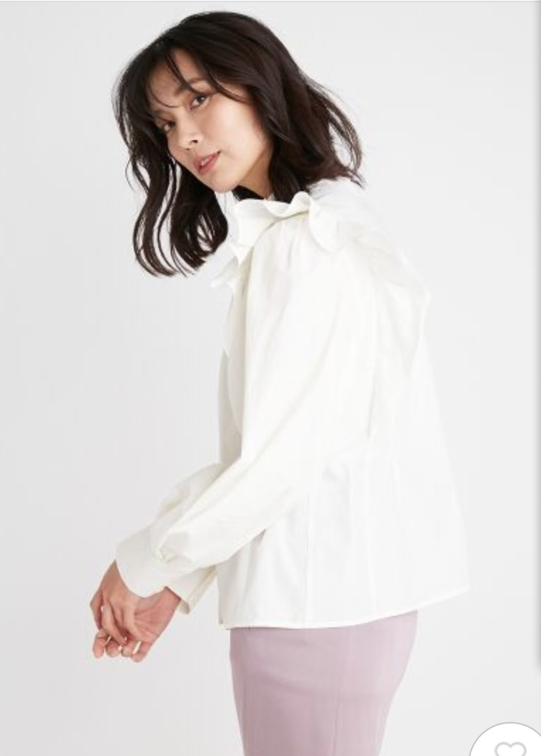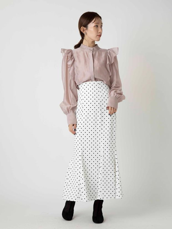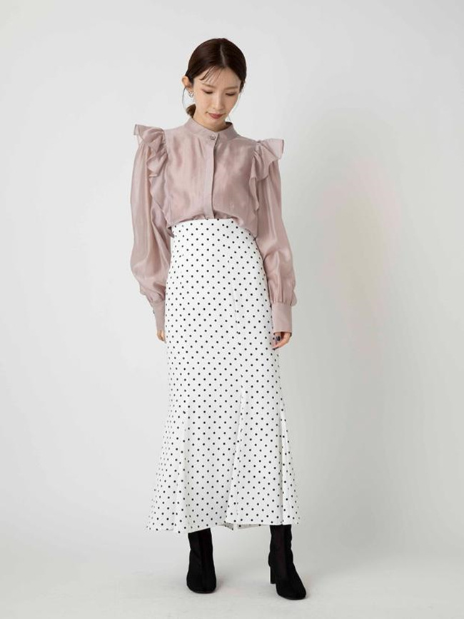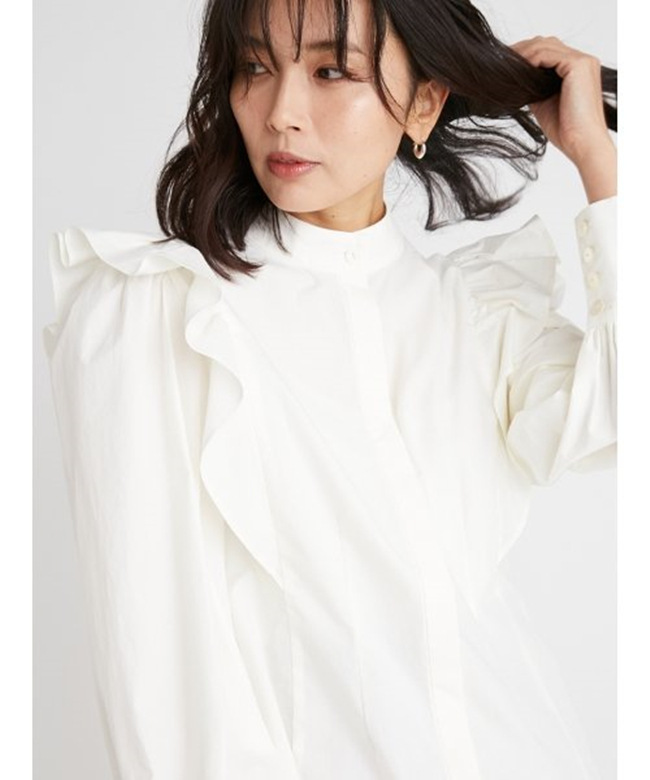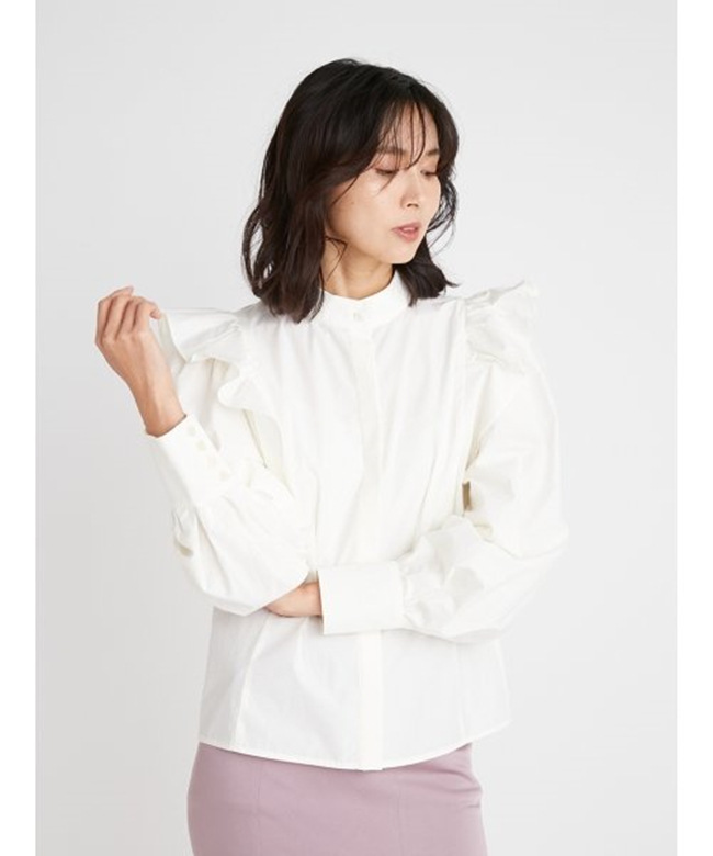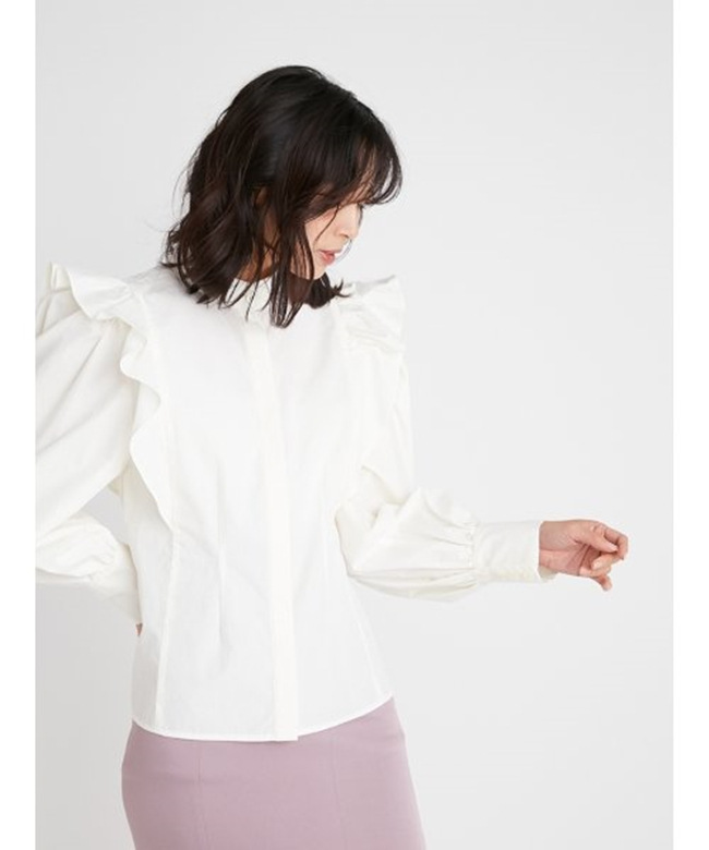 【ボリュームのあるフリルがスタイリングをエレガントに映し出すブラウス】