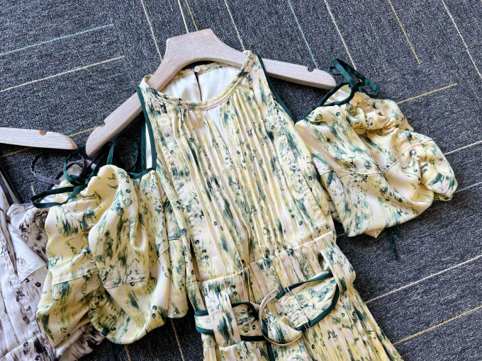 2WAYボリュームスリーブプリントワンピース 入金確認後3-5営業日発送(土日祝日除く)