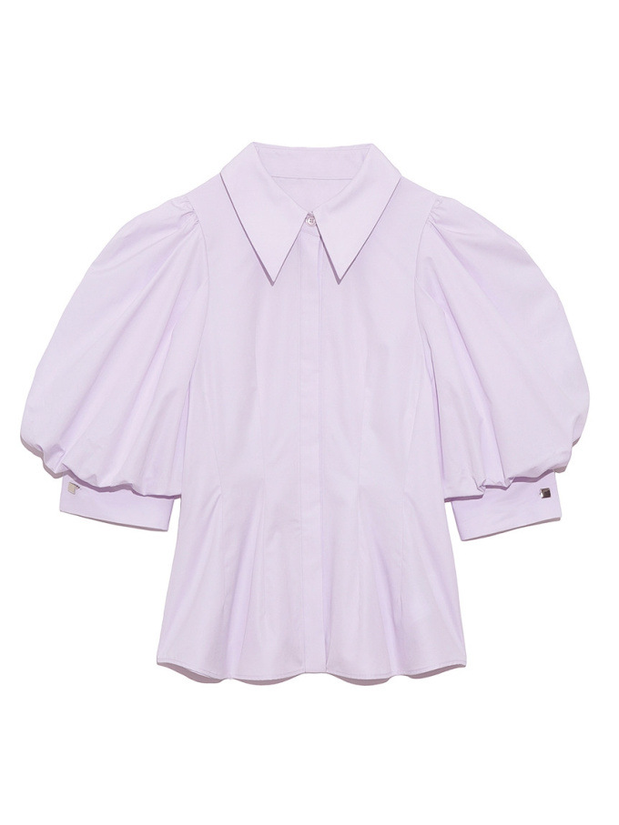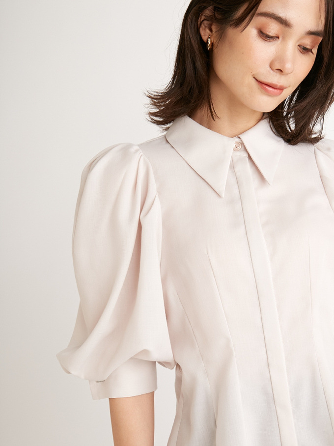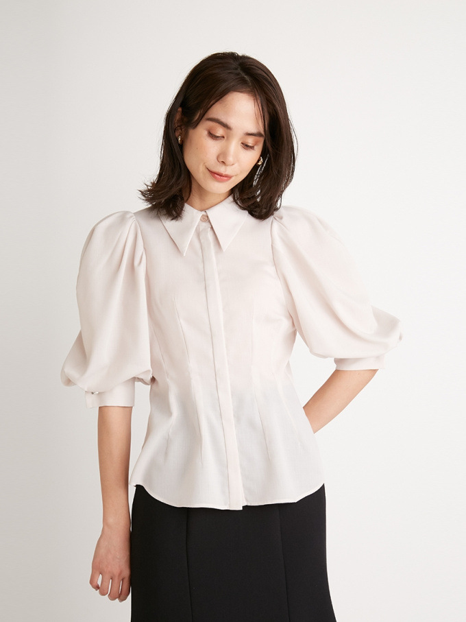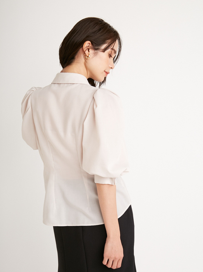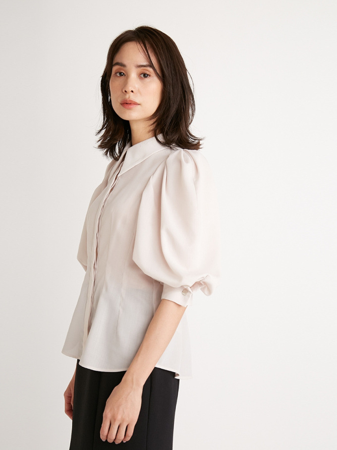 【トレンド継続中のボリュームスリーブでスタイリングを華やかに彩るシャツブラウス】