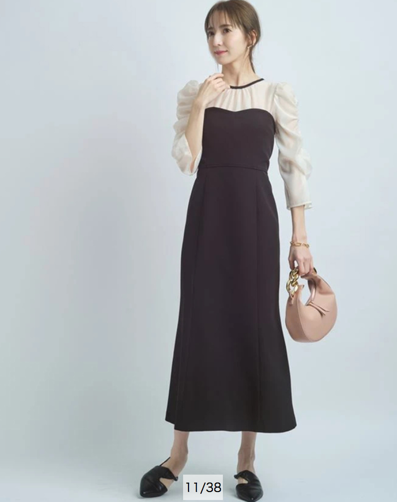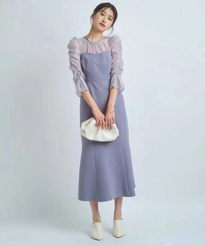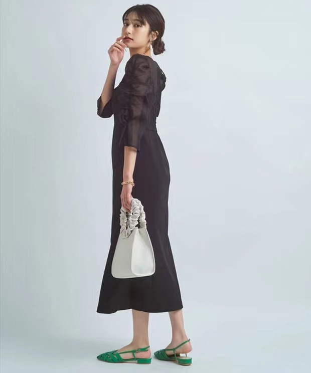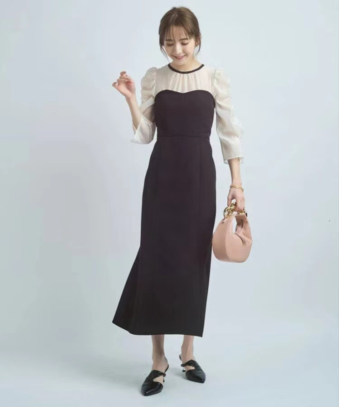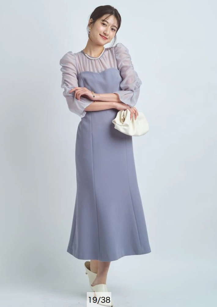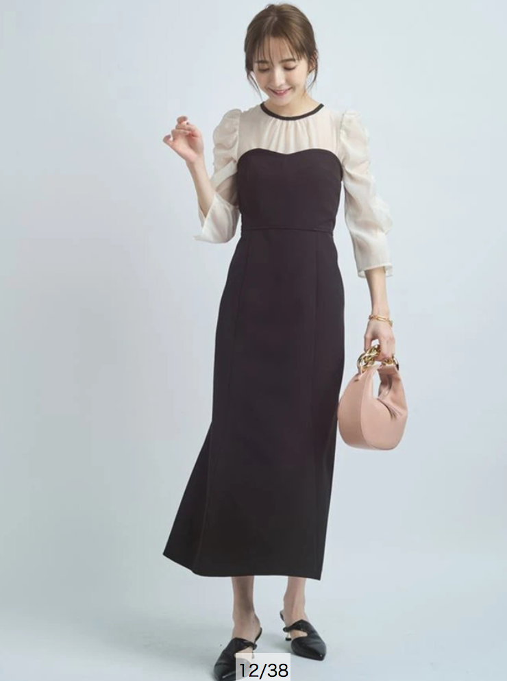 タイトフィットなマーメイドラインでエレガントな女性らしい美スタイルをメイクする、デートやパーティにもおすすめのアイテムです。