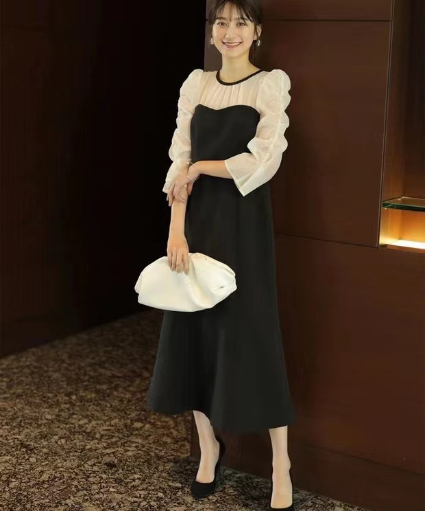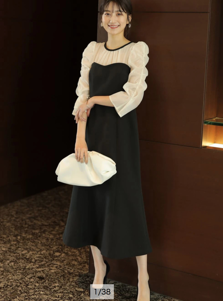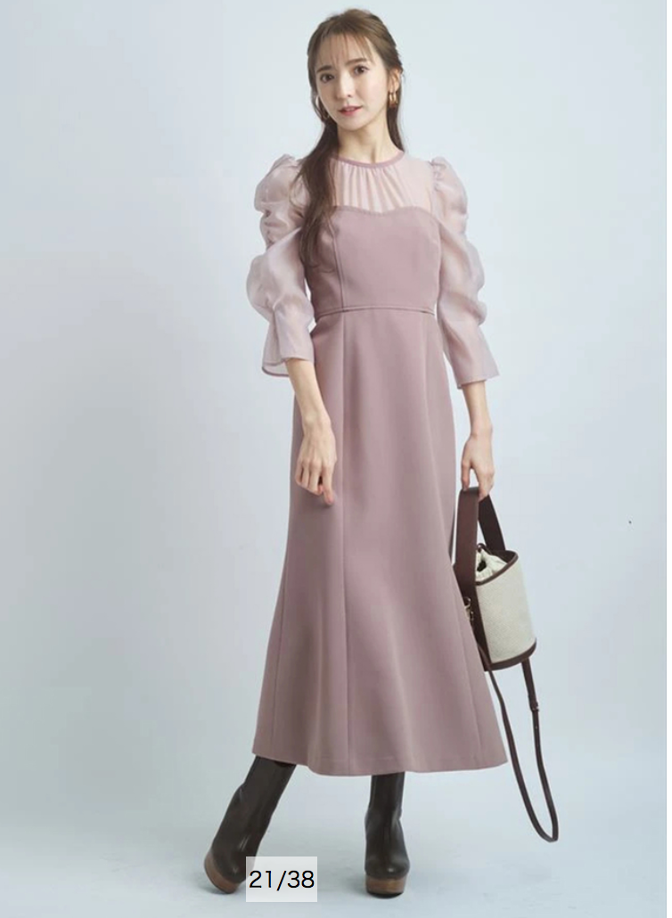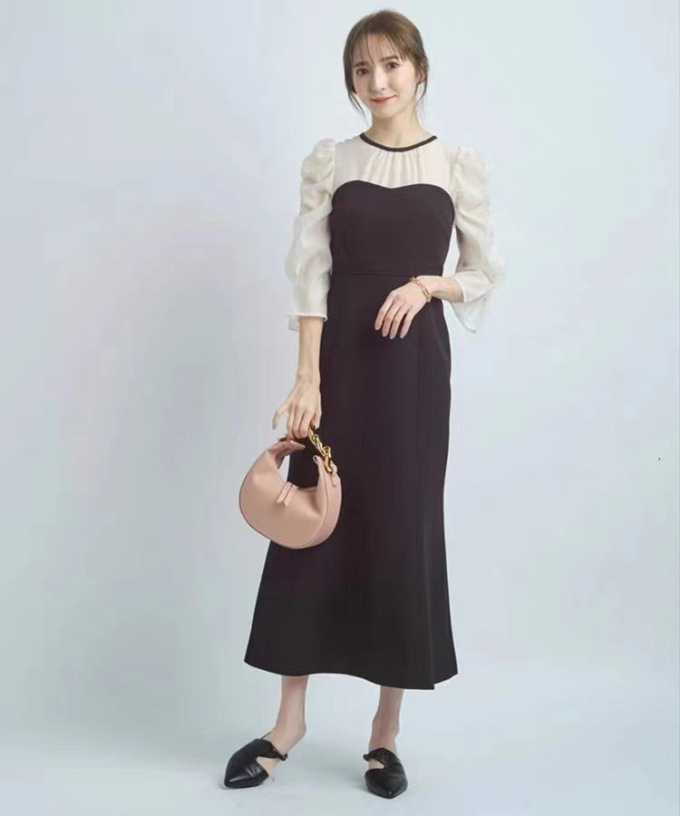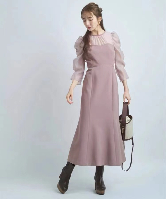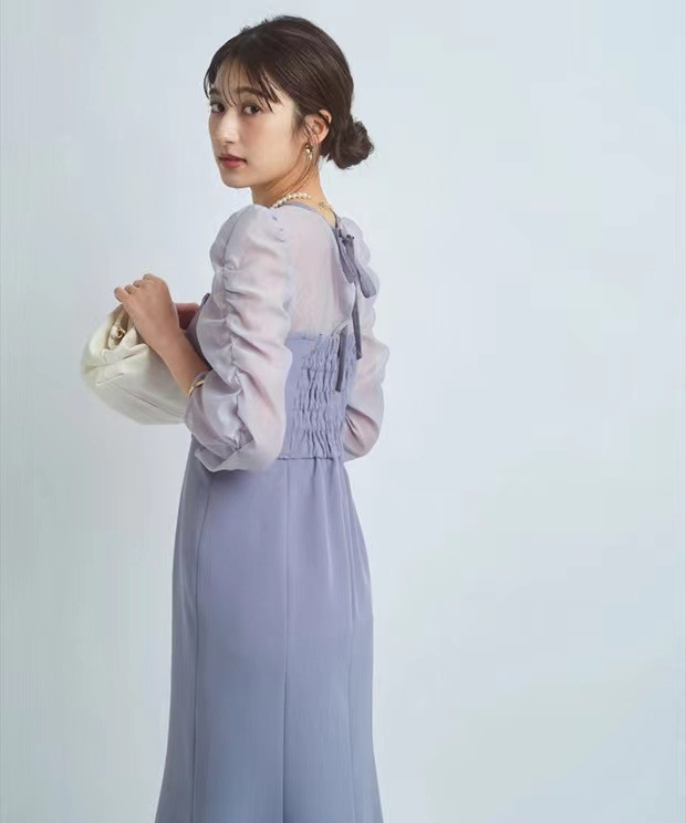 タイトフィットなマーメイドラインでエレガントな女性らしい美スタイルをメイクする、デートやパーティにもおすすめのアイテムです。