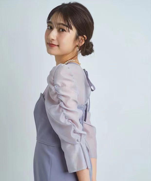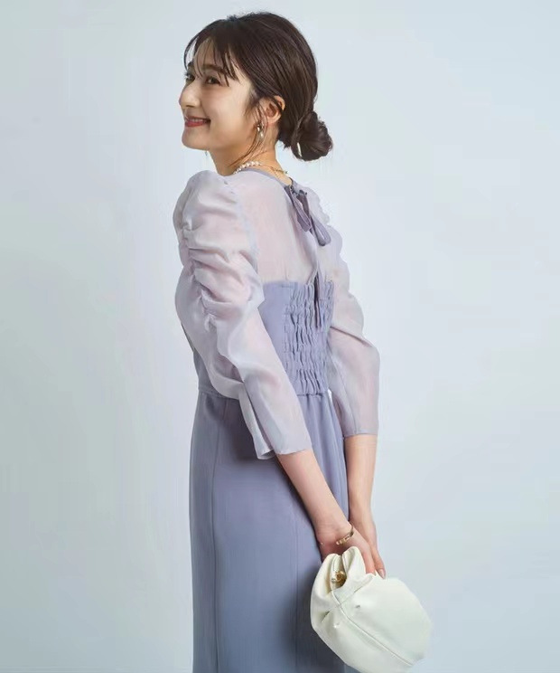 ふんわりとしたボリュームのあるスリーブもフェミニンなデザイン。ほんのり光沢のあるシアーな素材感がスタイリングにこなれムードを漂わせます。
