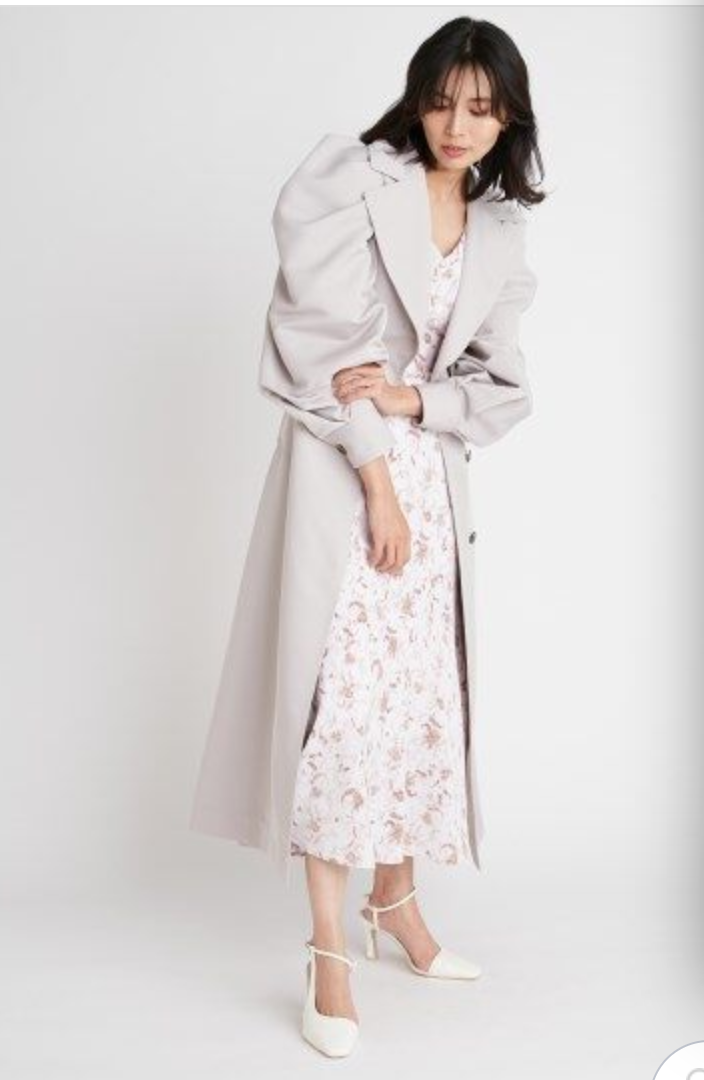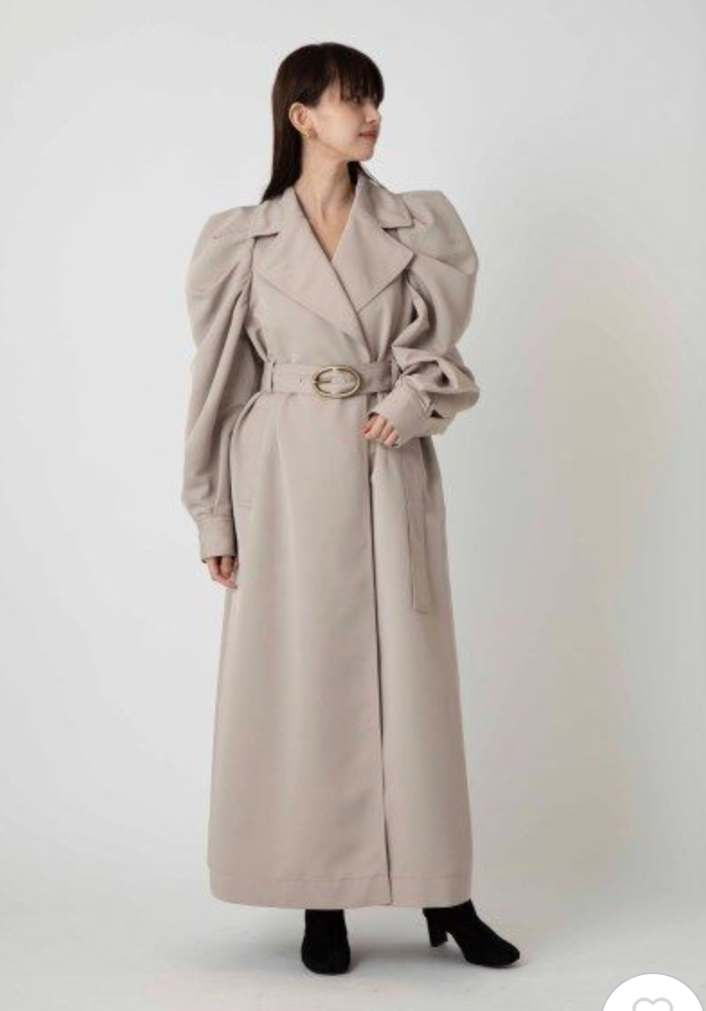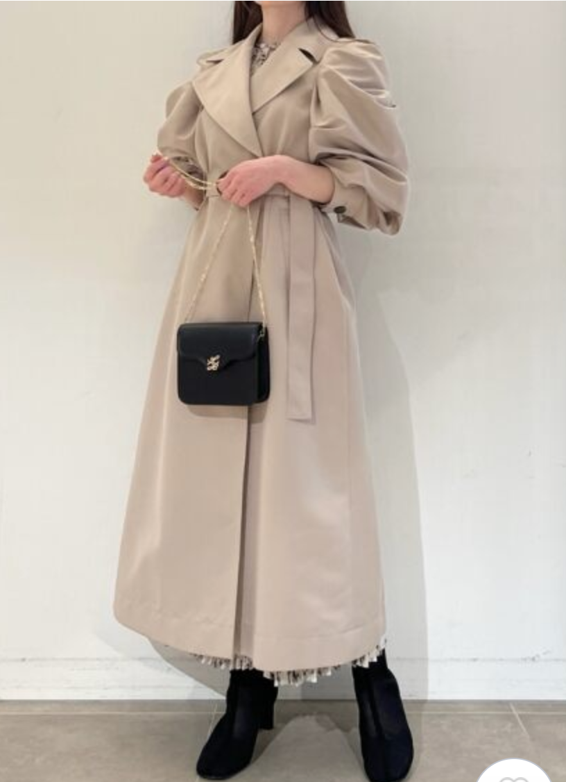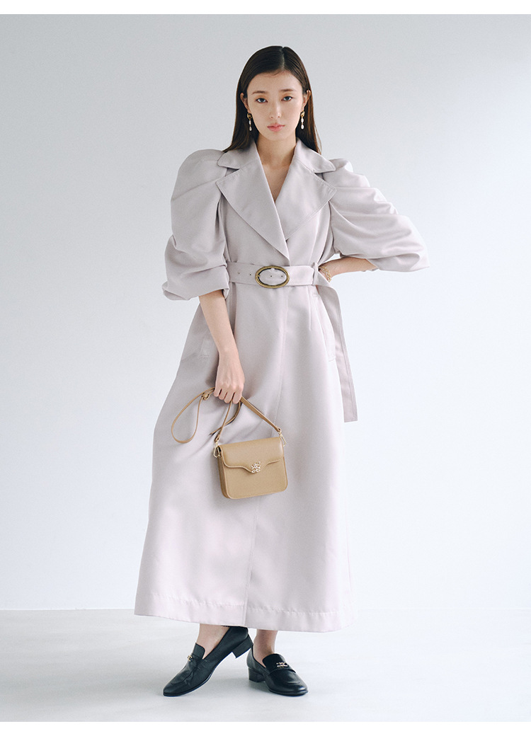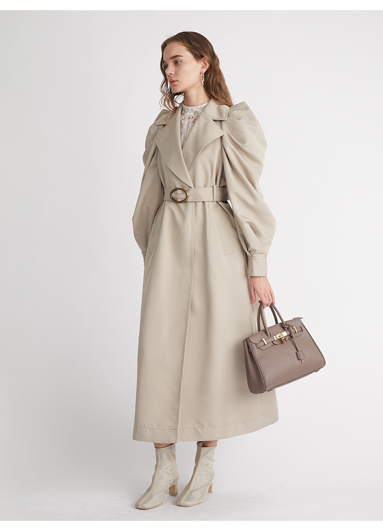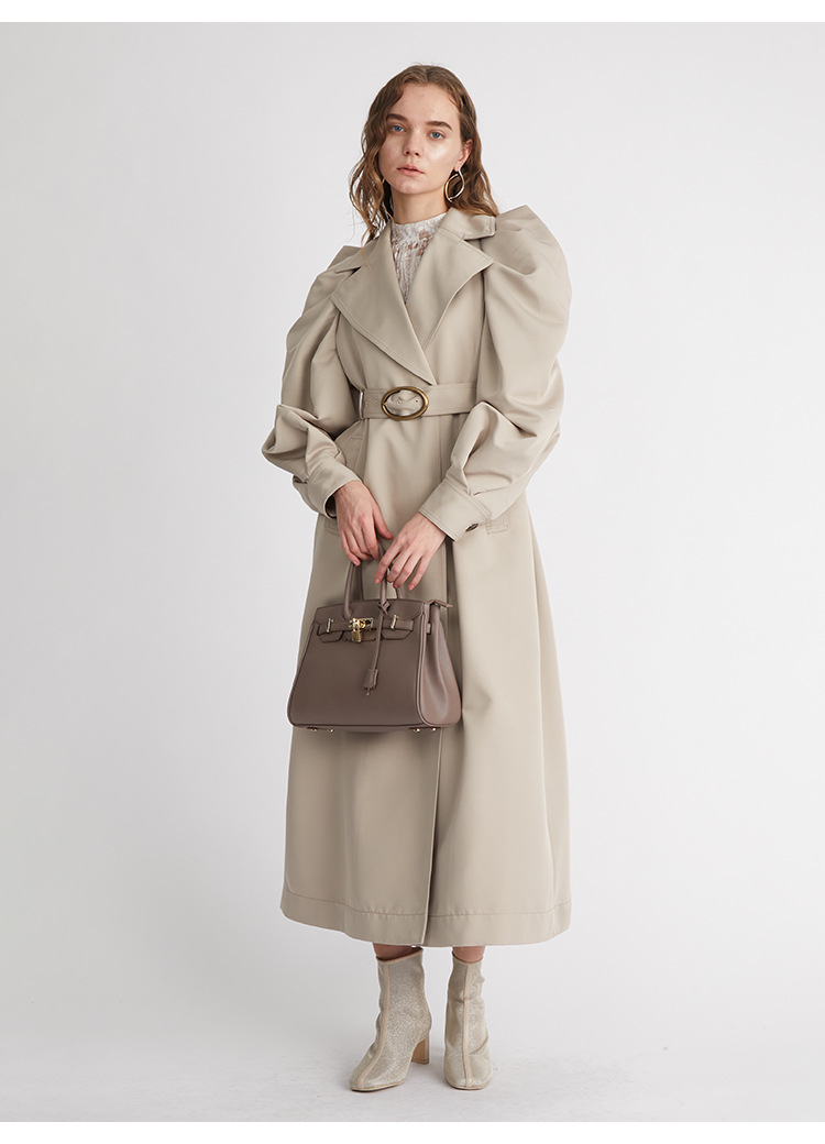 【構築的なパワーショルダーがスタイリングをレディ&モードに映し出すトレンチコート】