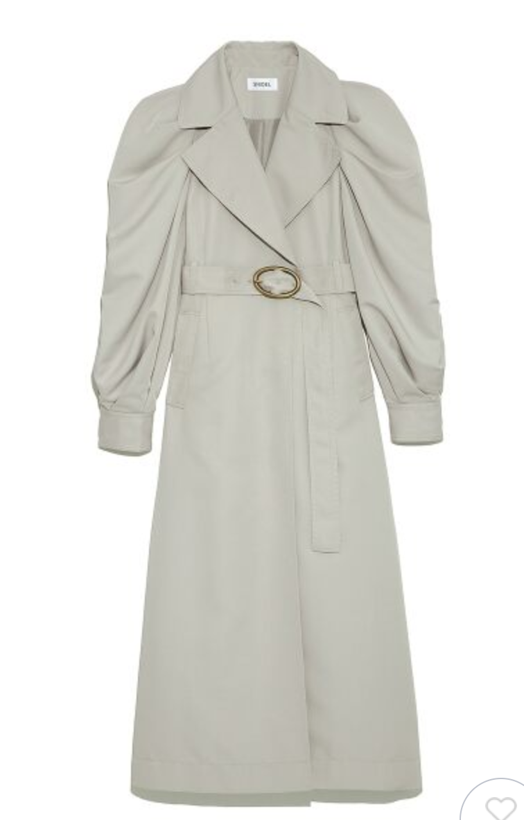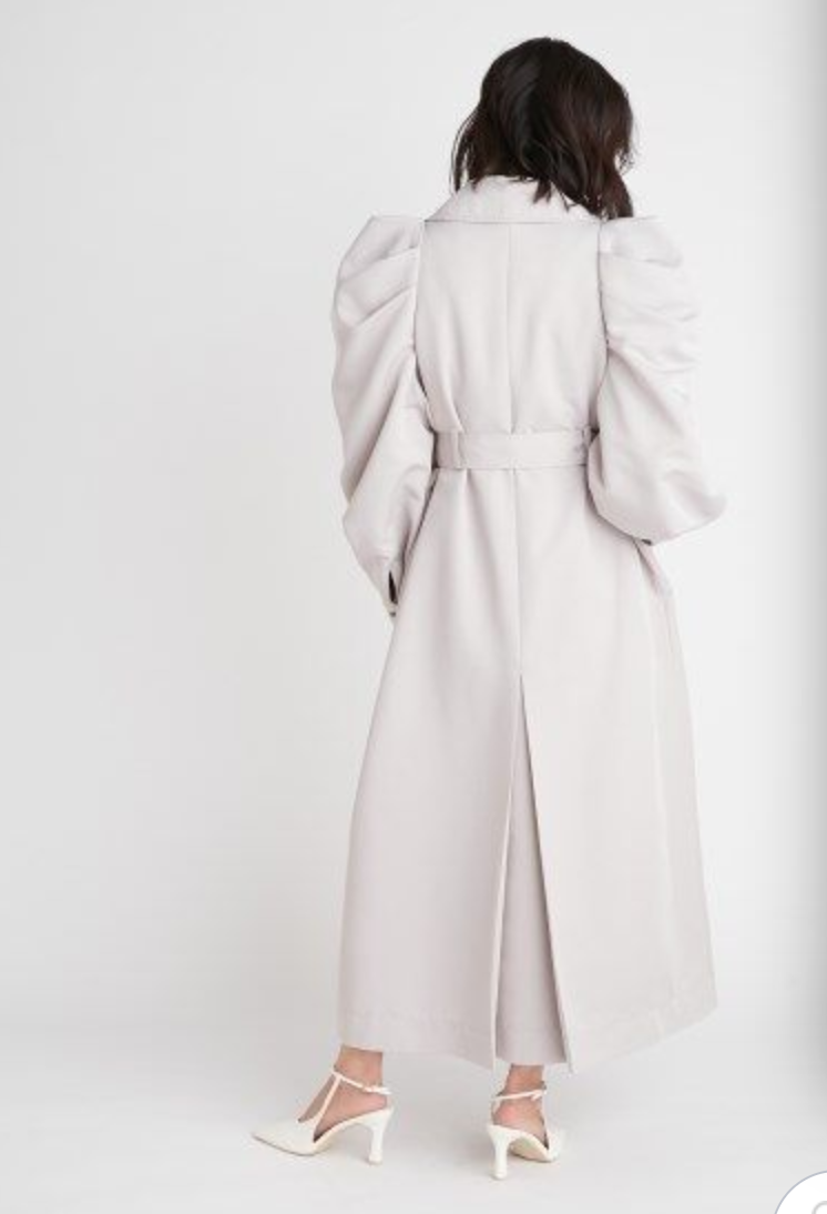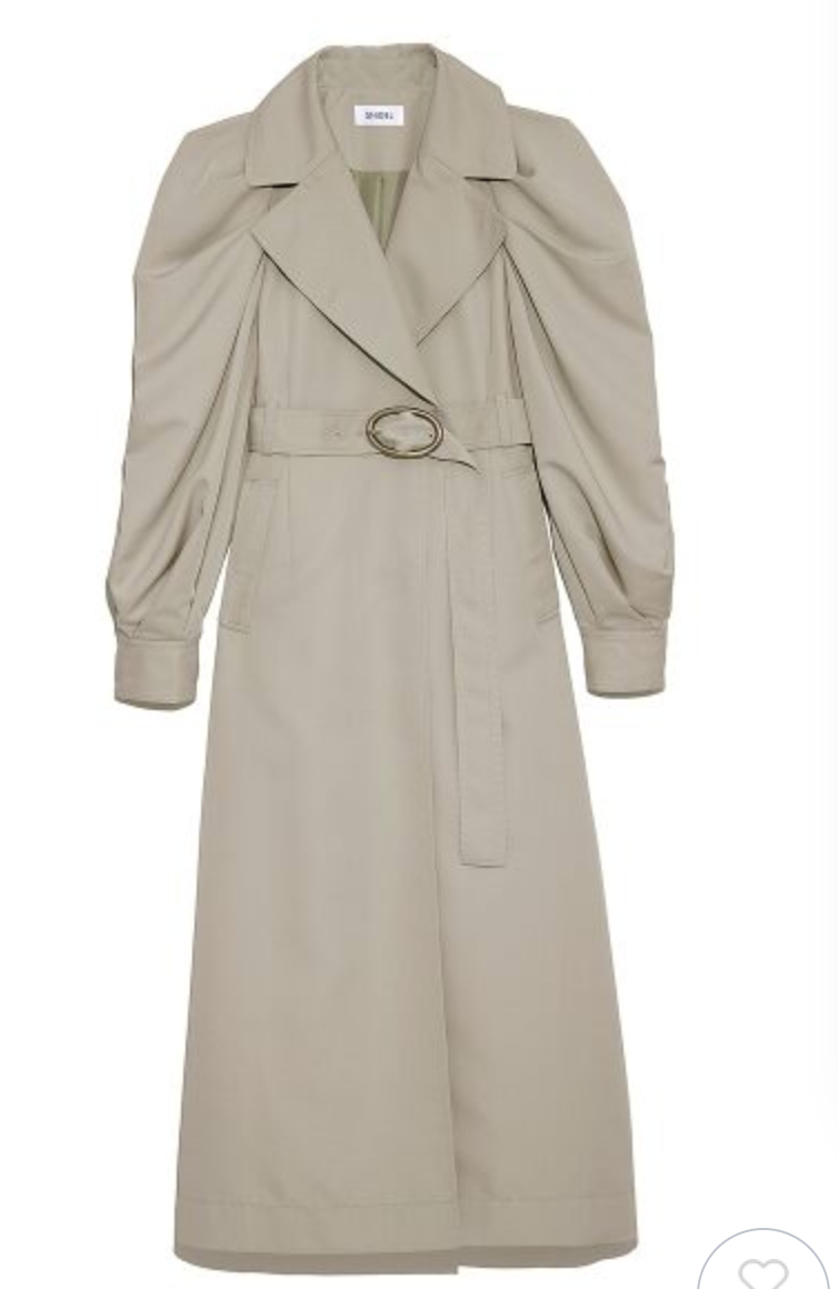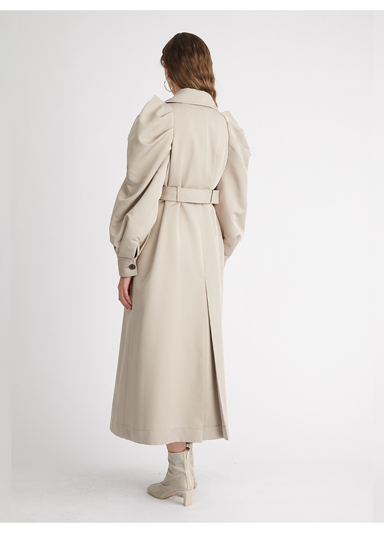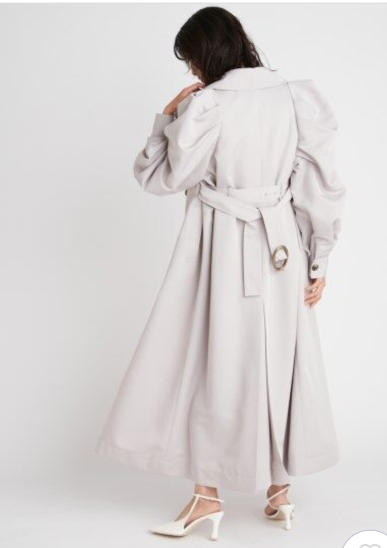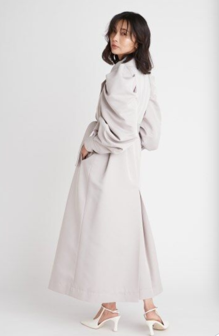 【構築的なパワーショルダーがスタイリングをレディ&モードに映し出すトレンチコート】